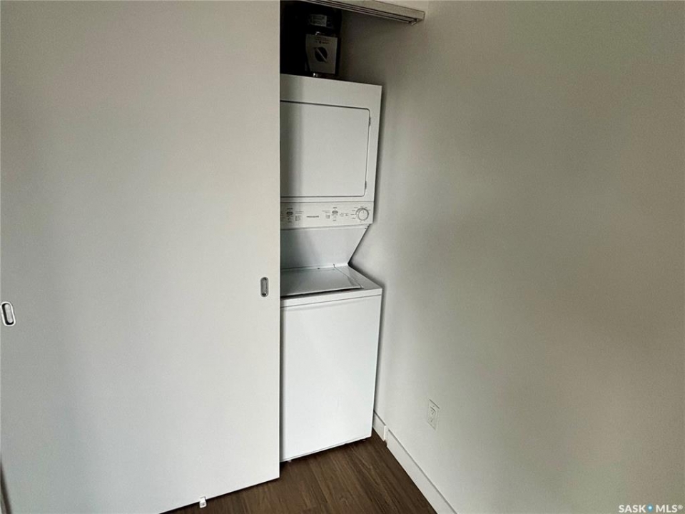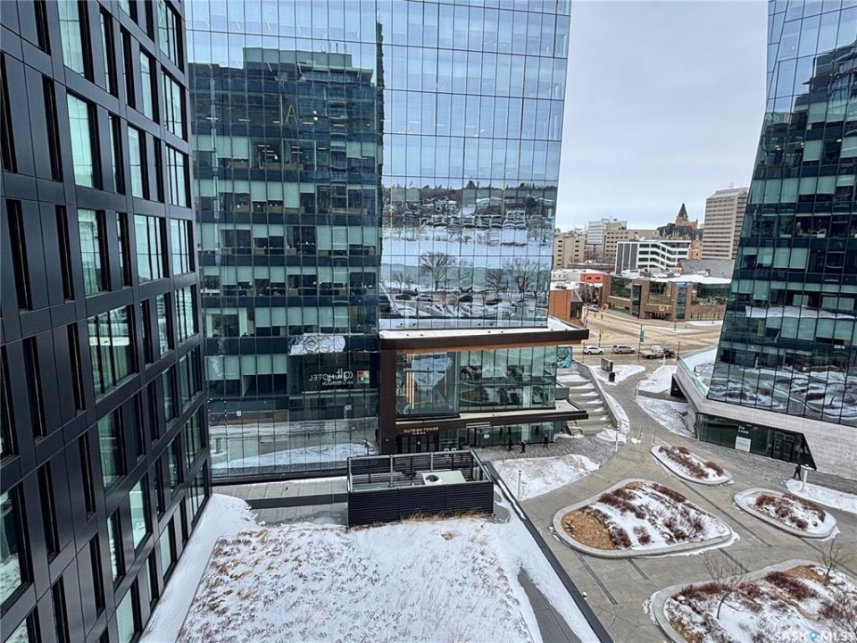 Welcome to Unit 804 at 490 2nd Ave S. This bright 1-bedroom, 1-bathroom condo sits on the 8th floor of a sought-after riverfront building, offering beautiful views and abundant natural light. The suite features quartz countertops, in-suite laundry, and one underground heated parking stall. Residents enjoy access to a fitness centre overlooking the river, a spacious amenities room, and elevator access. A perfect blend of comfort, convenience, and location. The nook refers to space in hall which will fit a small desk and office set up!