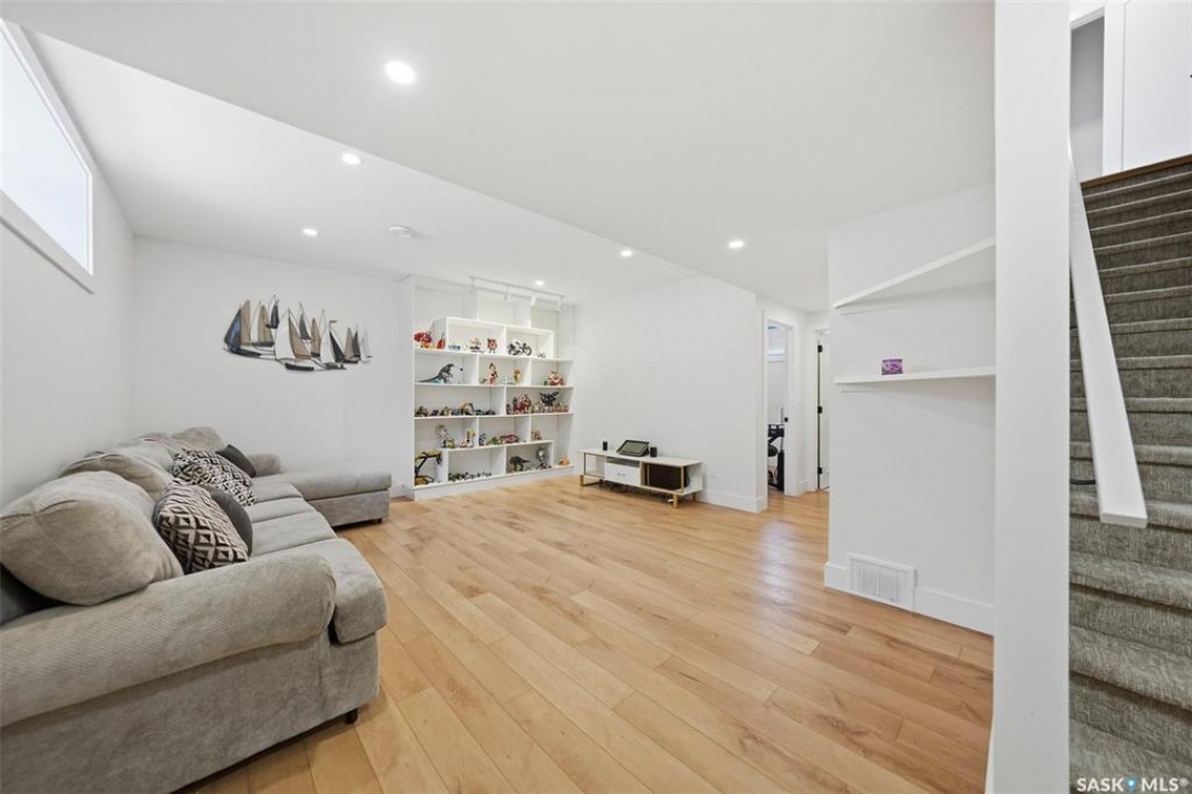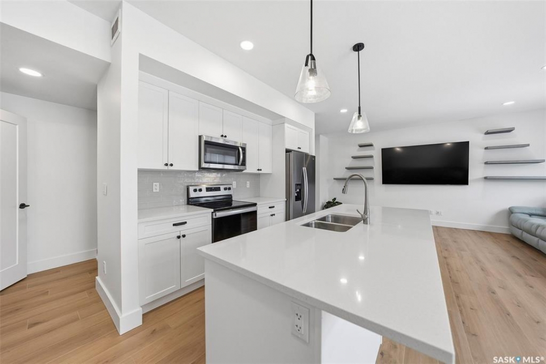 Welcome to 307 Keith Union, quality-built home by Arbutus Properties, offering well-planned layout and West Coast–inspired design. The home features thoughtful selection of custom finishes, including designer lighting package, Scandinavian-inspired hardware, premium tile, wide-plank laminate flooring, quartz countertop, and coordinated backsplash details throughout. The main floor offers inviting front entry with closet and custom built-in bench, leading into open-concept living space with 9-foot ceilings and clearly defined areas. Oversized triple-pane windows bring in abundant natural light and overlook the west-facing backyard, providing excellent afternoon and evening sun. The kitchen is both functional and well-designed, featuring a large island, stainless steel appliance, a range hood vented directly outside, and well-sized pantry for additional storage. Upstairs, you'll find three comfortable bedrooms, bright and spacious bonus room, tiled laundry area, and a main bathroom. The primary bedroom includes walk-in closet and full ensuite. The professionally developed basement continues the home's consistent finish, offering a large family room with laminate floor, an additional bedroom, a 4-piece bathroom with tiled flooring and tile-surround tub, and ample storage space. Both the main floor and basement feature 9-foot ceilings, enhancing the overall sense of space. The extra-large backyard is fully landscaped and fenced, complete with deck & brick patio, children's sand play area, storage shed, and underground sprinkler system. Additional features include insulated double garage and extra-long driveway accommodating up to five vehicles. Further upgrades include high-quality window blinds, central AC, HRV system, and durable James Hardie composite siding. Ideally located within walking distance to two schools, multiple parks, and shopping at Meadows Market, this home offers a strong combination of quality construction, practical design, and convenient location.