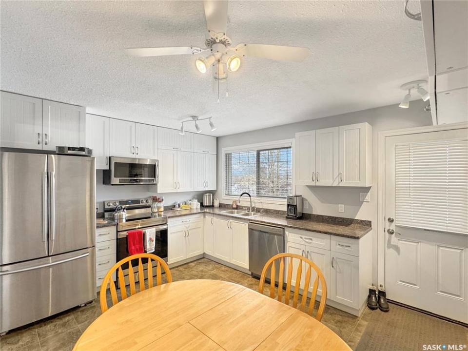 Welcome to this move-in ready Maymont home where pride of ownership shines throughout. This well-cared-for property sits on a landscaped 100 ft x 125 ft lot surrounded by mature trees and a private orchard—your own peaceful oasis. The yard offers a garden area, shed, wrap-around deck, firepit, sheltered BBQ area, double garage, and RV parking, creating an ideal space for relaxing and entertaining. The home features 3 bedrooms upstairs, 1 bedroom downstairs, and 2 bathrooms. It shows exceptionally well and is truly turnkey. Numerous updates were completed between 2014–2019, including shingles, siding, windows, flooring, kitchen, bathrooms, appliances, and more. Recent upgrades (2023-2025) include: furnace, washer and dryer, new window well, natural gas fireplace, Culligan water softener, Culligan reverse osmosis water system, and solar blinds in the living room. As an added bonus, the sellers will include some garden equipment, including the lawnmower; garden tools. The private orchard is a true standout, offering apples, Saskatoon berries, plums, cherries, chokecherries, raspberries, strawberries, and rhubarb—perfect for those who love gardening and outdoor living. Low property taxes make this home even more appealing. Maymont offers exceptional affordability with free summer water (hydrant) for the yard and unmetered potable water, along with peaceful small-town living just outside the city. The community features a K–12 school. Contact your REALTOR � today to book your private showing!