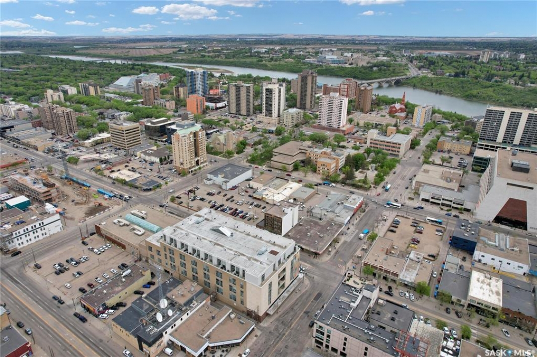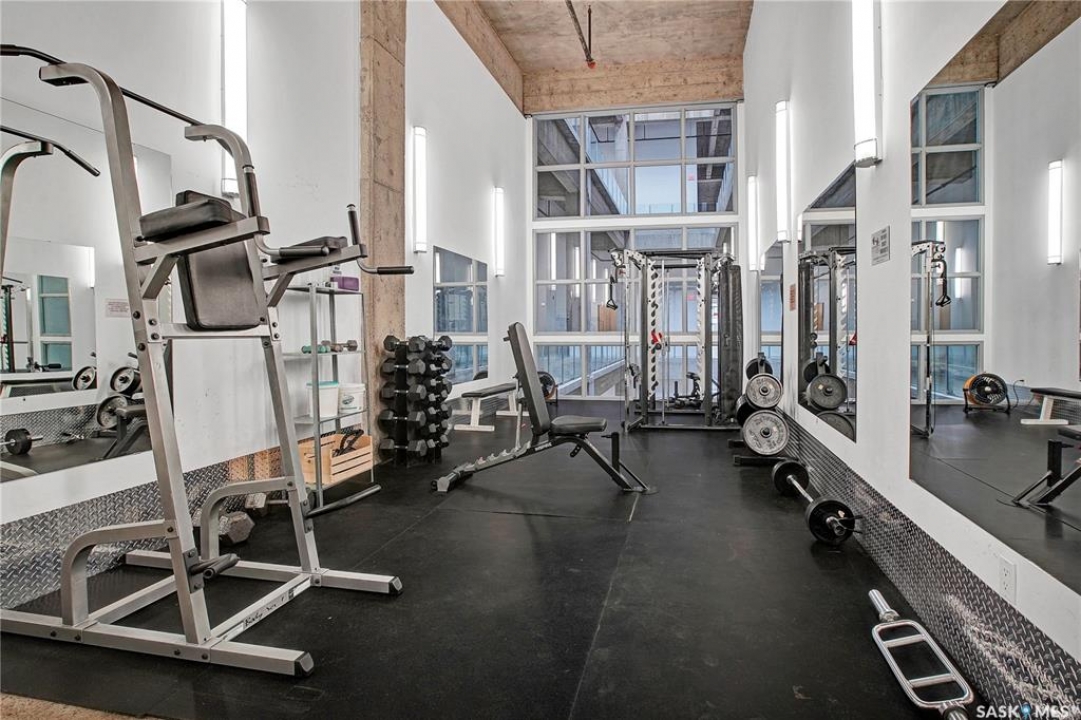 Welcome to #223–120 23rd Street East, located in the heart of downtown Saskatoon at the highly sought-after 2nd Avenue Lofts. This exceptional residence offers a truly distinctive urban living experience, blending industrial character with modern comfort. Polished concrete floors, exposed concrete beams, and an impressive 14-foot-tall by 9.5-foot-wide window create a striking sense of openness while flooding the space with natural light. The sleek matte-black kitchen is both stylish and functional, featuring an extensive bank of cabinetry, stainless steel appliances, and a substantial quartz island—ideal for both everyday living and entertaining. When you're not hosting at home, you'll appreciate being just steps from some of Saskatoon's best restaurants, cafés, Remai Modern Art Gallery, The Persephone Theatre and The Meewasin Valley River Trails. The spacious entry area provides an ideal work-from-home setup, while an additional constructed bedroom offers flexibility as a guest room, private office, or treatment space, complete with a conveniently located powder room. Upstairs, the generous primary bedroom overlooks the main living area, enhancing the loft-style ambiance. The four-piece bathroom has been tastefully renovated, and the unit includes all appliances as well as in-suite laundry for everyday convenience. One parking stall is included in the secure, heated underground parkade, which also provides dedicated bike storage. Condo fees include heat, water, and electricity. Residents enjoy an impressive array of amenities, including four dedicated rooms for fitness, cardio, ping pong, and a library or meeting space, along with an on-site building manager and 24-hour video security throughout common areas and exterior spaces. The rooftop patio, accessible from the third floor, is an ideal setting to barbecue, relax, and enjoy city views. Pets are permitted for owner-occupants with board approval, making this an exciting opportunity for downtown living.