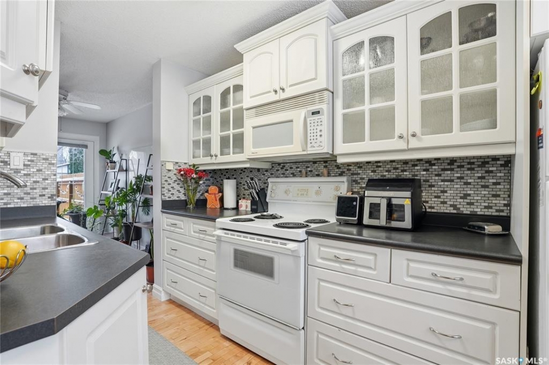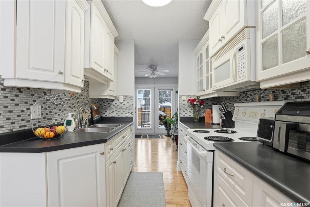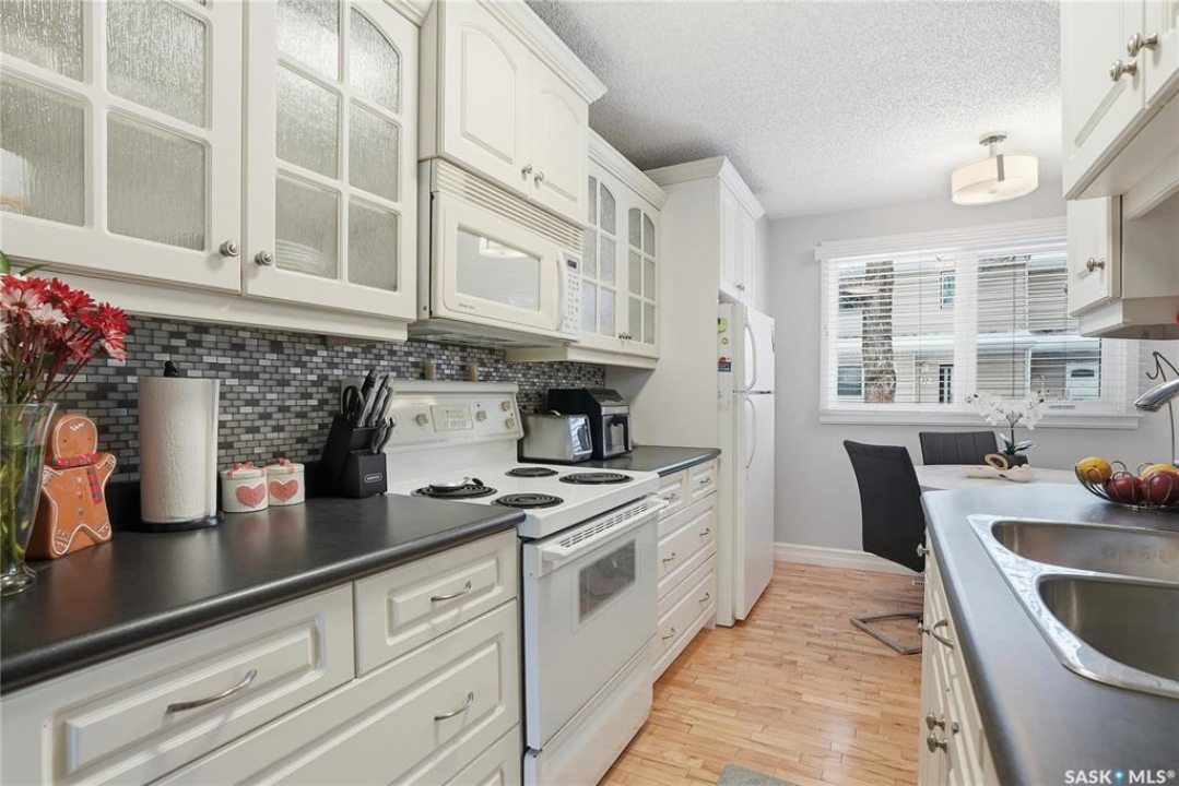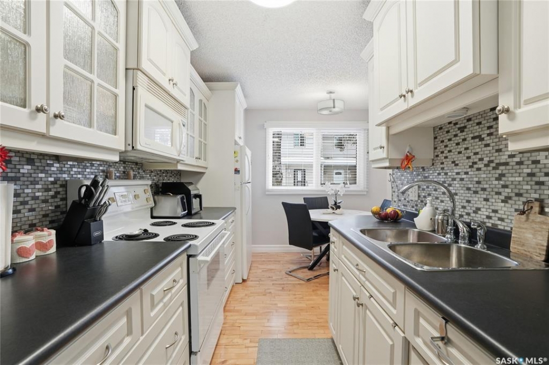Welcome to 28-330 Haight Crescent. This 1017 sq ft townhouse-style condominium is situated on a tranquil crescent, offering a highly private yard. The main level showcases beautiful wood flooring and complementary paint selections. The galley-style kitchen provides ample counter space and is equipped with all essential appliances. A charming, well-lit dining nook adjacent to the kitchen, along with a two-piece bathroom, completes this main floor. French doors provide access to your semi-private yard, which features a deck and generous green space for outdoor enjoyment. The upper level has three bedrooms and a full bathroom. The basement level is fully developed with a comfortable family room and a laundry/utility room, offering plenty of additional storage Water heater, furnace and C/A upgraded in 2023. Upgraded windows on the main floor. Lots of Fresh pant and beautiful wood floors on main. Meticulous and move-in ready. Schedule your private viewing today.