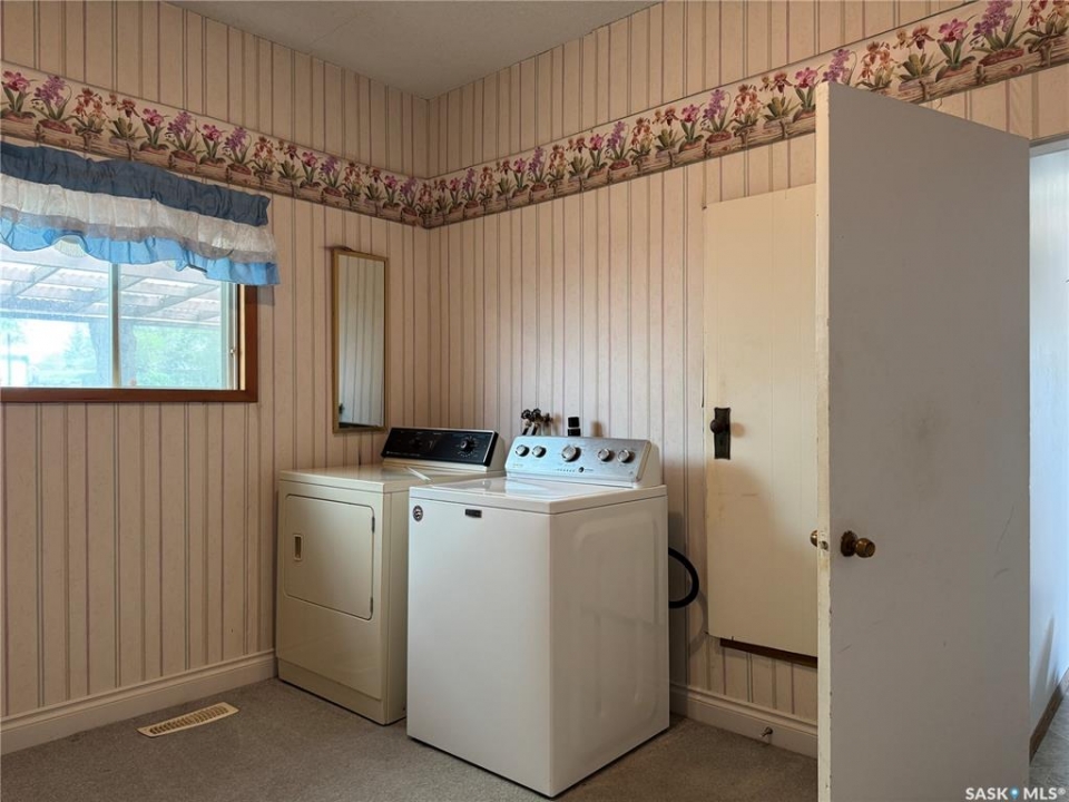 Welcome to 218 4th Street East in Wynyard—a warm and inviting 3-bedroom, 1-bath bungalow nestled in one of the town's most convenient and family-friendly locations. This charming home sits directly across from the community swimming pool and is just steps from a beautiful park, the elementary school, and downtown amenities. Inside, you'll find a spacious and sun-filled living room with newer windows and soaring 9-foot ceilings, creating a bright and airy atmosphere. The practical layout includes three bedrooms, one of which features in-room laundry, making everyday living a breeze. A covered patio at the back overlooks a fully fenced yard with a lovely garden space, perfect for relaxing or entertaining. With a partial basement ideal for storage and a setting that blends small-town serenity with unbeatable walkability, this home offers exceptional value and timeless appeal.