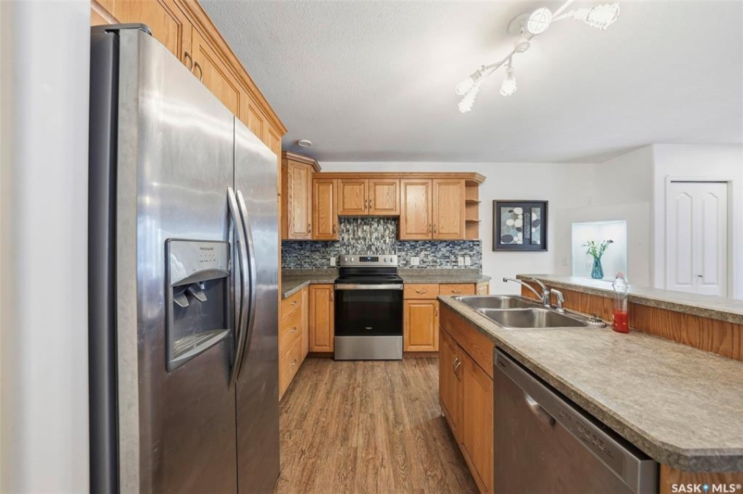 Here is one of the most rare opportunities afforded to you in the heart of Martensville! This unique home boasts a fully developed bungalow up and down and also features a "nanny suite"/secondary suite that is completely self contained. Call this added suite your mortgage helper OR live in the 1 bedroom suite and rent out the main home and potentially cover your costs!!! Extended family or aging parents/inlaws? Perfect for that situation too! This nearly 1700sqft property also boasts 2 attached garages - one for each side. The main floor home features an open floor plan with modern updates. The primary bedroom has a beautiful ensuite bathroom with a corner tub / shower. The basement to this home is fully developed and has 1 large bedroom and two huge family rooms - you can definitely turn one of the family rooms into another bedroom. There is roughed in plumbing if you wanted to add a wetbar in the basement or even develop into another suite as it does have separate entrance. This home has two furnaces and central air conditioning (one furnace for the nanny suite/secondary suite and one for the main home). There is a 200amp electrical panel for added convenience. The main home has its own private backyard that can host your patio area, gardening, or future hot tub. Each side has its own separate laundry, both on the main levels. The nanny suite is a self contained one bedroom with an open concept floorplan, main floor laundry, attached garage, and south facing for maximum sun exposure! This property is conveniently located to all amenities that Martensville has to offer! This property is excellent for that multigenerational family or investor alike. Contact a Realtor for more information and schedule to view your private viewing today!