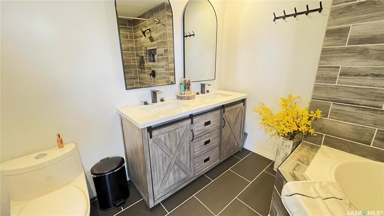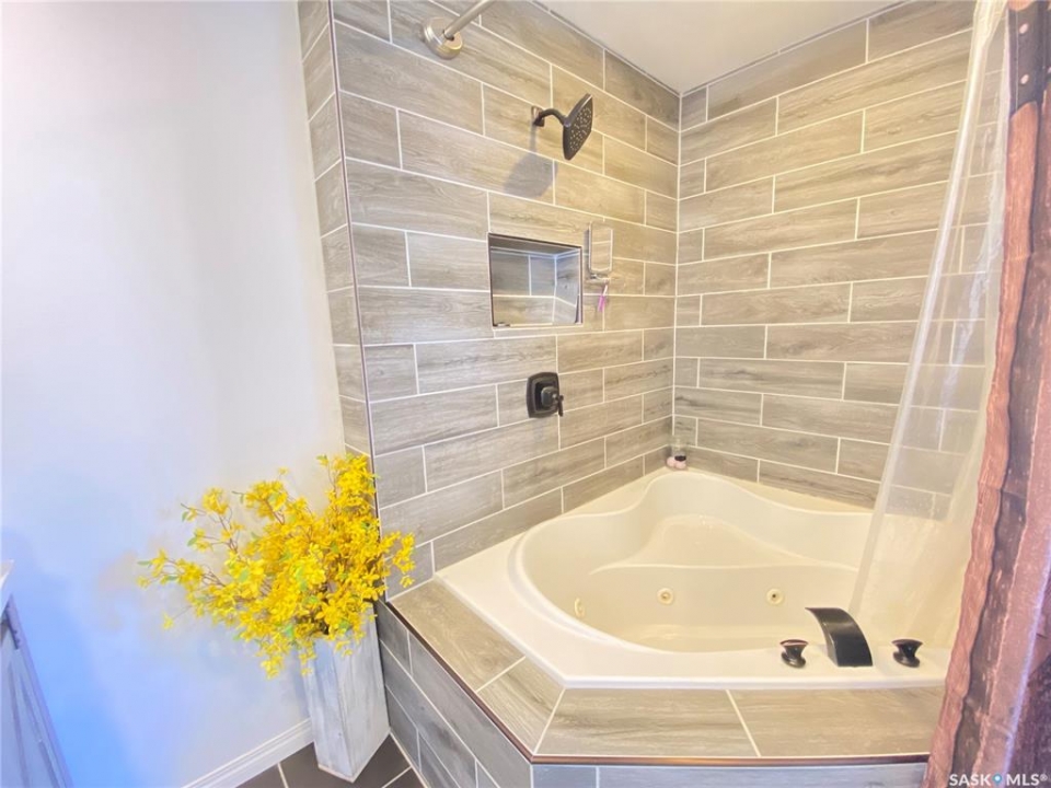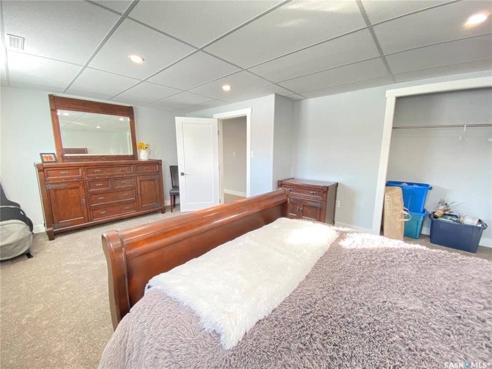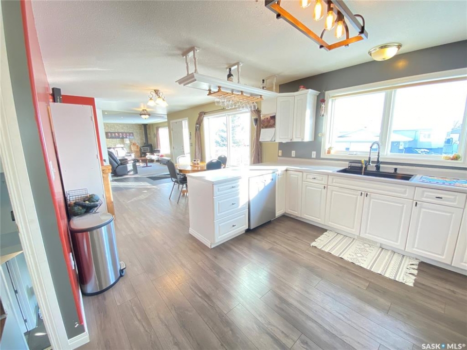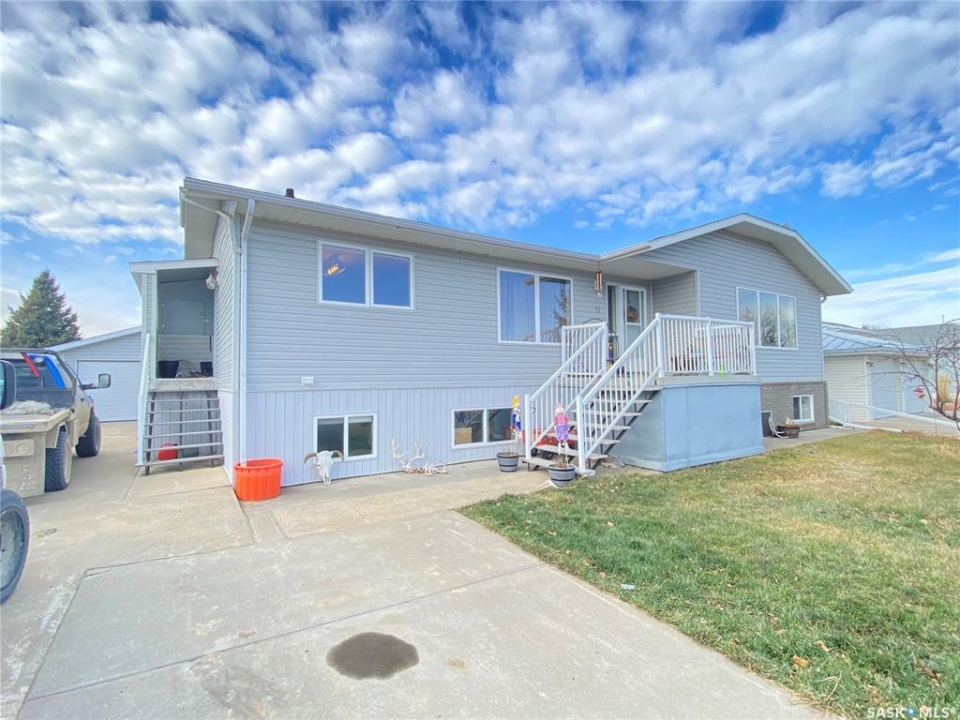 Step into the this home and enjoy the open concept kitchen, dining and living room space. Feel comfort in the east facing living room while relaxing beside the warmth of the new wood burning stove. The main bedroom offers a large ensuite with a dual sink vanity, a jetted jacuzzi tub and heated tile floors. The master suite is completed by a large walk in closet. This raised bungalow also offers a second large room on this floor that could be used as a second bedroom or a large office or crafting space as the home is designed with 3 more bedrooms and 2 bathrooms downstairs. The lower level has a seperate entrance and could easily be converted into a suite - with town approval - if that suits your needs. The property sits on a 70 foot wide lot and the 2 car garage has one door access from the front and the second door access is from the alley. There is also room to park and RV! With additional storage under the deck as well as a storage shed this home is ready to call home. Call today to book your own private tour.