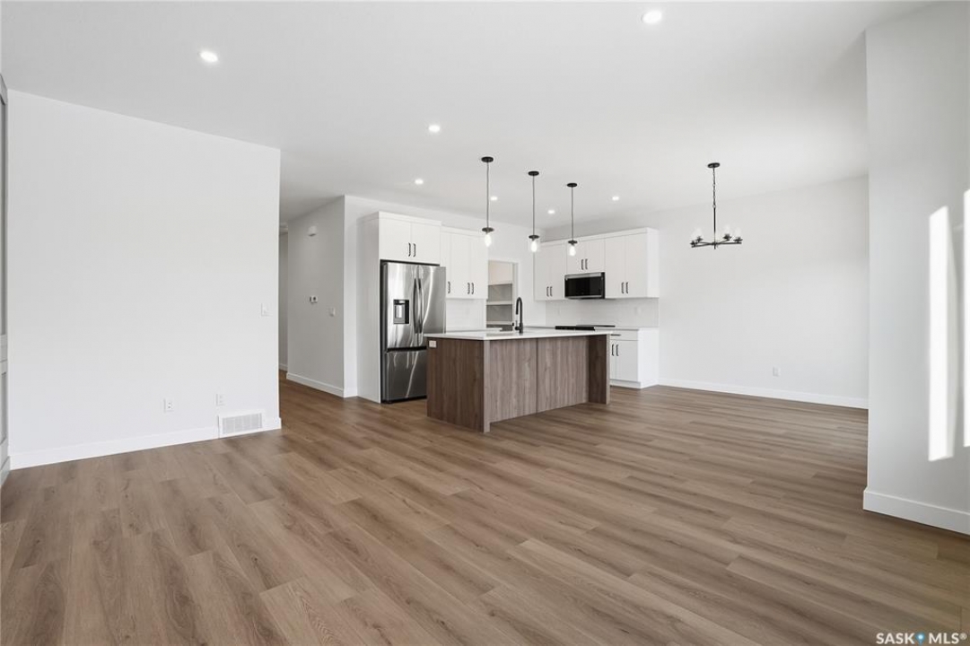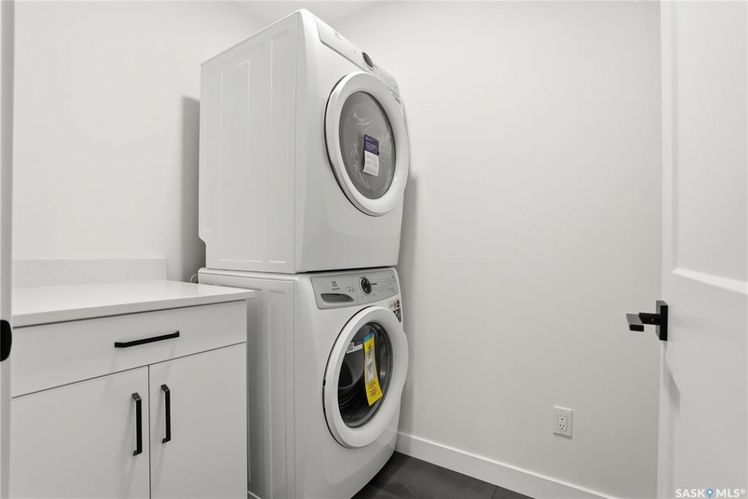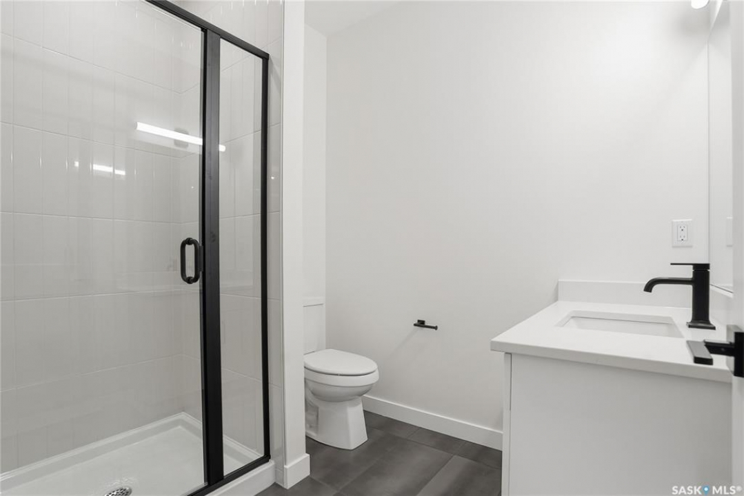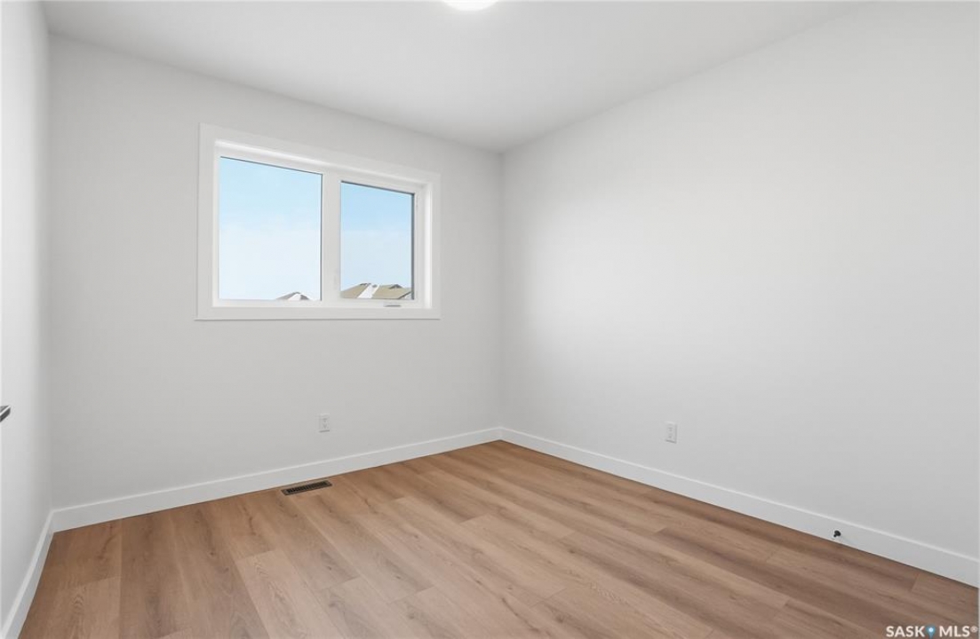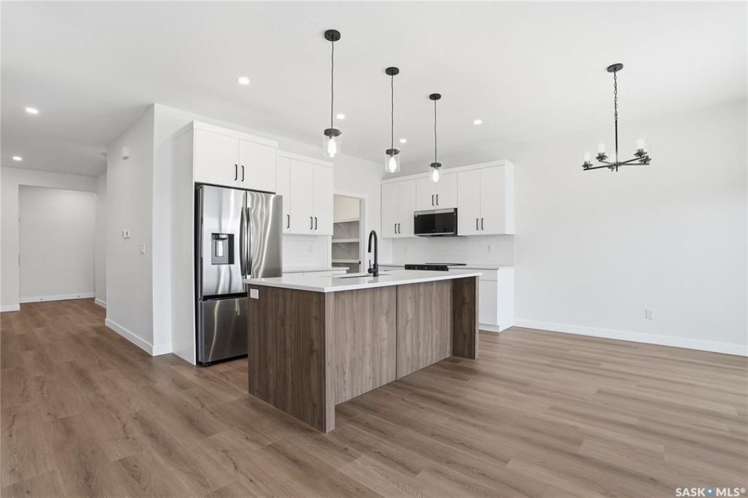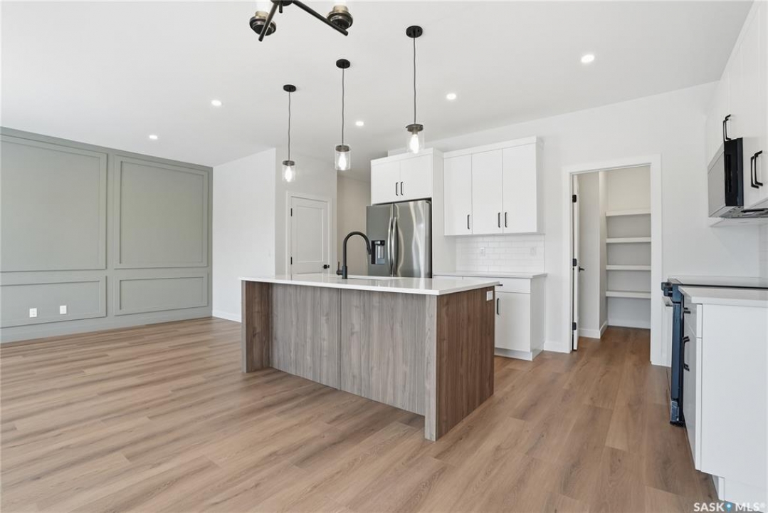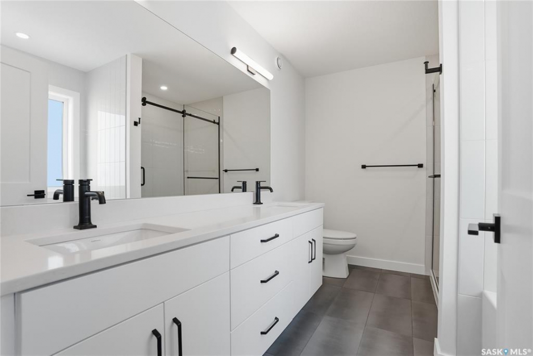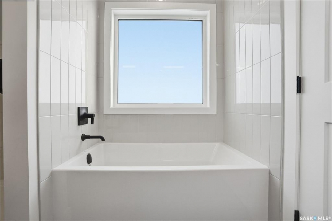 Modern 1,966 sq. ft. two-storey home featuring a rare main-floor bedroom and 3-piece bathroom, ideal for guests or multi-generational living. This 4-bedroom design offers 9' ceilings on the main level, laminate flooring throughout the main and second floors, and ceramic tile in bathrooms with tiled shower surrounds. The kitchen showcases a large quartz island, subway tile backsplash, soft-close cabinetry, walk-in pantry. Upstairs includes additional bedrooms and a well-appointed ensuite with double sinks, soaker tub, and custom tiled shower with glass enclosure. Additional highlights include pot lighting inside and out, upgraded black fixtures, comfort-height toilets, on-demand hot water, HRV, and high-efficiency furnace. Exterior is complete with triple-pane windows, covered front entry, concrete driveway, front landscaping.