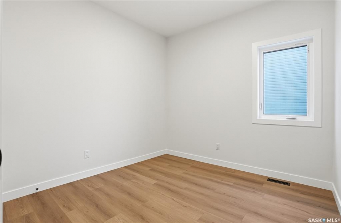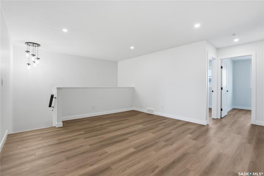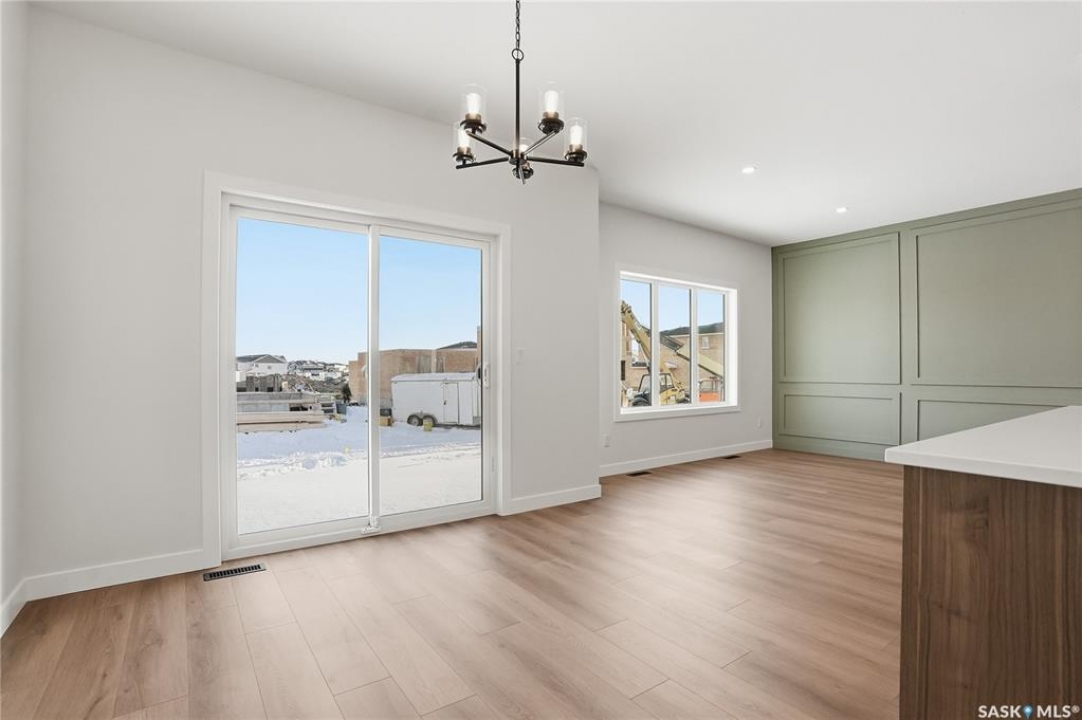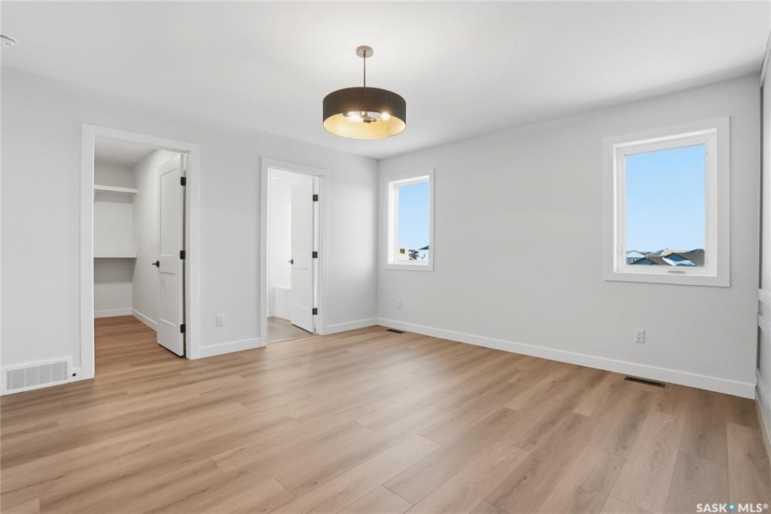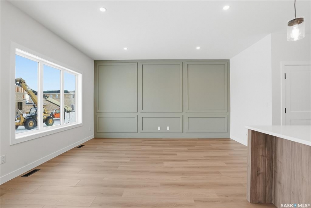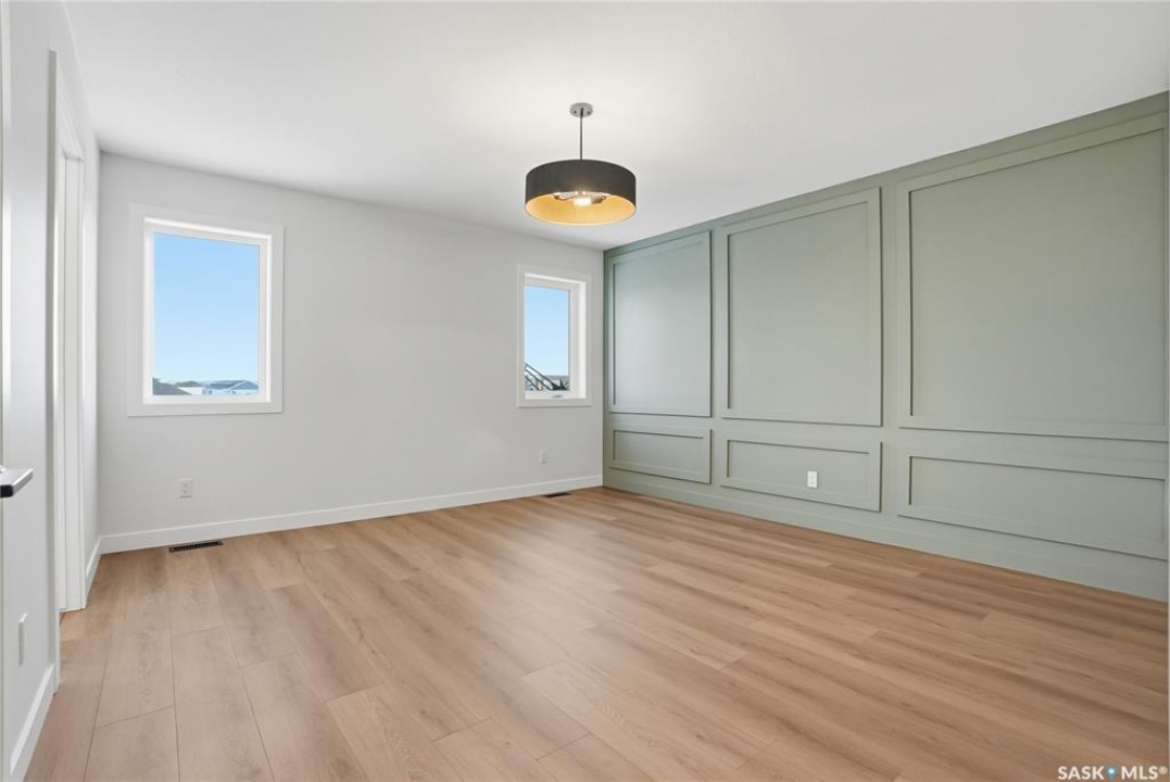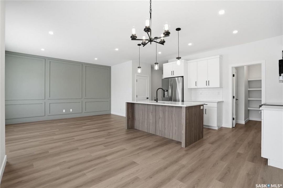 Modern 1,966 sq. ft. two-storey home featuring a rare main-floor bedroom and 3-piece bathroom, ideal for guests or multi-generational living. This 4-bedroom design offers 9' ceilings on the main level, laminate flooring throughout the main and second floors, and ceramic tile in bathrooms with tiled shower surrounds. The kitchen showcases a large quartz island, subway tile backsplash, soft-close cabinetry, walk-in pantry. Upstairs includes additional bedrooms and a well-appointed ensuite with double sinks, soaker tub, and custom tiled shower with glass enclosure. Additional highlights include pot lighting inside and out, upgraded black fixtures, comfort-height toilets, on-demand hot water, HRV, and high-efficiency furnace. Exterior is complete with triple-pane windows, covered front entry, concrete driveway, front landscaping.