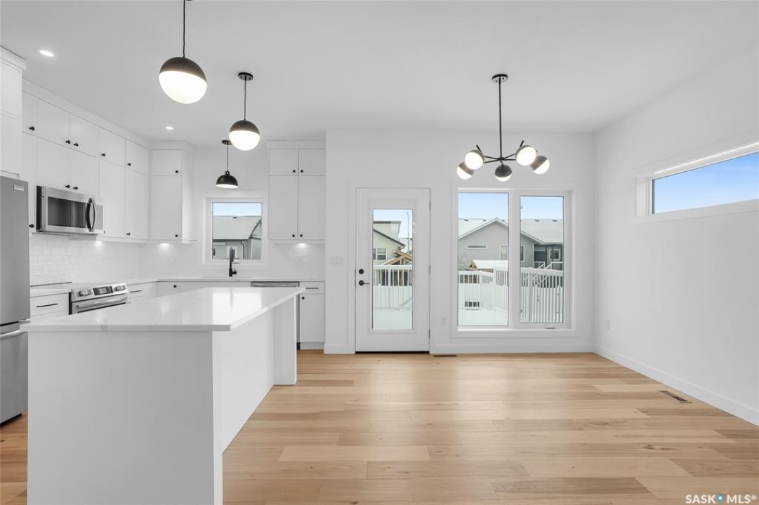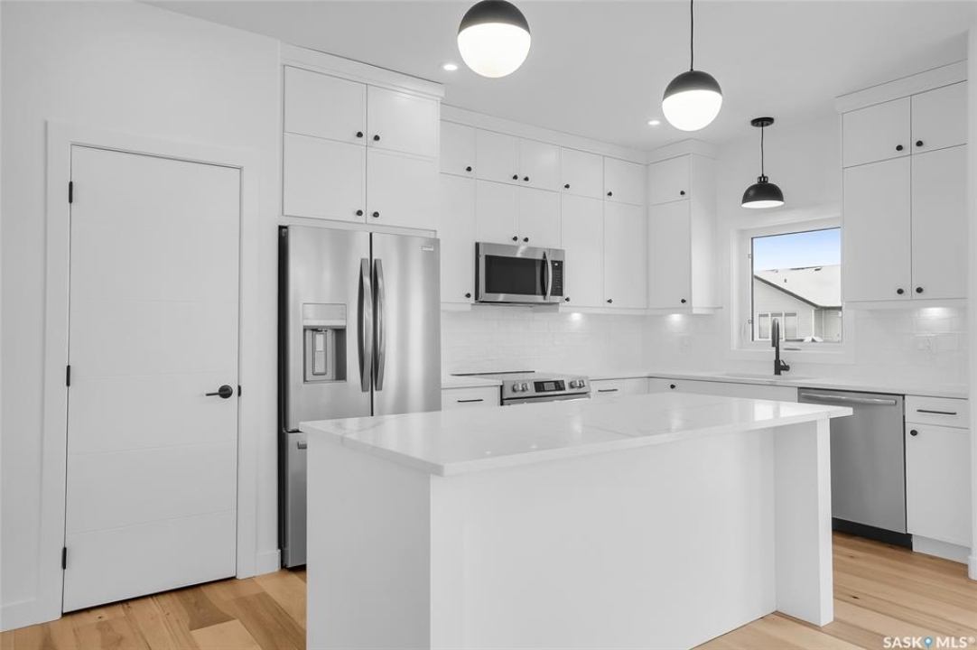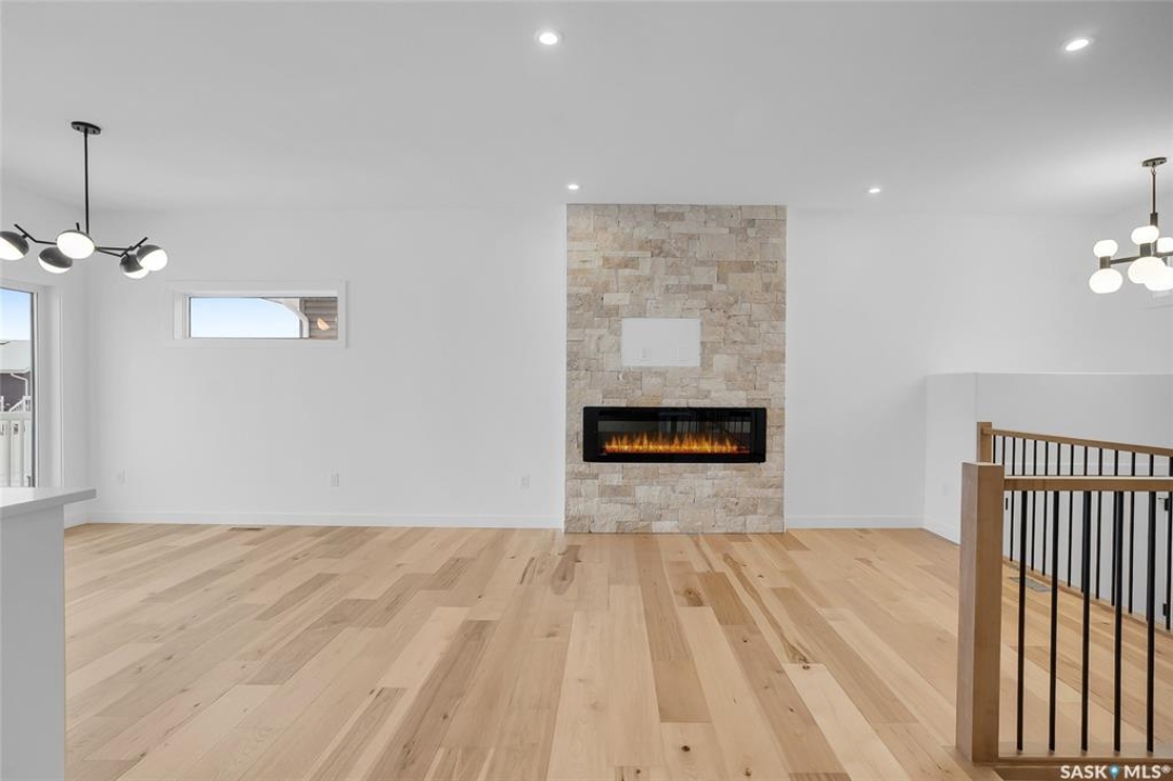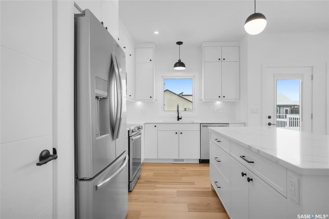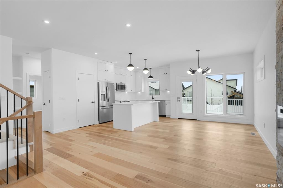 Welcome to 608 Ballesteros Crescent, an exceptional Pawluk Homes residence in Warman's distinguished Legends community. Every detail of this refined modified bi-level speaks to quality and thoughtful design, offering a level of sophistication with comfort. The grand foyer introduces an open staircase with custom maple railing, high ceilings, and rich hardwood flooring that set an elegant tone throughout. The main living area is light-filled and perfectly arranged for modern living, featuring a chef-inspired kitchen with quartz countertops, custom cabinetry, glass tile backsplash, and designer lighting. The adjoining dining and living spaces create a warm, inviting atmosphere for both relaxed evenings and elegant entertaining. The primary suite is a private retreat with a spacious walk-in closet and a beautifully appointed ensuite. Two additional bedrooms and a full four-piece bath complete the main level, offering versatility for family or guests. The lower level remains open for your future development, with options for additional bedrooms, a recreation area, or a home theatre—quotes are available to complete the space to your exact specifications. A triple attached garage, fully insulated, drywalled, painted, and roughed in for heat, provides ample room for vehicles and hobbies, while central air ensures year-round comfort. The composite deck extends the living space outdoors, perfect for enjoying peaceful evenings in one of Warman's most desirable locations near the Legends Golf Course, walking paths, parks, and amenities. 608 Ballesteros Crescent embodies understated luxury and enduring quality, a home that makes an impression the moment you arrive.