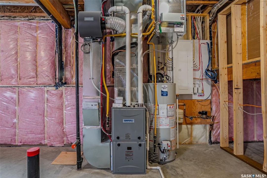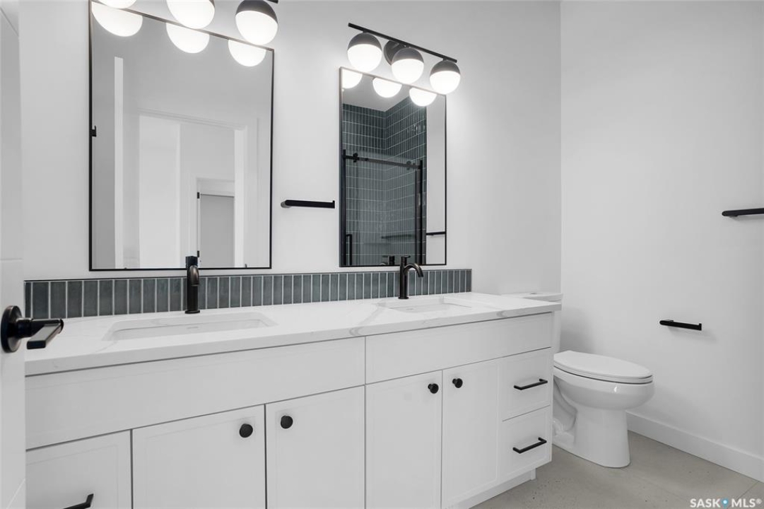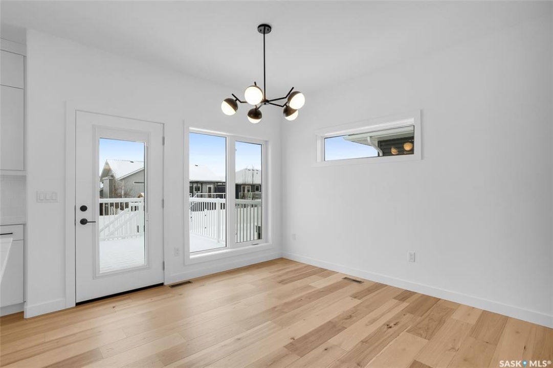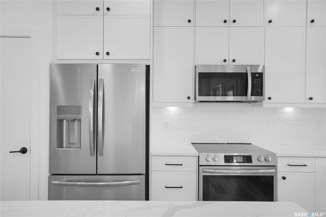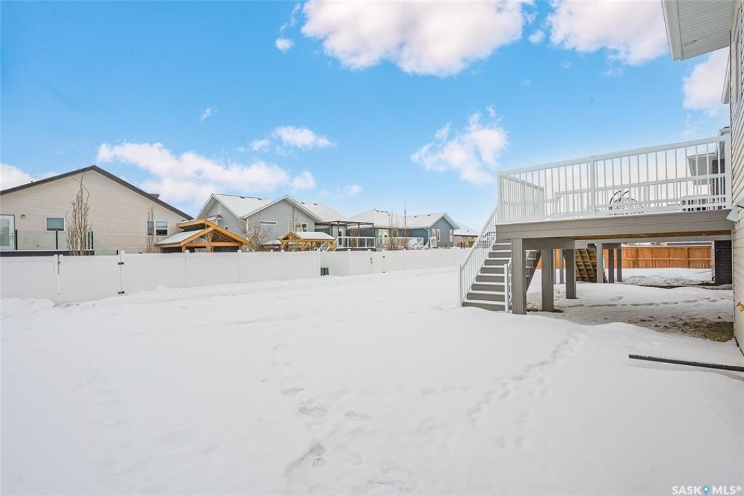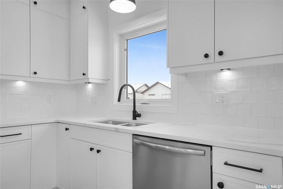 Welcome to 608 Ballesteros Crescent, an exceptional Pawluk Homes residence in Warman's distinguished Legends community. Every detail of this refined modified bi-level speaks to quality and thoughtful design, offering a level of sophistication with comfort. The grand foyer introduces an open staircase with custom maple railing, high ceilings, and rich hardwood flooring that set an elegant tone throughout. The main living area is light-filled and perfectly arranged for modern living, featuring a chef-inspired kitchen with quartz countertops, custom cabinetry, glass tile backsplash, and designer lighting. The adjoining dining and living spaces create a warm, inviting atmosphere for both relaxed evenings and elegant entertaining. The primary suite is a private retreat with a spacious walk-in closet and a beautifully appointed ensuite. Two additional bedrooms and a full four-piece bath complete the main level, offering versatility for family or guests. The lower level remains open for your future development, with options for additional bedrooms, a recreation area, or a home theatre—quotes are available to complete the space to your exact specifications. A triple attached garage, fully insulated, drywalled, painted, and roughed in for heat, provides ample room for vehicles and hobbies, while central air ensures year-round comfort. The composite deck extends the living space outdoors, perfect for enjoying peaceful evenings in one of Warman's most desirable locations near the Legends Golf Course, walking paths, parks, and amenities. 608 Ballesteros Crescent embodies understated luxury and enduring quality, a home that makes an impression the moment you arrive.