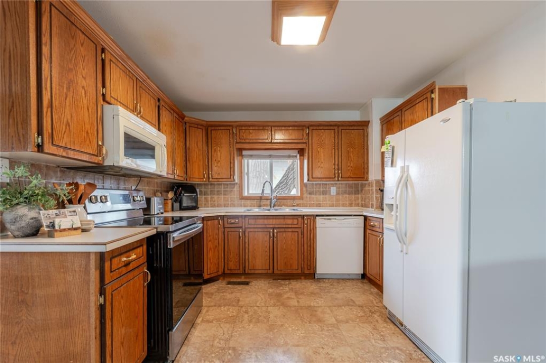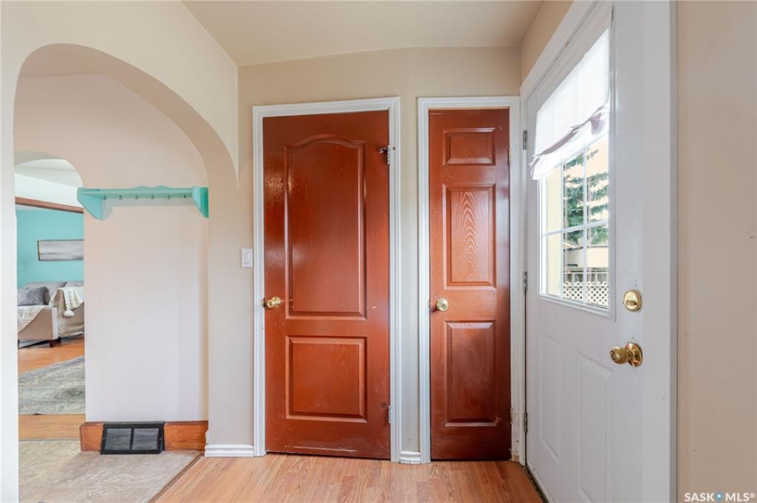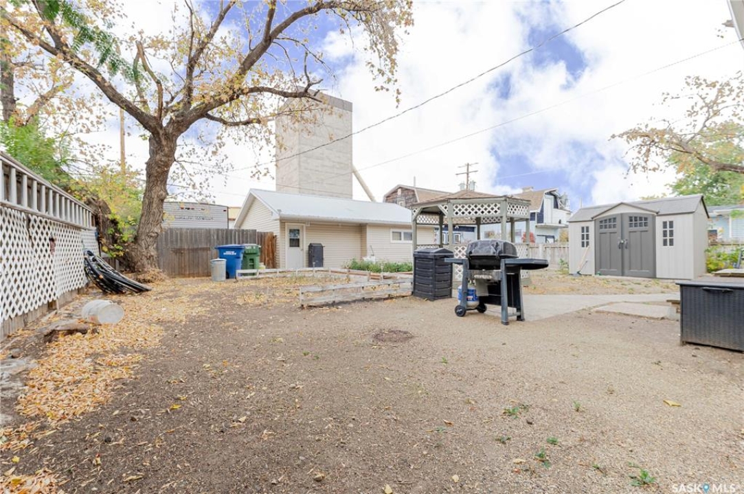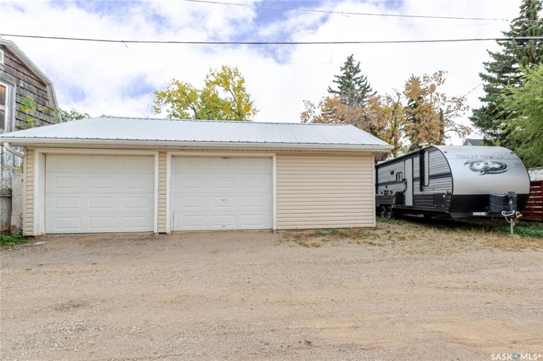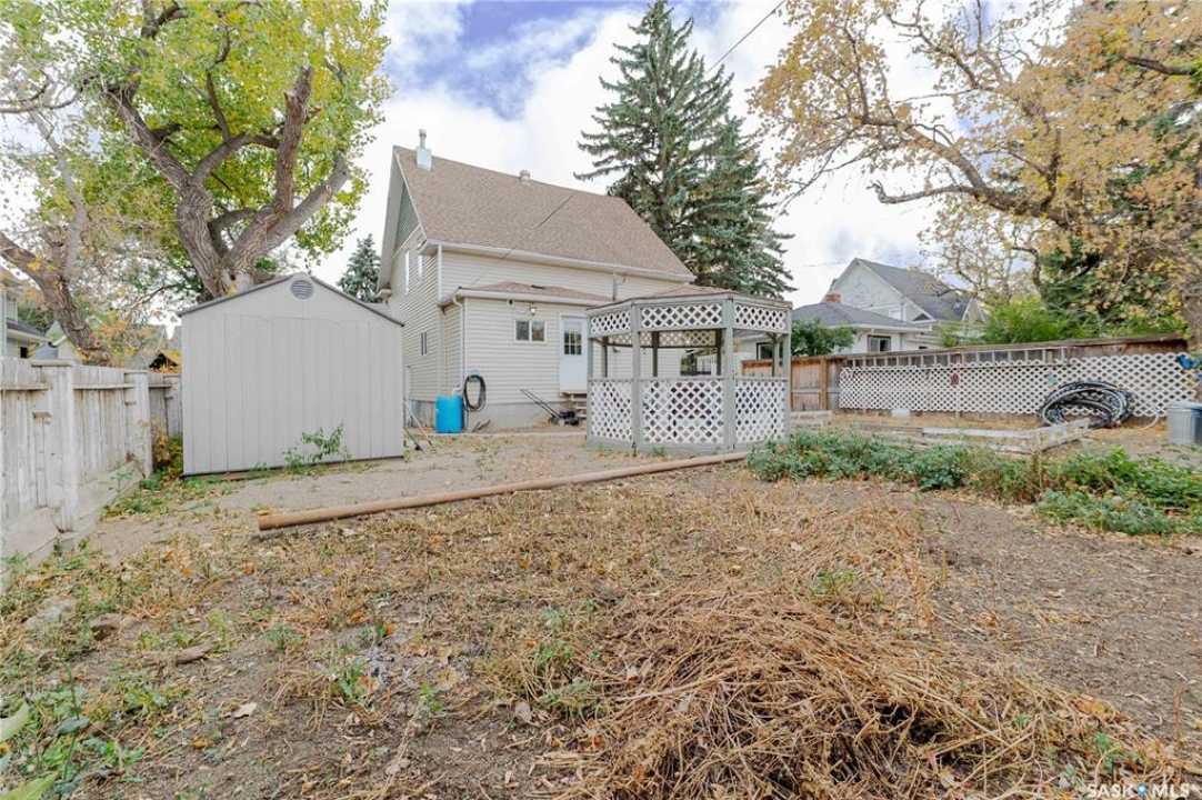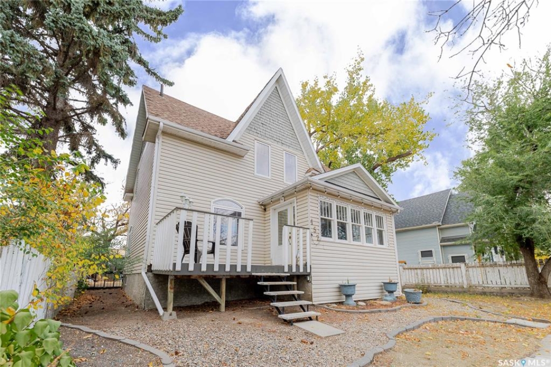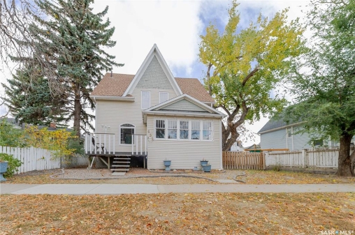 This character home is nestled on a quiet, tree-lined street near schools and downtown Moose Jaw, offering a timeless blend of charm and practical living. Throughout the home, original hardwood floors, a striking Victorian staircase, and vaulted ceilings create a warm and inviting atmosphere. The bright living and dining rooms are enhanced by large picture windows, bringing in ample natural light. The kitchen features generous counter space with a convenient breakfast bar, making it ideal for casual meals and entertaining. Additional main-floor highlights include a convenient laundry area, a 2-piece powder room, and an enclosed front veranda that adds to the home's welcoming appeal. Outside, the spacious backyard is perfect for relaxation or entertaining guests. It boasts a gazebo, a fire pit, and a dedicated garden space for those who enjoy outdoor activities or gardening. Upstairs, you'll find three comfortable bedrooms, a full bathroom, and a versatile landing area that can be used as a home office or a cozy reading nook. The basement offers extra living space with a family room and another 2-piece bathroom. Completing the property is a double detached garage with alley access and plumbing roughed in for in-floor heat, providing both convenience and comfort Offering a rare combination of character and convenience, this home is ready for you to make it your own. Book your showing today!
