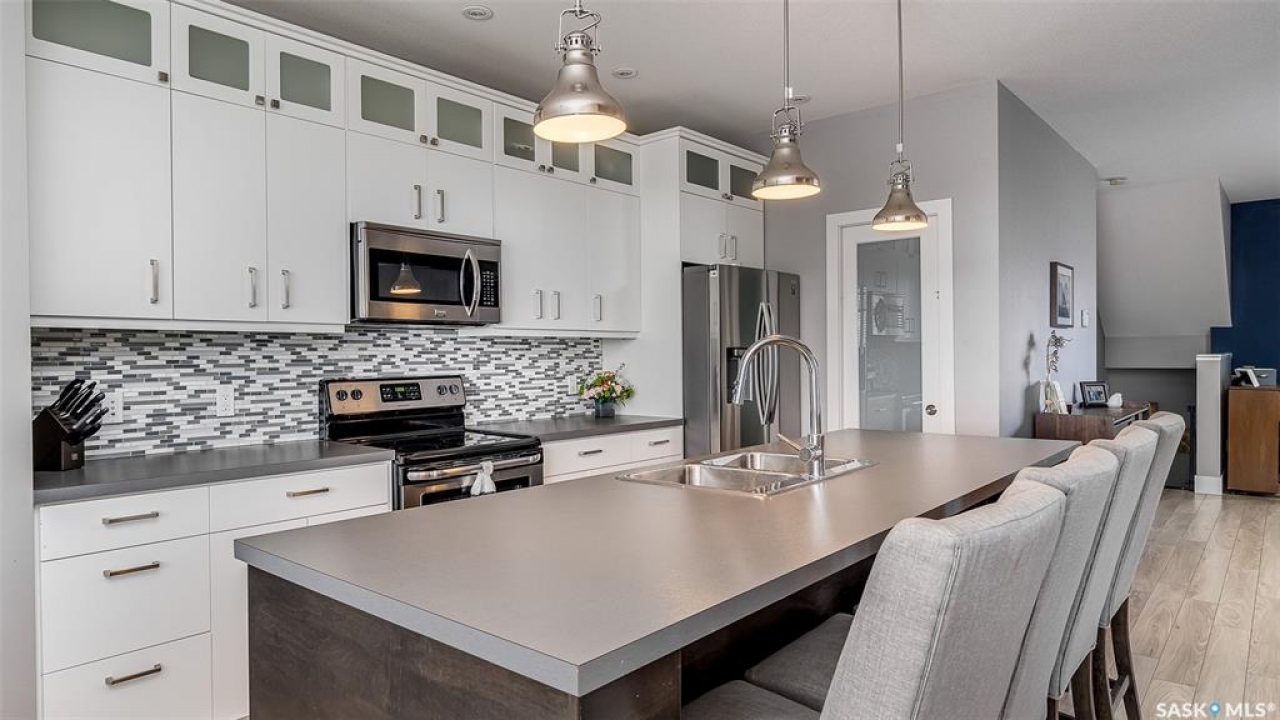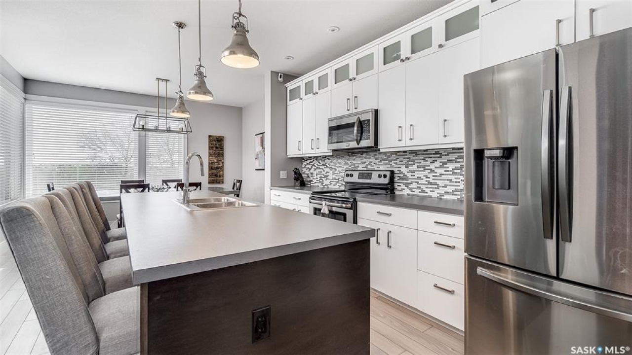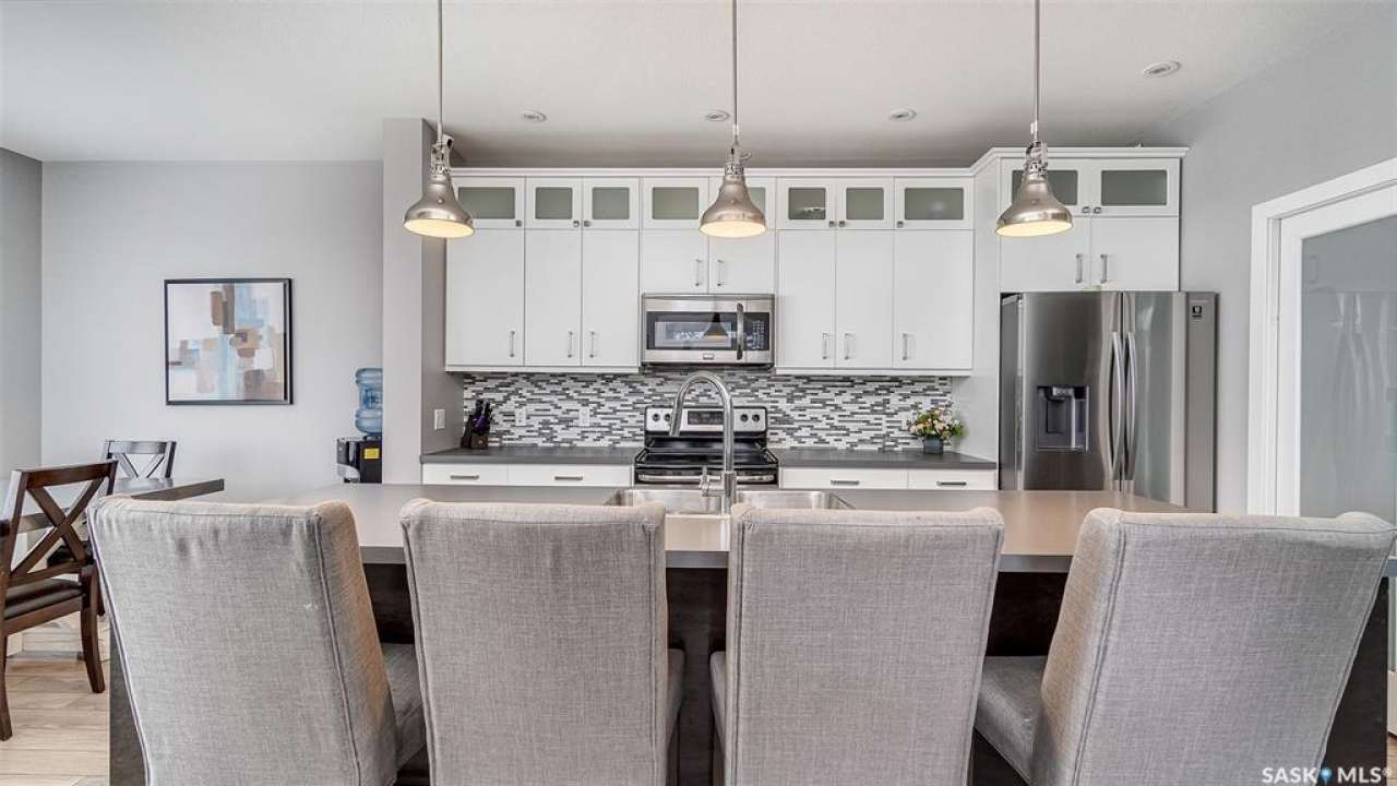 Are you looking for a modern home with a wow factor? This 4 bed / 3 bath home built in 2014 and boasting over 1,800 sq.ft in an established neighborhood & located across the street from a park & skating rink! Excellent curb appeal as you pull up! As you enter you are sure to be impressed by all the natural light and the9 foot ceilings on the main & 2nd floor. Heading inside you are greeted by a spacious foyer that leads into an open concept living floor. Towards the front we find a formal dining room with park views. Next we find a stunning kitchen boasting stainless steel appliances, a huge eat-up island and a walk-in pantry. At the back we find a huge living room with a stunning fireplace and finally a 2 piece bathroom. Heading upstairs we find an office space half way up. At the top we have 2 good sized bedrooms as well as 2nd floor laundry. We also find the spacious primary suite with excellent views, a large walk-in closet and a 5 piece ensuite that has dual entry. In the basement we find a fourth bedroom, a 4 piece bathroom, and a spacious family room showcasing a wet bar and projector. Outside we have a patio space and artificial turf! You are sure to be impressed by this home! Reach out today to book your showing!