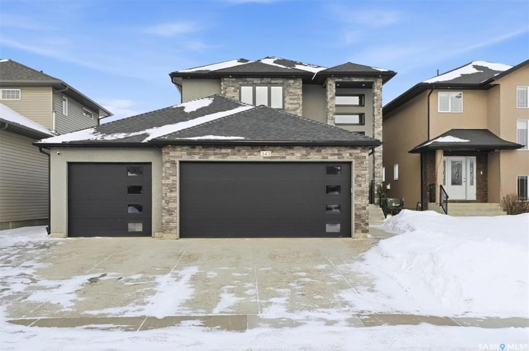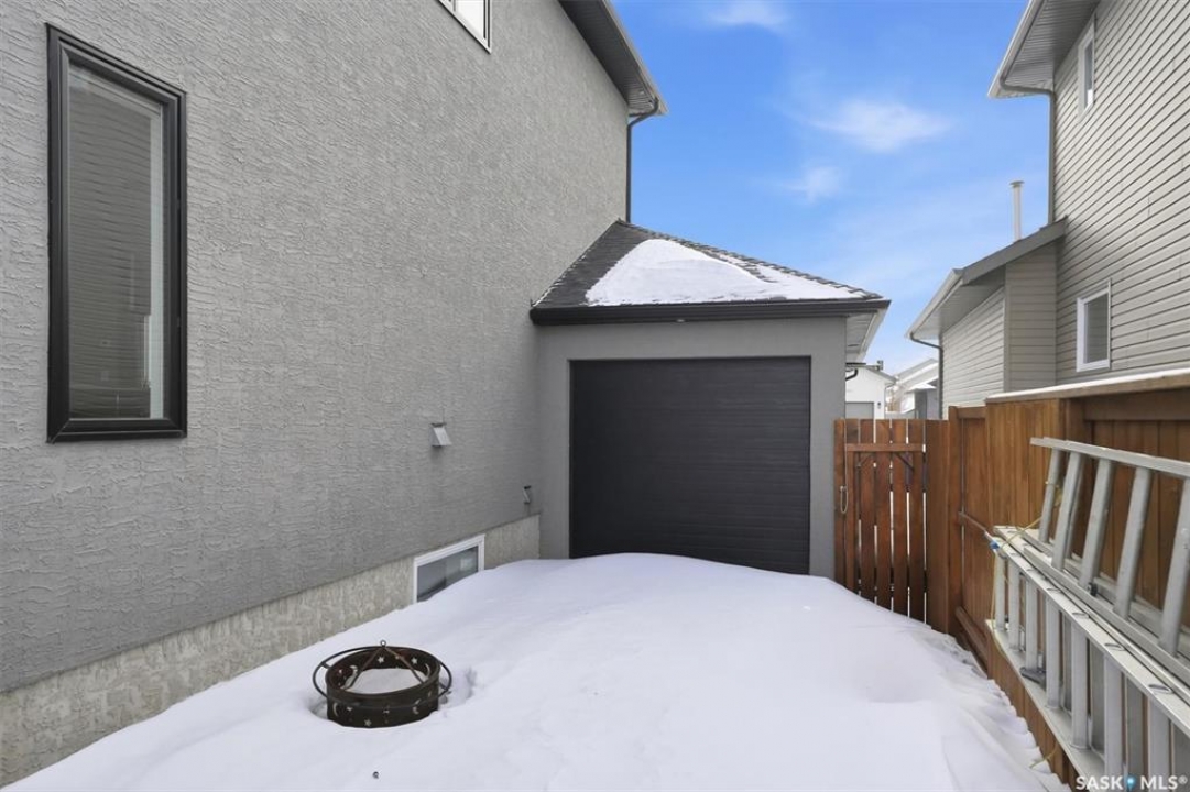 LOOK at the upgrade list on this home! Featuring a FOUR CAR heated garage, 4 bedrooms, 4 bathrooms, a fully developed basement, and backing open space, homes like this rarely come available. Located in a prime Evergreen setting, this luxurious 2 storey offers exceptional design and extensive upgrades. A vaulted entry welcomes you into the main level, which features hardwood floors and a spacious great room. The showpiece kitchen is designed for entertaining with SO MANY full height custom cabinets and several pantries, a massive island, quartz countertops, stainless appliances, deluxe lighting package, and a tile backsplash. The kitchen flows into a large dining area highlighted by an exquisite light fixture; dining connects to the great room, where a gas fireplace, built-in cabinetry, and custom bulkheads create a modern lounge space. The main floor also includes a 1/2 bathroom, boot room and laundry room, and direct access to the four-car heated garage. The second level offers 3 beds and 2 baths with upgraded finishes. The primary suite features a walk-in closet and a connecting five-piece spa ensuite with extensive tile work, incredible tiled shower, freestanding tub, quartz double countertops, recessed lighting, and in-floor heat. 2 bedrooms share a Jack and Jill family bath. The fully developed basement provides additional modern living space with a family room featuring built-in speakers and a dramatic linear fireplace, a wet bar with quartz countertops and floating shelves, an entertainment lounge, 4th bedroom, and a 3pc bath with a custom steam shower. Notable upgrades include built-in Celebright soffit Christmas lighting, Hunter Douglas electric blinds, wiring for security cameras, solid core interior doors, sound system, custom closets, central air, central vac, hot water on demand, water softener, u/g sprinklers, gas bbq hookup, newer fridge, and recently replaced mechanical. Outdoor living is enhanced by a pergola, patio, and composite deck.