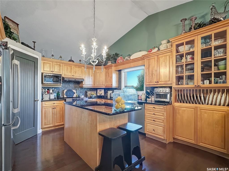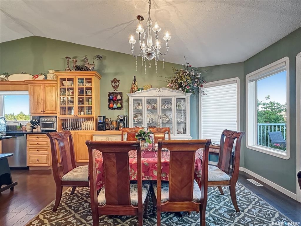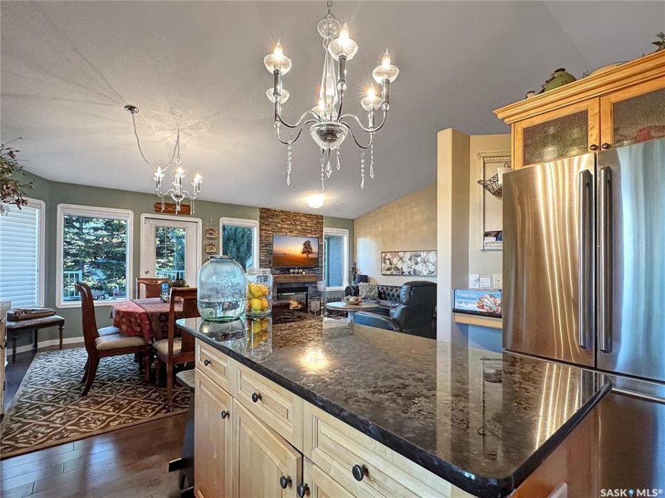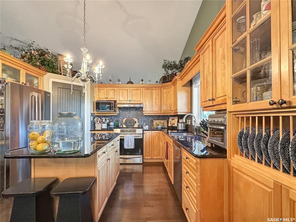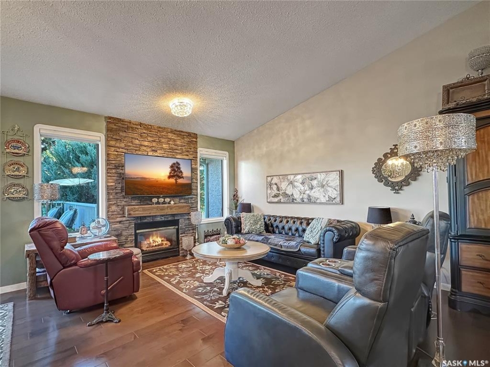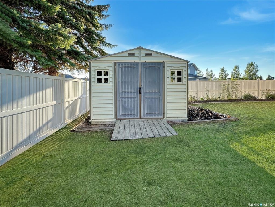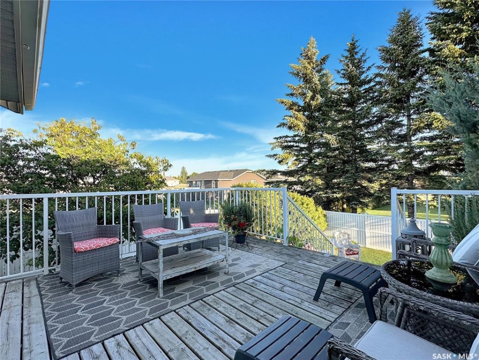 Welcome to this beautifully maintained family home in the friendly community of Balcarres! Offering over 1,800 sq. ft. of main floor living space plus a fully finished basement, this spacious home features 5 bedrooms and 3 full bathrooms—perfect for a growing family or those who love to entertain. The main floor boasts vaulted ceilings and an open-concept layout, creating a bright and inviting atmosphere. The kitchen is a standout with granite countertops and stainless steel appliances, including a fridge, stove, and dishwasher. You'll also find a comfortable living room, dining area, laundry room, den, and more—all designed with functionality and flow in mind. Downstairs, enjoy a large family room and ample storage space, making it ideal for movie nights or a home gym. The home also includes two gas fireplaces, central air conditioning, and central vac for added comfort and convenience. Step outside to a fully insulated double attached garage with an automatic opener. The backyard is a private retreat, featuring a two-tiered deck, sheltered patio, mature trees, garden area, storage shed, and PVC fencing for low-maintenance living. Located just minutes from the scenic Qu'Appelle Valley and nearby lakes, and only an hour's drive to Regina, this home combines small-town charm with easy access to city amenities. Balcarres offers a K–12 school, medical clinic, grocery store, pharmacy, restaurant, lumber yard, and more—everything you need, right in town. Call your favorite local agents to view.