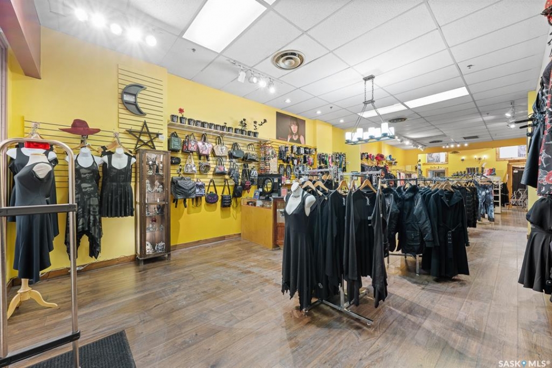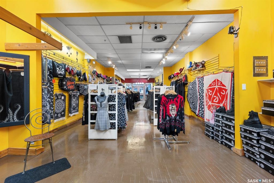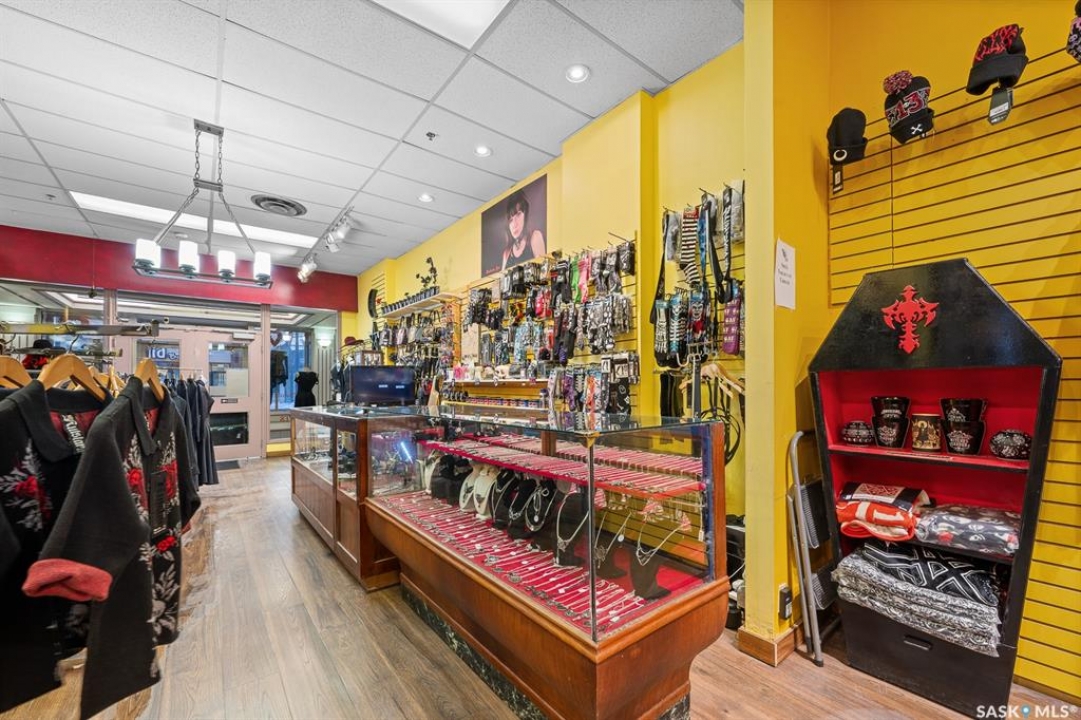 Rare opportunity for purchase. 1,250 sq. ft. retail space currently used as women's fashion boutique store. Prime location and ideal for all general retail use. Features a bright showroom, cash counter, fitting room, washroom, and a full basement for storage. Located in the heated Scarth Street Pedway with 24/7 security by Harvard Development. Enjoy being downtown Regina and benefit from high foot traffic and nearby amenities. This property is an excellent home for your business venture. Current existing inventory and business can be for purchase as well.
