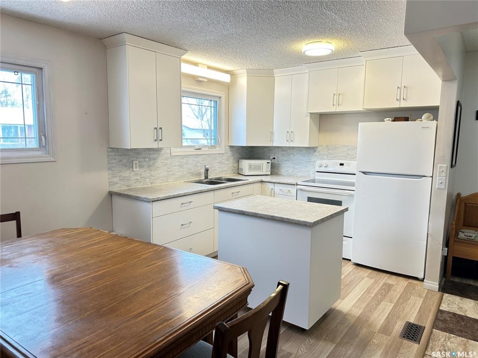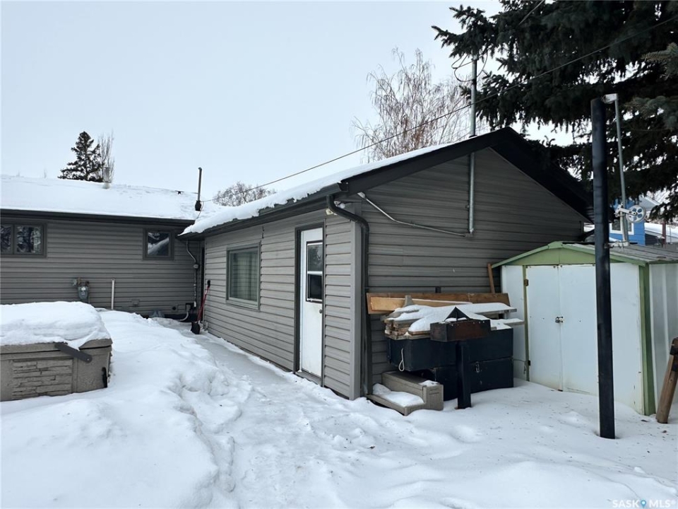 Welcome to your family sanctuary in the quiet village of Clavet. This inviting 1000 square foot. bungalow offers 3 bedrooms, 2 bathrooms, and thoughtful design throughout—perfect for comfortable, everyday living. Enjoy small-town peace without sacrificing convenience. You're just 10 minutes from Saskatoon's Costco and the new Meadows Market shopping district, with everything you need close at hand. The main floor features a well-designed kitchen with dining space and the convenience of main-level laundry. Downstairs, the fully finished basement expands your living space with a large recreation area and second kitchen—perfect for family gatherings or multi-generational households. Outside, your private retreat awaits. The mature, generously sized yard includes a beautiful interlocking brick patio, relaxing hot tub, and underground sprinkler system that keeps maintenance simple. Multiple storage sheds and plenty of parking, meaning that there is room for just about everything. Quality upgrades include central air, central vacuum, recently installed triple-glazed windows for energy savings, city water and sewer, plus a single attached garage with workshop space and direct entry to the home. All appliances are included. Families will appreciate Clavet's excellent K-12 school with in-town bussing, giving you small-town charm with all the modern conveniences. This move-in ready home is waiting for you—book your showing today!