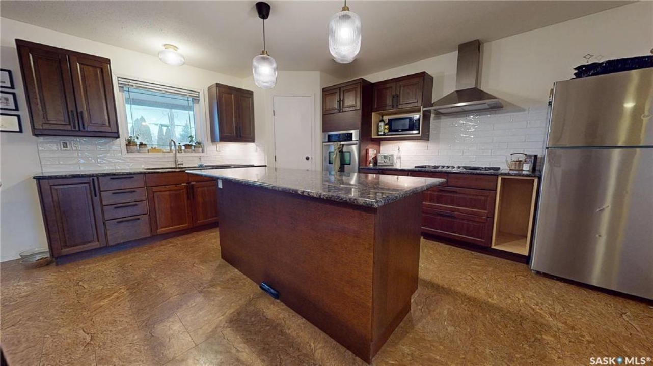 Welcome to 211 Lonsdale Street in Maple Creek. This custom-built, raised bungalow is located in a newer residential area close to schools, recreation, shopping, and a new daycare currently under construction. Tidy and move-in ready, the home features a split-entry foyer and an open-concept main floor with kitchen, dining, and living space offering room for a large table plus island seating, a corner pantry, quartz countertops, countertop range with hood, built-in oven, and a double sink overlooking the covered deck and backyard. The bright living room features engineered hardwood flooring. The primary bedroom includes a walk-in closet and 4-piece ensuite. There are two additional main-floor bedrooms and a 5-piece main bath with double sinks for those busy family mornings. The fully developed basement offers a family room, rec/games area with wet bar and cabinetry—perfect for guests, teens, crafting or hobbies—two more bedrooms, a 3-piece bathroom, and a utility room with designated laundry area, storage, furnace, air exchanger, central vac, and sump pump. Outside, enjoy a large fenced yard ideal for kids and pets, a gravel fire pit area, storage shed, RV or extra vehicle parking, and both a front concrete drive and rear gravel drive. The icing on the cake is the fully insulated, heated garage with plenty of room for vehicles, a workshop, or man cave. Priced to sell, this is a home you won't want to miss.