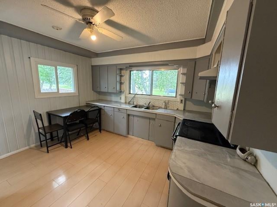 Welcome to this charming 760 SF bungalow located in a desirable, family-friendly neighborhood. It is perfect for first-time buyers or downsizers seeking comfort and potential. The bright and airy main floor features a spacious open concept living and dining area with natural light from large windows. The kitchen boasts a ceiling fan, updated countertops and backsplash, and comes fully equipped with all appliances. Two cozy bedrooms and a 4-piece bathroom with new flooring complete the main level. Downstairs, the unfinished basement offers a laundry room with washer and dryer included and ample space for a future rec room, office, and second bathroom, ready for your personal touch. Enjoy peace of mind with a brand-new hot water tank and gas forced air furnace. Outside, the partially fenced yard provides room to relax or garden. This home comes with potential and opportunity at an affordable price. Don't miss your chance to make it yours!