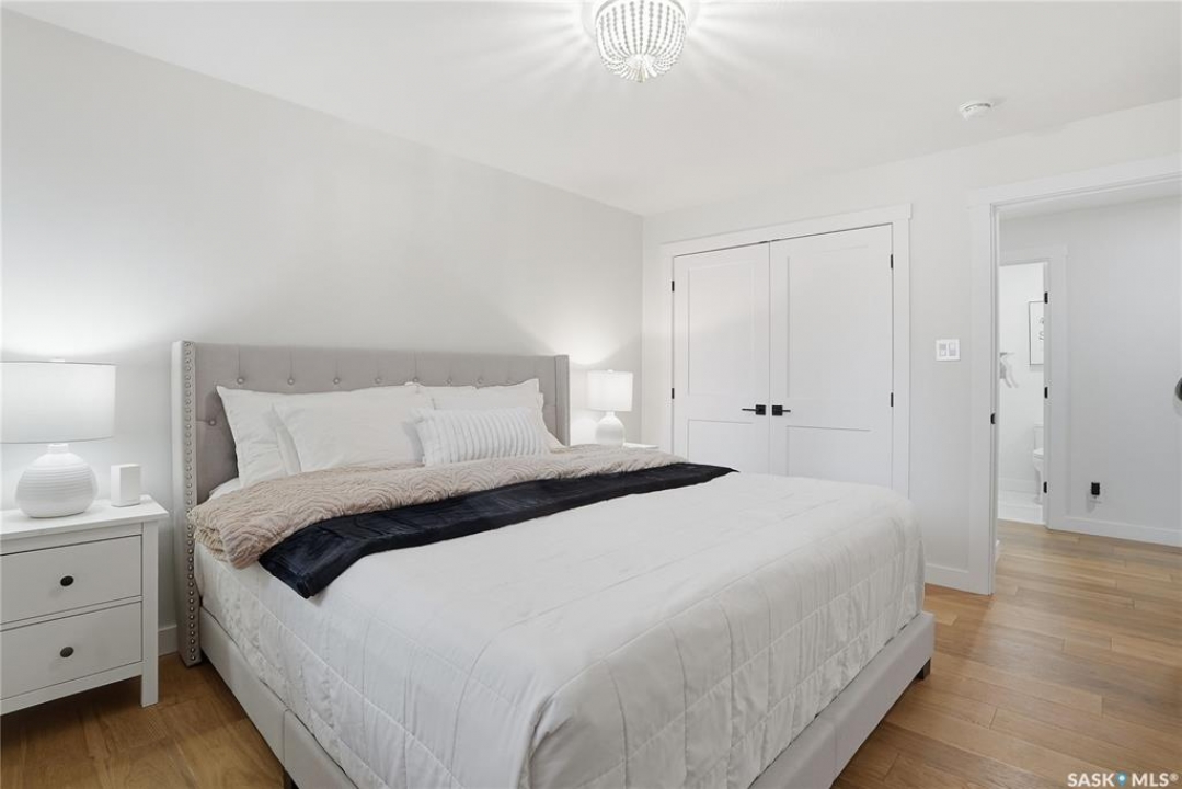 CHECK ON THE VIDEO ABOVE! Timeless style and exceptional craftsmanship define this stunning 2,691 sq. ft. bungalow in prestigious Lawson Heights, offering river views and overlooking Meewasin Trail. Welcome to 115 Whiteswan Drive, where a grand foyer with soaring ceilings creates an inviting first impression. Sun-filled living and dining areas showcase breathtaking views and feature a striking custom warm-toned wood feature wall with a sleek linear gas fireplace, ideal for both everyday living and entertaining. Beautiful new warm-coloured hardwood flooring flows throughout the main floor, enhancing the home's elegant, cohesive design. A private main-floor office with glass doors is perfect for working from home. The executive kitchen impresses with white cabinetry, an expansive island, quartz countertops, and a fully equipped butler's pantry with all new stainless steel appliances, including double refrigerators, double ovens, gas stove, beverage fridges, tall wine cooler, and warming oven—designed for hosting and convenience. The breakfast nook features a south-facing window seat, while the adjoining family room opens to outdoor living. The spacious primary bedroom (19' x 13') offers a large walk-in closet and a spa-like 5-piece ensuite. Two additional well-proportioned bedrooms share a 5-piece bath, along with rare main-floor storage and extra cabinetry. The newly fully developed lower level provides a wet bar, extra bedroom, bright 3-piece bathroom, gym/exercise space, and generous storage. Mechanical upgrades include a high-efficiency furnace and on-demand water heater. Enjoy breathtaking sunrise views from the front of the home, then unwind in a sun-filled, private backyard retreat featuring a privacy wall, stamped concrete patio, stunning brick fireplace, tranquil water fountain, lush landscaping, brand new fencing, and a shed—a truly secluded oasis.