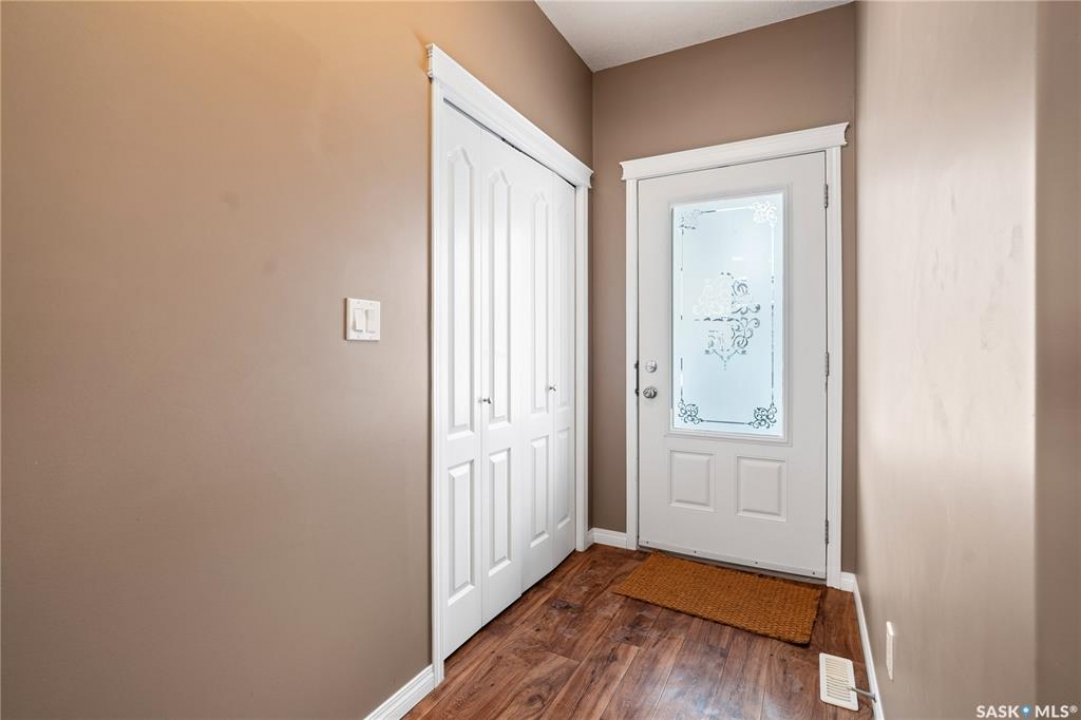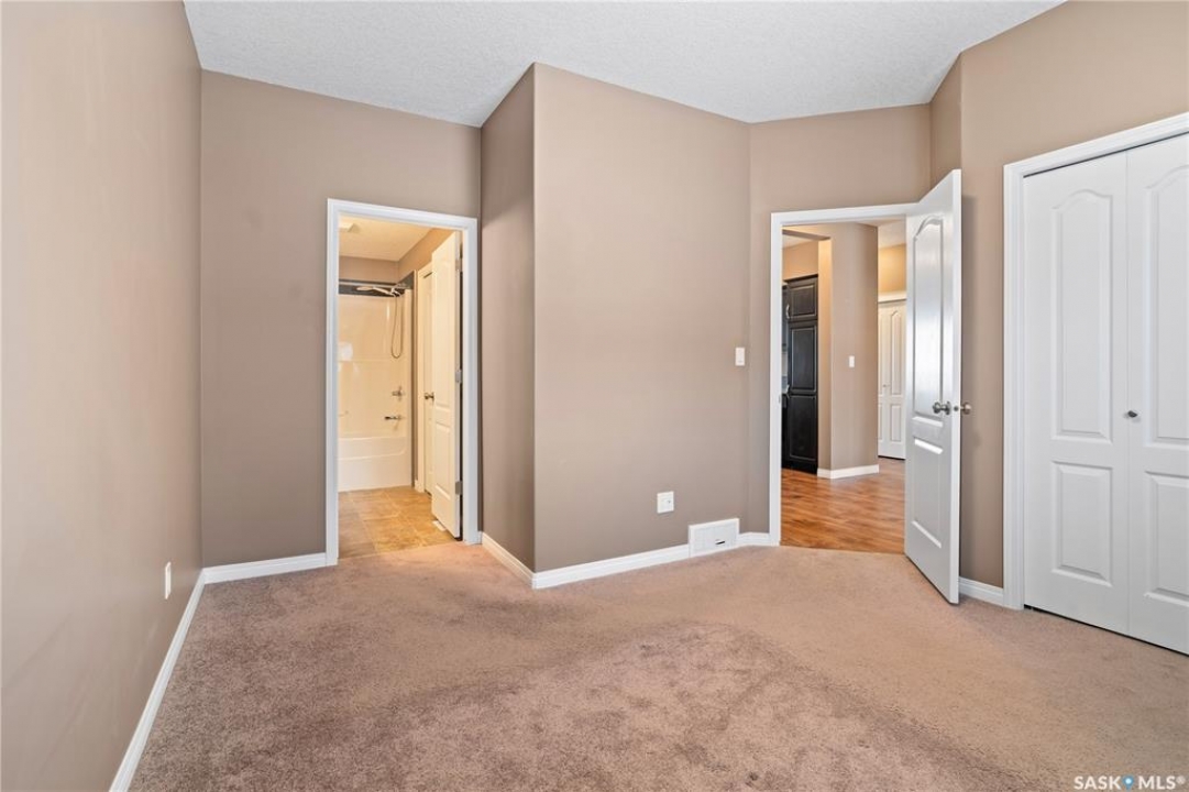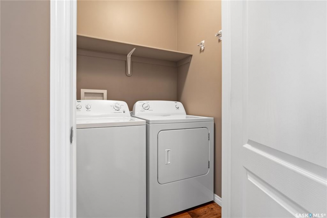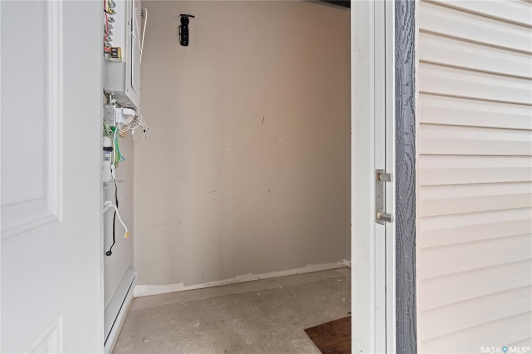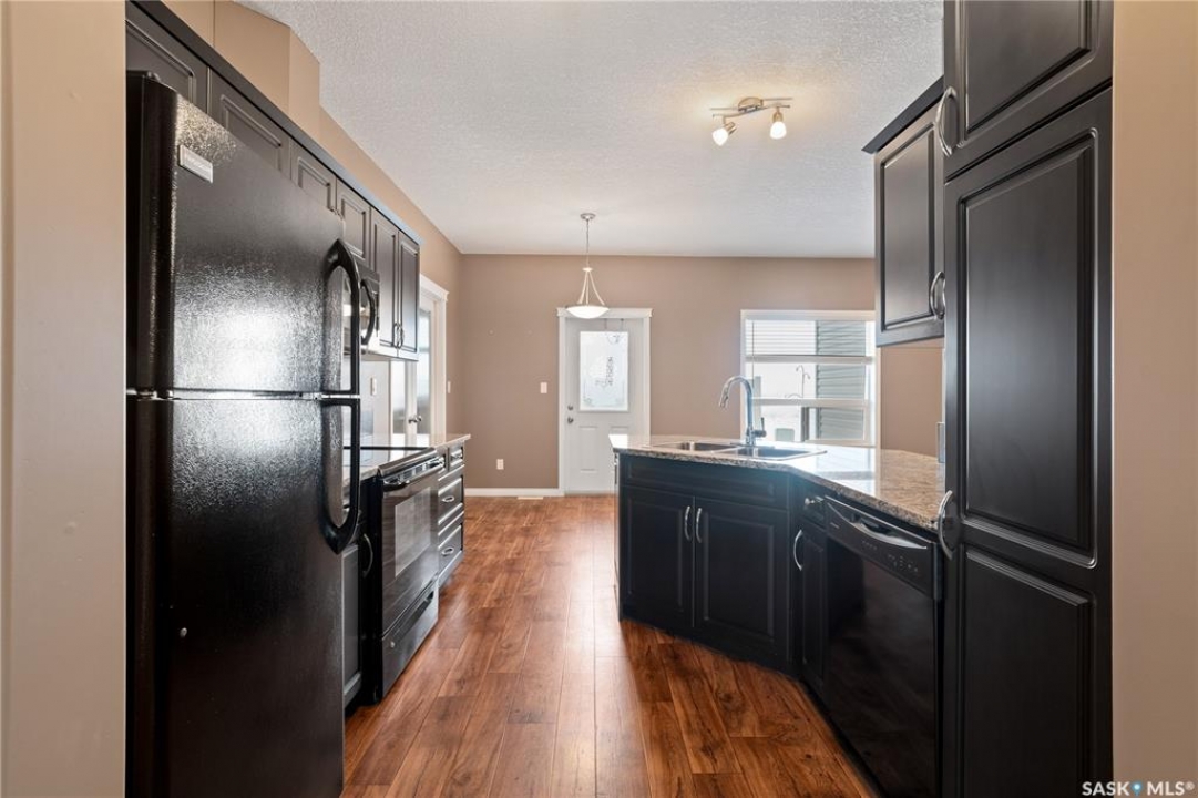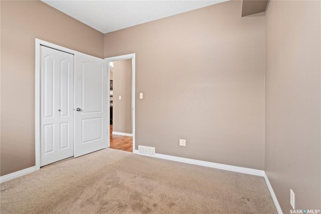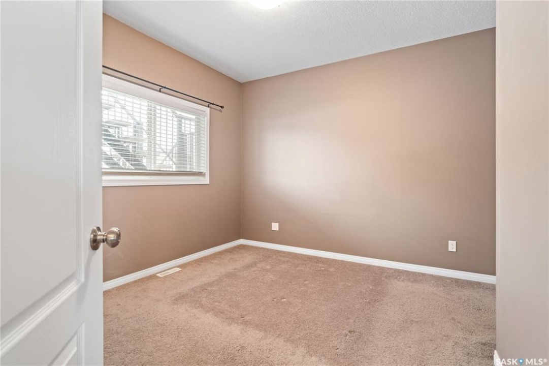 Welcome to this well-maintained, original owner main level condo offering 1,066 sq ft of functional, thoughtfully designed living space. A spacious foyer welcomes you into a bright, open-concept layout that's easy to live in and easy to love. The kitchen is a standout with granite countertops, plenty of cabinetry, and a large island ideal for meal prep, casual dining, and entertaining. The dining area and living room flow seamlessly together, creating a comfortable and inviting space for everyday living. The primary bedroom can accommodate a king-sized suite and features a private 4-piece ensuite. A second bedroom is positioned separately from the primary, while the third bedroom or den is accessed through French doors just off the dining room and offers excellent flexibility as a multi-purpose space that would be ideal for a home office, craftroom, playroom or a 3rd bedroom. A second full 4-piece bathroom adds everyday convenience. One thing you'll truly appreciate about this condo is the amount of storage it offers, from the outdoor storage unit on the patio and the crawlspace off the bedroom/den, to well-planned out interior storage including a large linen closet and entryway closet, there's no shortage of space to keep things organized. Step outside to a spacious patio backing onto green space with no rear neighbours offering a private place to unwind and enjoy Saskatchewan sunsets right outside your back door. The unit includes one electrified parking stall conveniently located out front and is steps from a children's park within the complex. This condo is ideally located minutes from East-end amenities including Costco, Landmark Cinemas, Winners, and more, with nearby bus route access and close proximity to Henry Braun, St. Theresa, and Judge Bryant schools. Whether you're a first-time buyer, downsizer, single professional, or family, this move-in ready condo offers flexibility, comfort, and a layout that truly works!