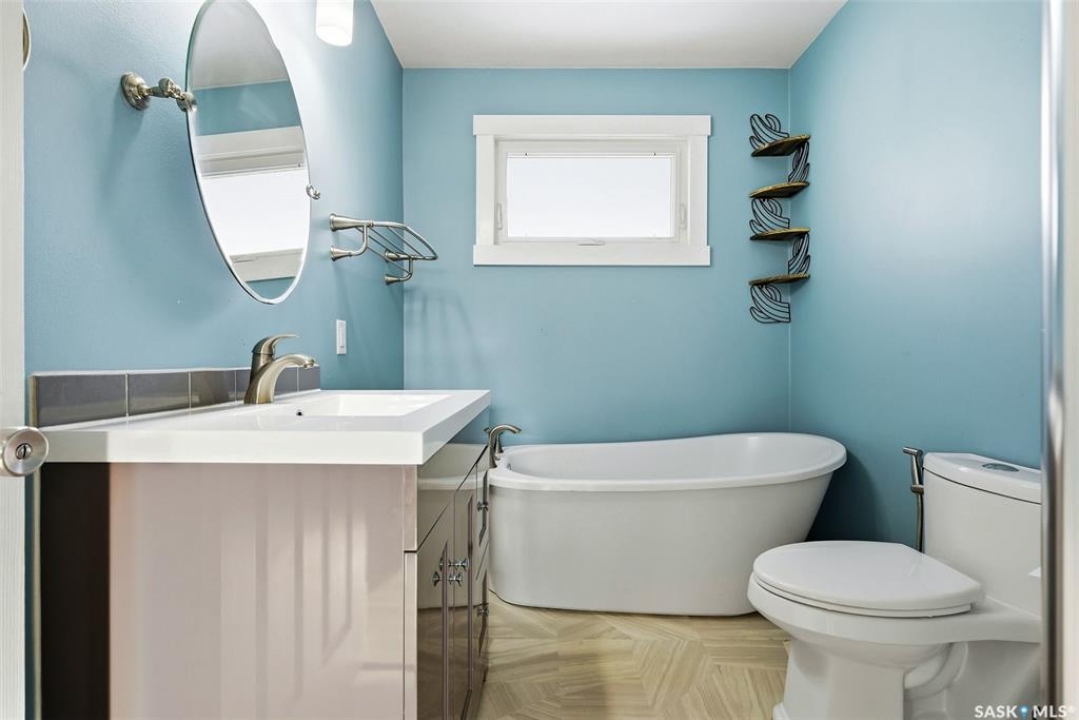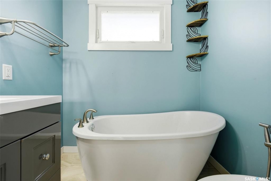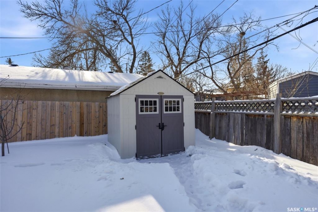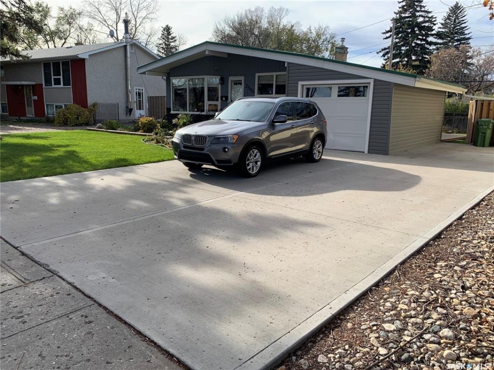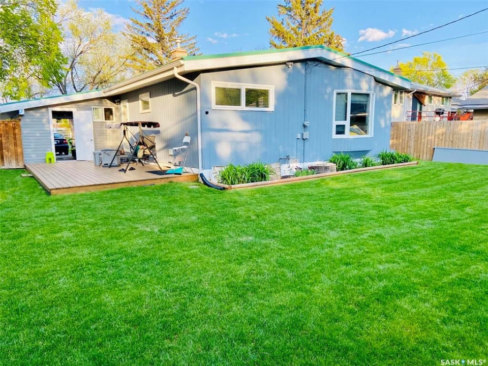 Beautiful 4-bedroom, 2-bathroom bungalow in the heart of Whitmore Park. This well-kept 1,134 sq ft home offers great curb appeal, an attached single garage (converted from a carport in 2024), and a long list of updates completed by both the previous and current owners. Recent improvements include: windows, window treatments, kitchen cabinet doors, backflow valve, front and backyard landscaping, and a concrete driveway (2018). Additional upgrades by the current owner feature LG ThinQ dishwasher, washer, and dryer (2022), stainless steel deep laundry sink, over-the-range microwave (2022), closet shelving (2022), LG ThinQ stove (2024), basement window (2024), roof professionally cleaned (2023), regrading completed in 2024, and the 2024 carport-to-garage conversion. Inside, you are welcomed by a spacious living room highlighted by large windows that fill the space with natural light. The kitchen and dining area are thoughtfully separated from the main living space, offering added privacy. The main floor features hardwood flooring throughout, three generous bedrooms, and a 4-piece bathroom complete with a deep soaker tub. The primary bedroom boasts a large window and excellent natural light. The professionally developed full basement adds even more versatility, offering an additional bedroom, a recreation room, a bonus room, and a 3-piece bathroom—ideal for extended family, guests, or extra living space. Located in the highly desired neighbourhood of Whitmore Park, this home is close to multiple schools, the University of Regina, and a wide range of south-end amenities including restaurants, Southland Mall, gas stations, and grocery options. The concrete double driveway provides ample parking, while the lovely fenced backyard and side deck offer a perfect space for gardening, relaxing, and family gatherings. A wonderful opportunity in a fantastic location. A must-see.