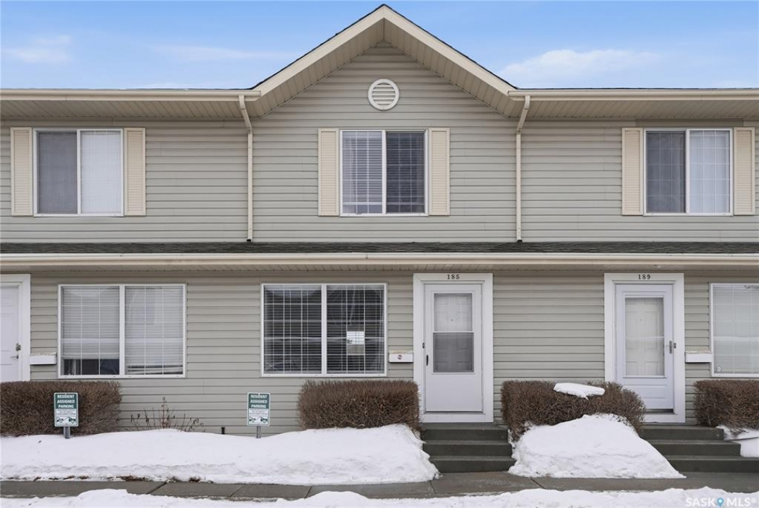 Welcome to unit 185 – 815 Kristjanson Road. This 952 sq ft townhouse is located in Silverspring – offering a great location close to the U of S, elementary schools, and many amenities nearby. Main floor consists of your living room with large front facing window, kitchen/dining area with bright white cabinets, and appliances including dishwasher, stove, hood fan, and fridge. Sliding glass door gives you access to your backyard patio, offering privacy and grass area. 2-pc bath completes the main floor. Coming upstairs you will find two spacious bedroom – with carpet flooring, and a 4-pc bath. Basement is open for development and contains your laundry + utility area. Unit comes with 1 parking spot located right in front of unit, as well additional spots can be rented from Property Management Firm at an additional $50/month. Great opportunity home!