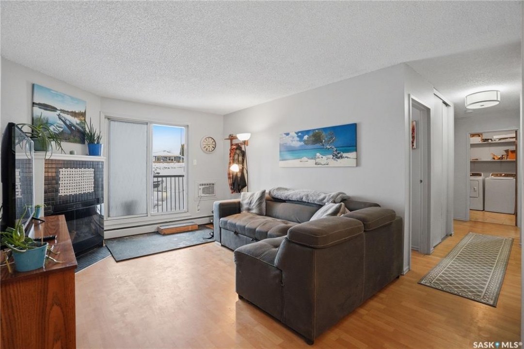 Welcome home to this sunny, ground-floor end unit condo offering 3 bedrooms and 1 bath, designed for easy, comfortable living. Natural light fills the space, highlighting a renovated kitchen with updated tile flooring and backsplash, and a renovated bathroom with modern tile, a contemporary vanity, and a tiled tub surround. The cozy electric fireplace creates a welcoming atmosphere—perfect for relaxing at the end of the day. In-unit laundry adds everyday convenience. Step outside to your own private balcony, an ideal spot for morning coffee or fresh air. You'll also appreciate the attached storage shed, providing extra space for bikes, seasonal items, and outdoor gear. Enjoy the simplicity of ground-level living with no stairs and easy access for groceries and daily errands. Located in the Dundonald neighbourhood and situated on a bus route, this well-managed complex offers peace of mind with a strong reserve fund, while heat and water are included in the condo fees for predictable monthly costs. Close to shopping, schools, and everyday amenities, this home also includes an electrified parking stall. Bright, move-in ready, and easy to love—this is a place that truly feels like home.