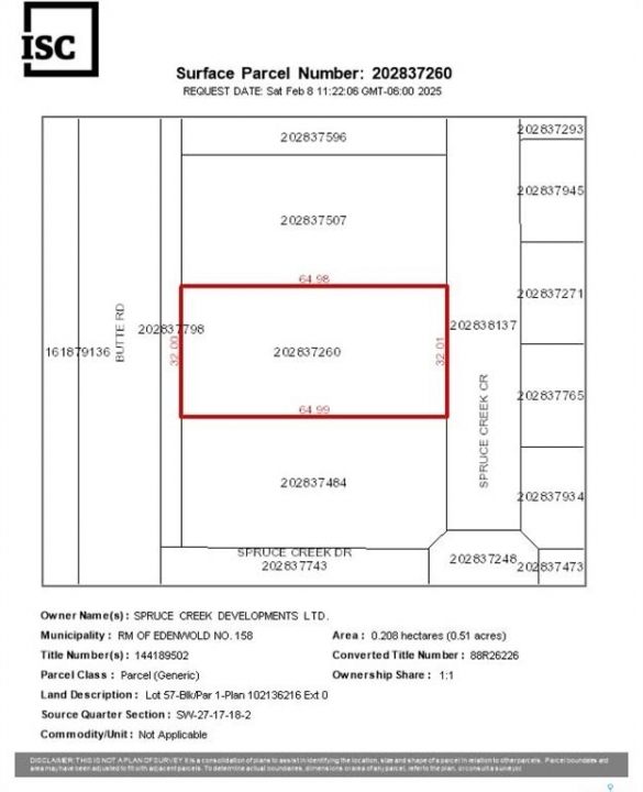 Spruce Creek is one of the most beautiful luxury developments, just outside the city. With lots ranging from 0.38 to 0.64 acres, there's plenty of space to develop whatever you and your builder can dream up. Just 7 mins to the East side of Regina, you get all the benefits of living away from the hustle, but with a short commute to all that the city has to offer. Spruce Creek has concrete (yes, concrete) roads and a community lake, creating a very unique and beautiful development. Lots can be purchased personally or by your builder. Some building requirements exist. There are still several lots remaining in this phase, check listings for additional options. Future phases include additional lots to the East including an additional lake. All prices are GST applicable.