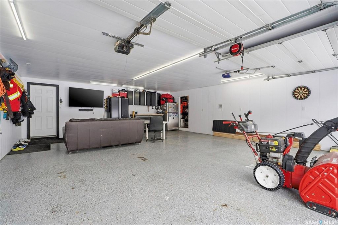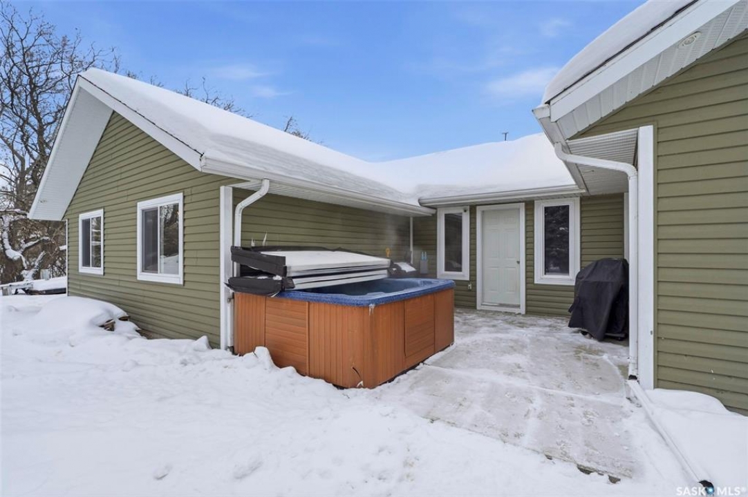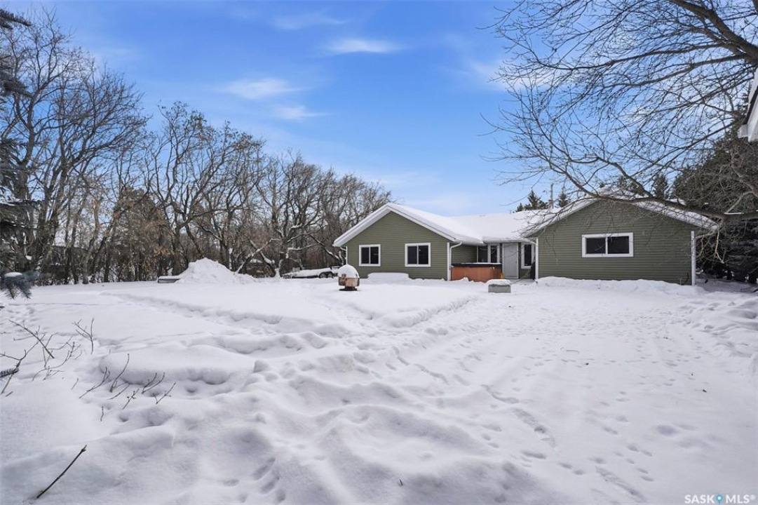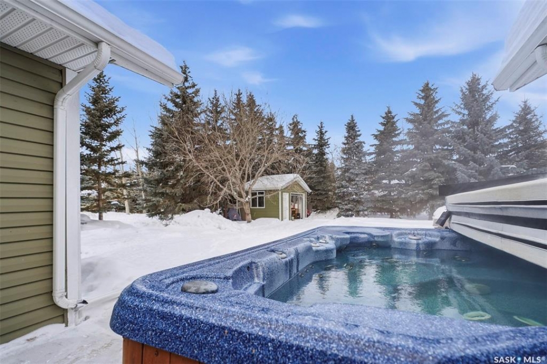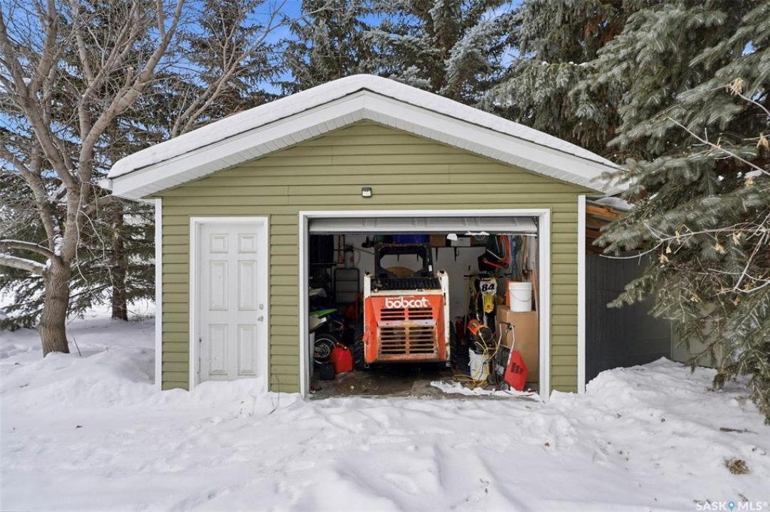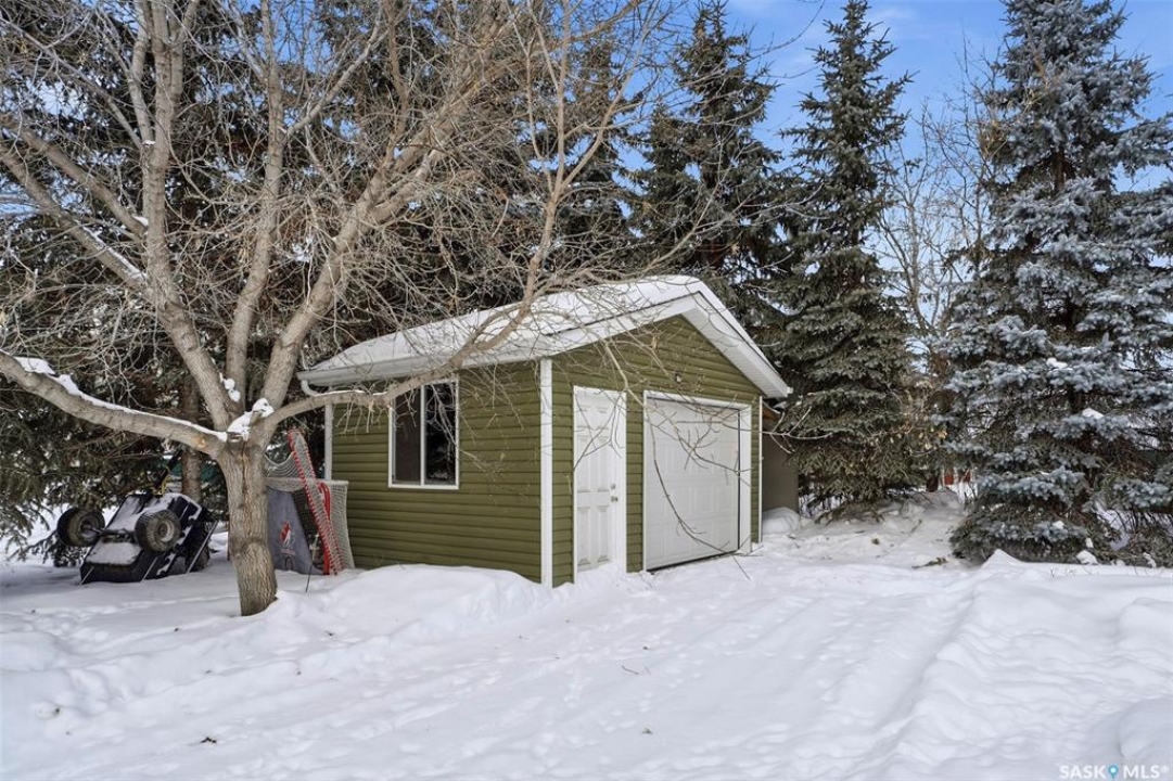Welcome to this stunning show-stopper in the charming community of Hepburn—just 30 minutes from Saskatoon! Situated on a generous 100x150 lot, this spacious 4-bedroom home will impress from the moment you step inside. The gorgeous oversized kitchen, updated in 2020 with quartz countertops, is an immediate standout and sets the tone for the many upgrades throughout the home. One of the biggest highlights is the fully upgraded double attached garage (2024), featuring epoxy flooring, in-floor radiant heat, vinyl panelling, LED lighting, and an additional storage/workshop area—truly a dream space. And yes, there's more: the backyard also boasts an oversized insulated shed with concrete flooring and plywood walls. This home is exceptionally well equipped with new siding (2018), 30-year shingles (2019), eaves and soffits (2022), windows (2018), kitchen appliances (2023), a built-in electric fireplace, hot tub, three exterior livestream security cameras with alarms, reverse osmosis system and more. Pride of ownership shines both inside and out. Everything is conveniently located on one level, with a partial basement housing the boiler room and extra storage. Relax in your hot tub while enjoying the beautifully tree-lined backyard, complete with ample space for RV parking. Call today to book your private viewing of this incredible home—and welcome yourself to Hepburn, where friends and family meet.