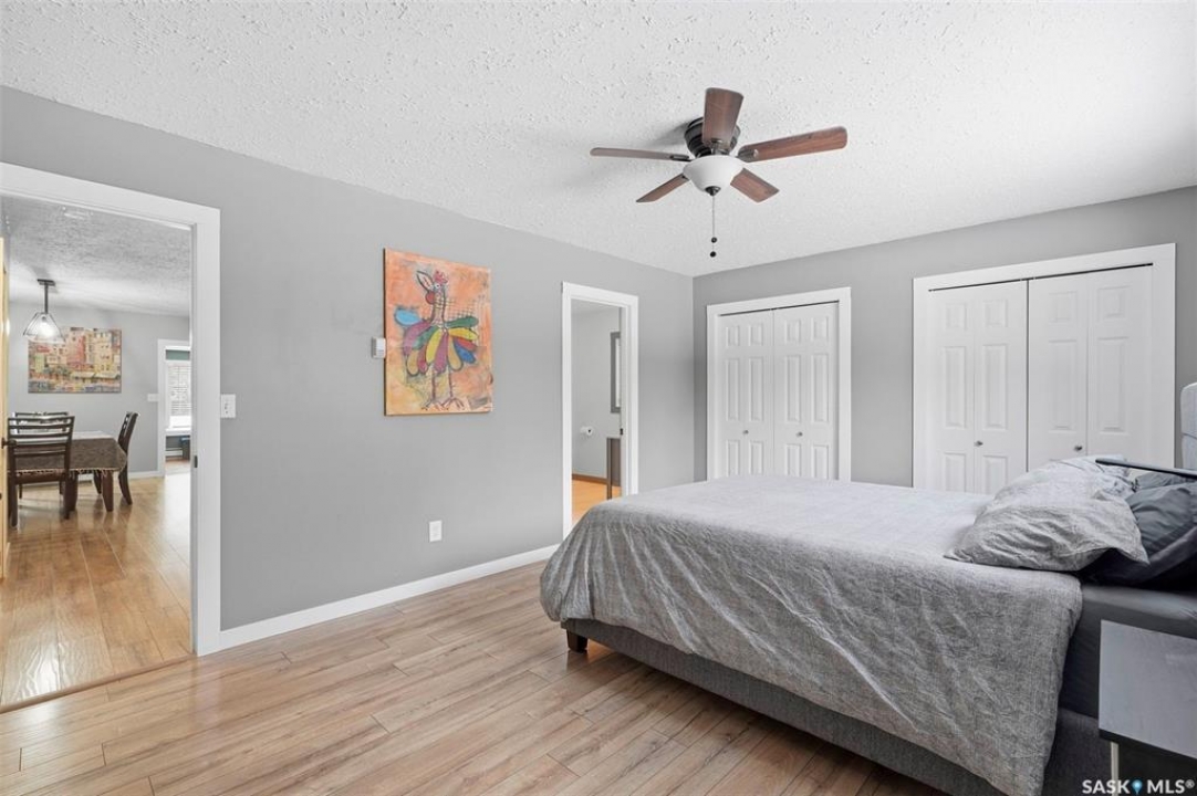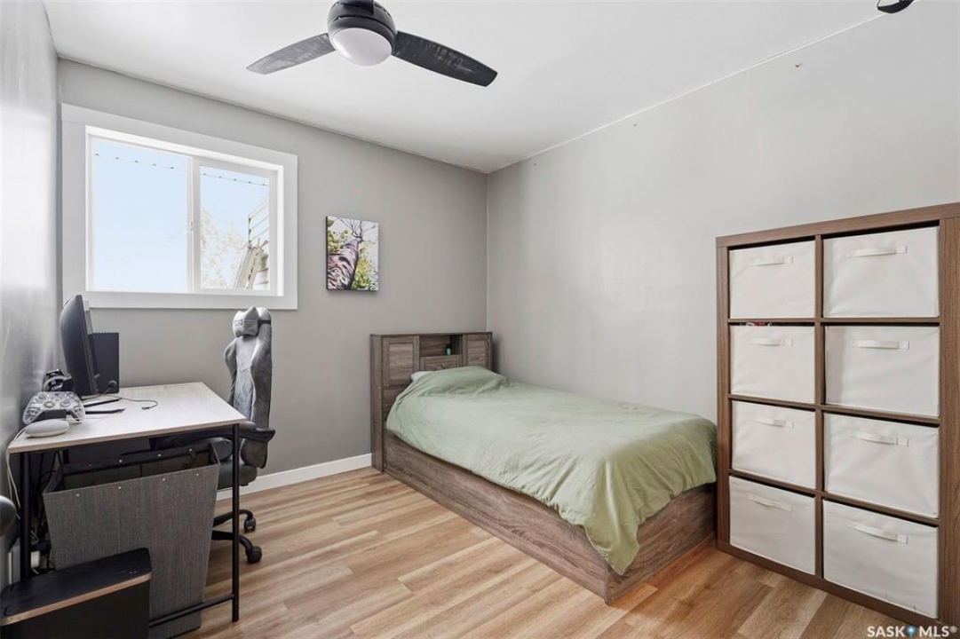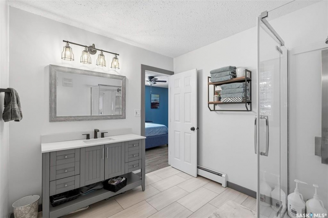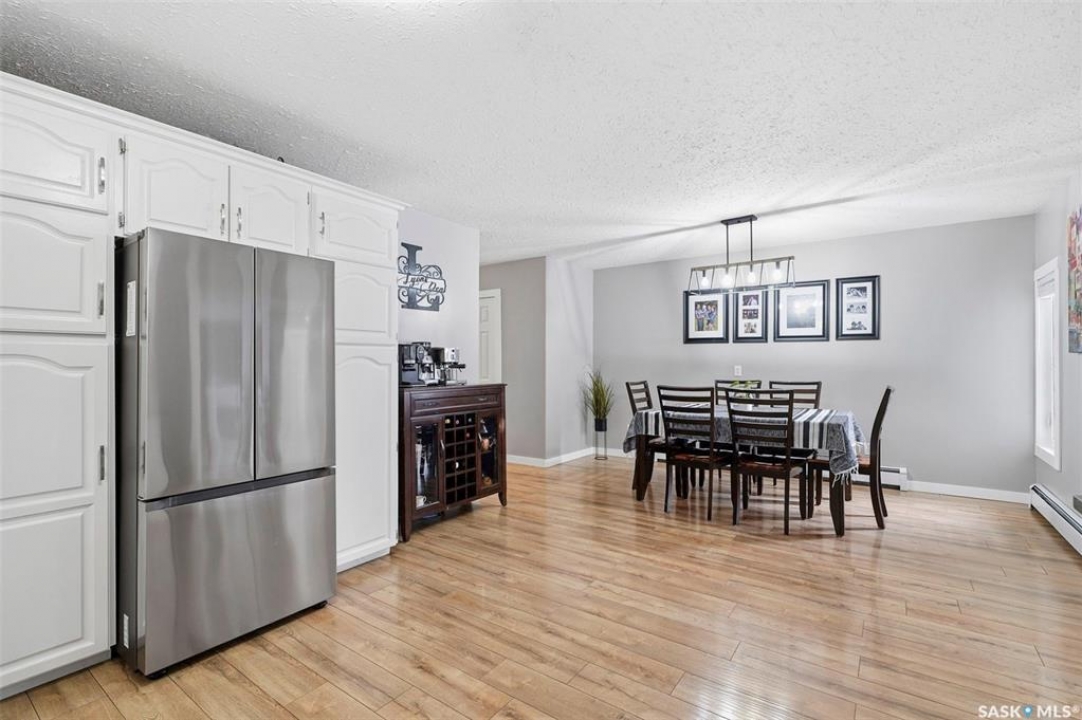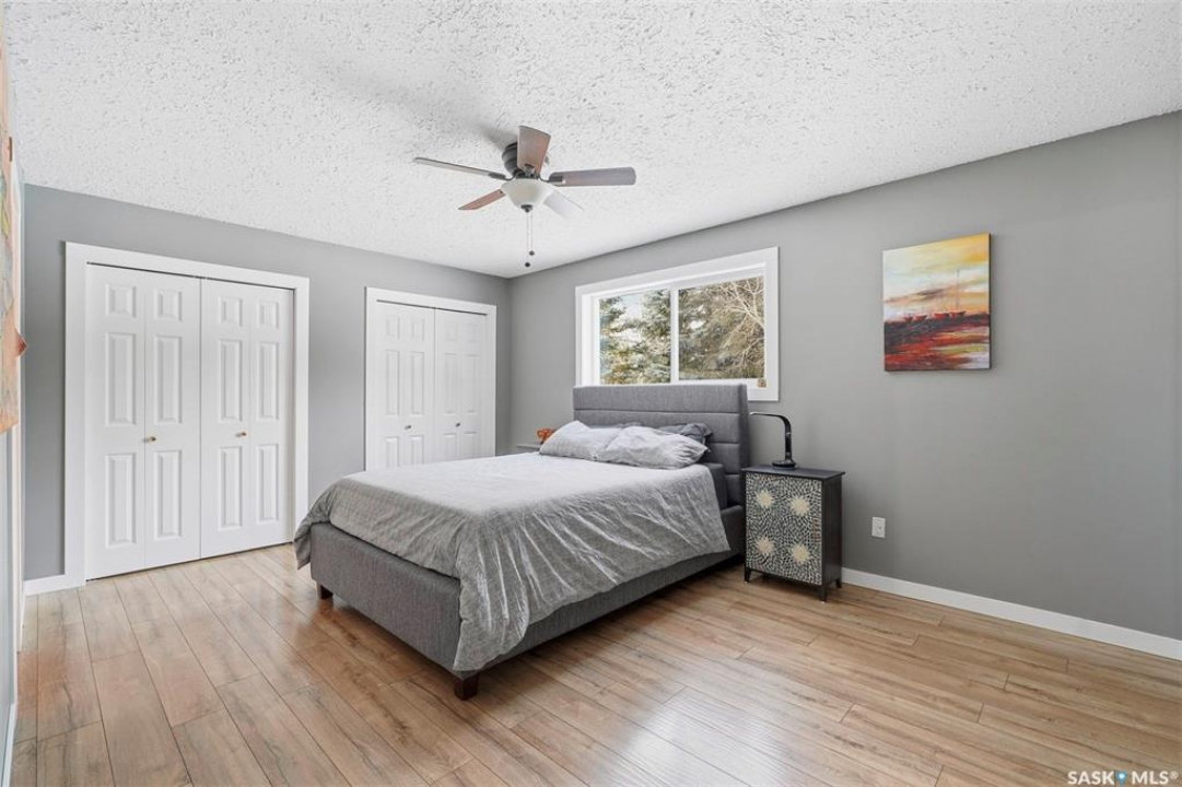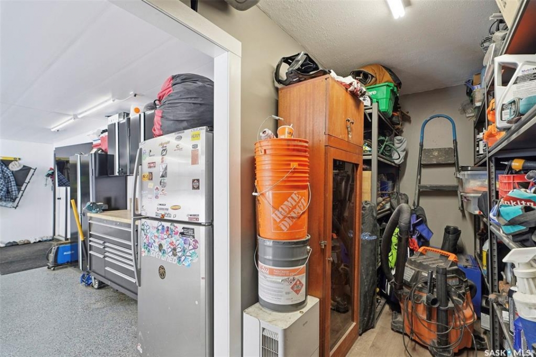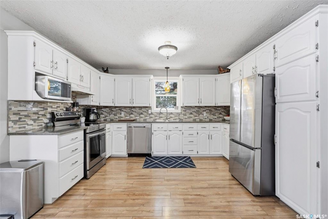 Welcome to this stunning show-stopper in the charming community of Hepburn—just 30 minutes from Saskatoon! Situated on a generous 100x150 lot, this spacious 4-bedroom home will impress from the moment you step inside. The gorgeous oversized kitchen, updated in 2020 with quartz countertops, is an immediate standout and sets the tone for the many upgrades throughout the home. One of the biggest highlights is the fully upgraded double attached garage (2024), featuring epoxy flooring, in-floor radiant heat, vinyl panelling, LED lighting, and an additional storage/workshop area—truly a dream space. And yes, there's more: the backyard also boasts an oversized insulated shed with concrete flooring and plywood walls. This home is exceptionally well equipped with new siding (2018), 30-year shingles (2019), eaves and soffits (2022), windows (2018), kitchen appliances (2023), a built-in electric fireplace, hot tub, three exterior livestream security cameras with alarms, reverse osmosis system and more. Pride of ownership shines both inside and out. Everything is conveniently located on one level, with a partial basement housing the boiler room and extra storage. Relax in your hot tub while enjoying the beautifully tree-lined backyard, complete with ample space for RV parking. Call today to book your private viewing of this incredible home—and welcome yourself to Hepburn, where friends and family meet.