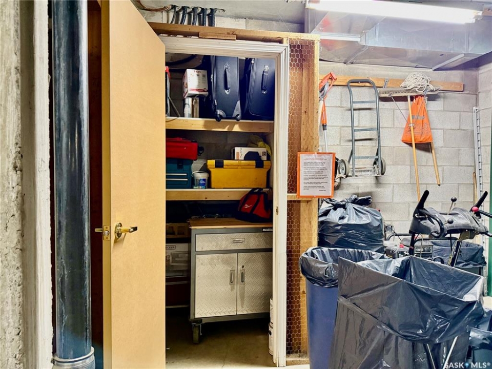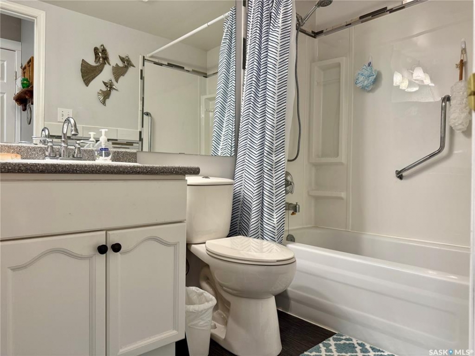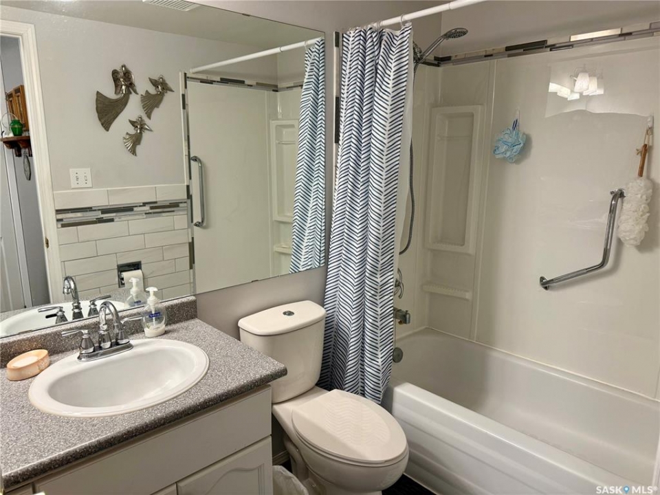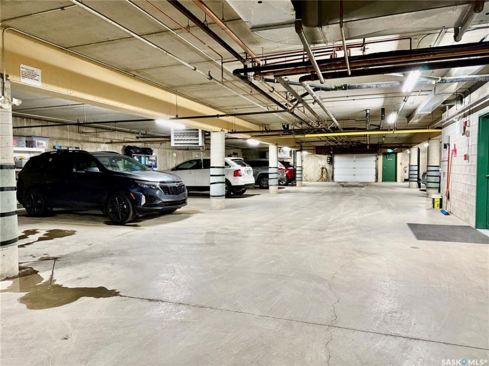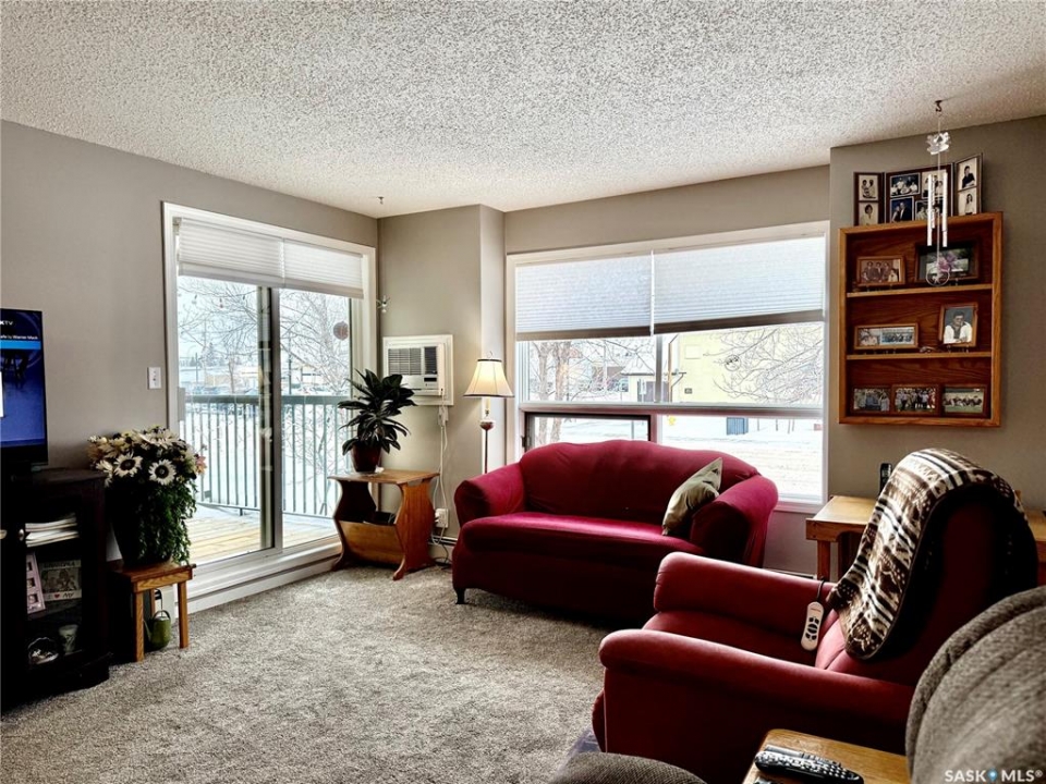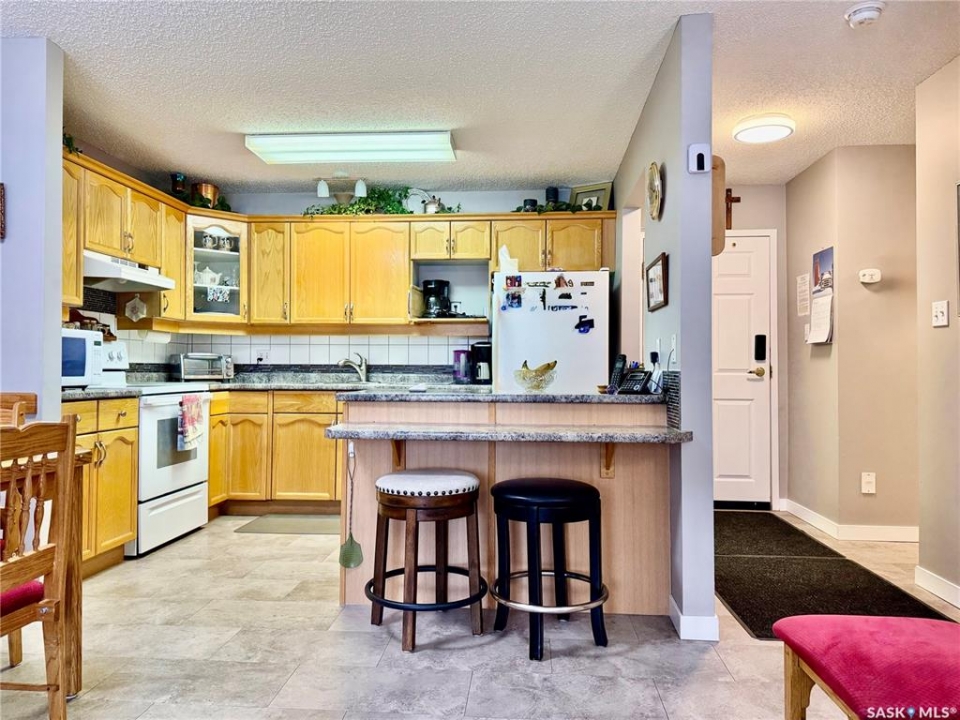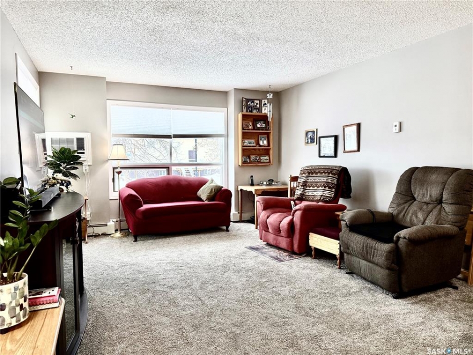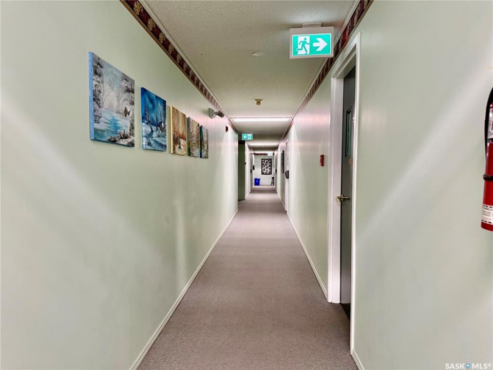 Enjoy beautiful sunsets from this well-appointed 2-bedroom condo in Village Green, conveniently located close to downtown Humboldt. A welcoming entry opens into a bright, open-concept kitchen & dining area designed for both everyday living and entertaining. The kitchen features oak cabinetry, updated countertops, & a functional island complete with eating counter and built-in storage drawers. The adjoining dining area flows seamlessly into the living room, creating an inviting and comfortable layout. There are multiple hallway closets for storage. The living room is filled with natural light from large windows & patio doors that lead out to the balcony—an ideal spot to enjoy evening sunsets or relax with your morning coffee. Both bedrooms are well sized, with the primary bedroom offering a walk-in closet. A 4-piece bathroom with tub/shower features newer flooring and a clean, modern feel. In-suite laundry adds everyday convenience and includes shelving. This unit includes one heated underground garage parking stall with a storage cabinet, as well as an additional parkade storage locker. Updates include: kitchen & bathroom countertops, fridge, and select light fixtures in 2013. Kitchen, hallway, and bathroom flooring were updated approx. 3 years ago, while the living room carpet is approximately 2 years old. The stove is about 7 years old, the built-in dishwasher approx. 2-3 years old, and several rooms have been painted over the past few years. This well-maintained building boasts a variety of amenities, including a comfortable common room for socializing & relaxing, a guest suite, elevator access, wheelchair accessibility, & secure heated underground parking. A fantastic opportunity for low-maintenance condo living in a convenient location—call today to arrange your private viewing. Form 917 - Direction Regarding Offer Presentation - There shall be no presentation of offers as per the Seller's instruction until 1:00 p.m. on mm 02 dd 09 yyyy 2026.