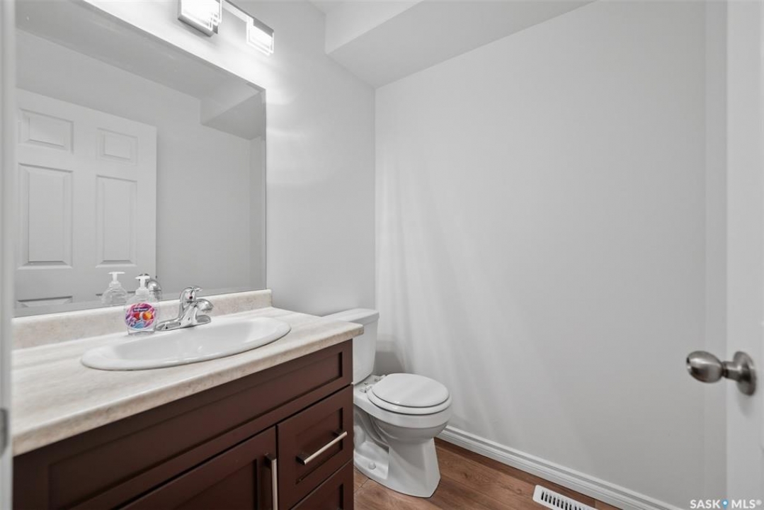 Welcome to 446 Geary Crescent, a well-maintained and move-in ready two-storey home located in the heart of Hampton Village. Offering 1,352 sq. ft. of thoughtfully designed living space, this home is ideal for families, first-time buyers, or anyone seeking a blend of comfort and functionality The main floor features a bright, open layout with fresh interior paint and new vinyl plank flooring, creating a clean and modern feel throughout. The kitchen is both stylish and practical, complete with a tile backsplash, ample cabinetry, stainless steel appliances, and a pantry—perfect for everyday living and entertaining alike. A convenient main-floor 2 piece bathroom completes this level. Upstairs, you'll find three generously sized bedrooms, including a primary suite with a 4-piece ensuite, plus an additional full bathroom for family or guests. The layout is functional and well suited for busy households. Outside, enjoy your morning coffee on the covered front deck, while the fully insulated and drywalled detached garage adds year-round convenience and excellent storage. The yard offers space to relax, garden, or entertain, all within a friendly, established neighbourhood close to parks, schools, and amenities. With recent upgrades, a great floor plan, and a sought-after location, this home is truly move-in ready. A fantastic opportunity to settle into Hampton Village—don't miss it!