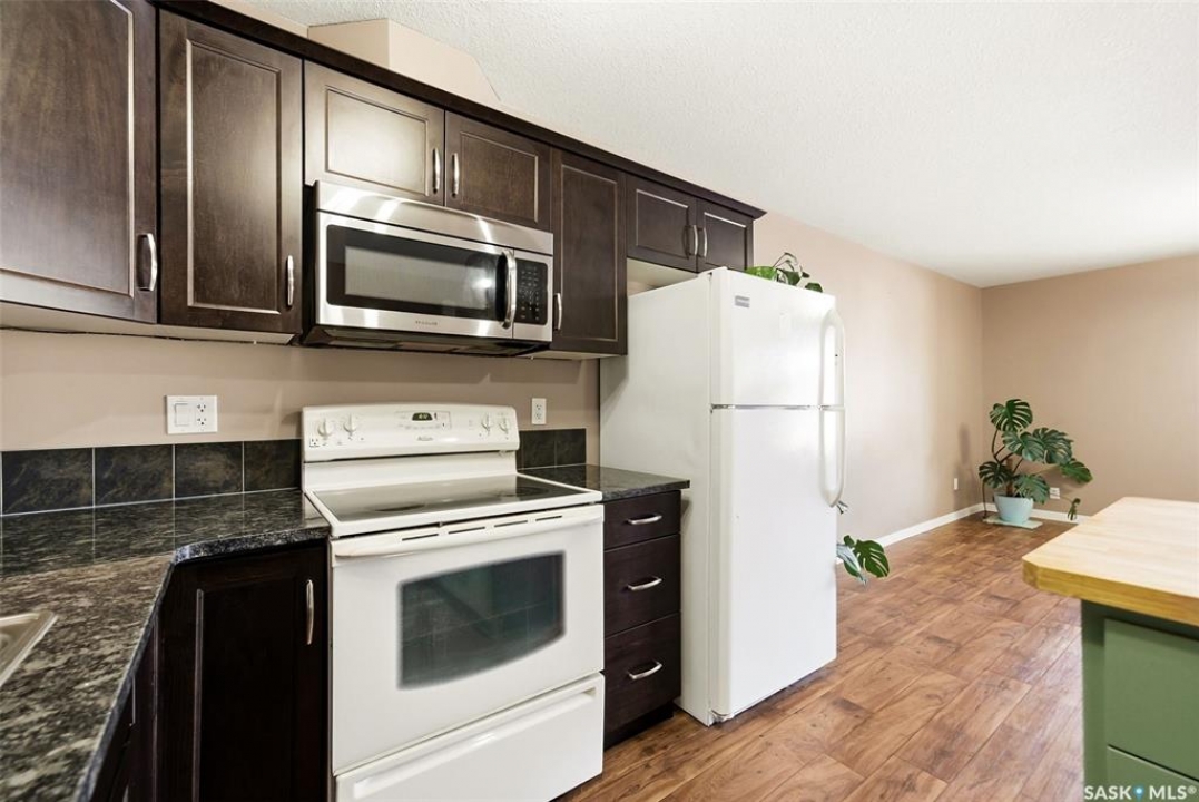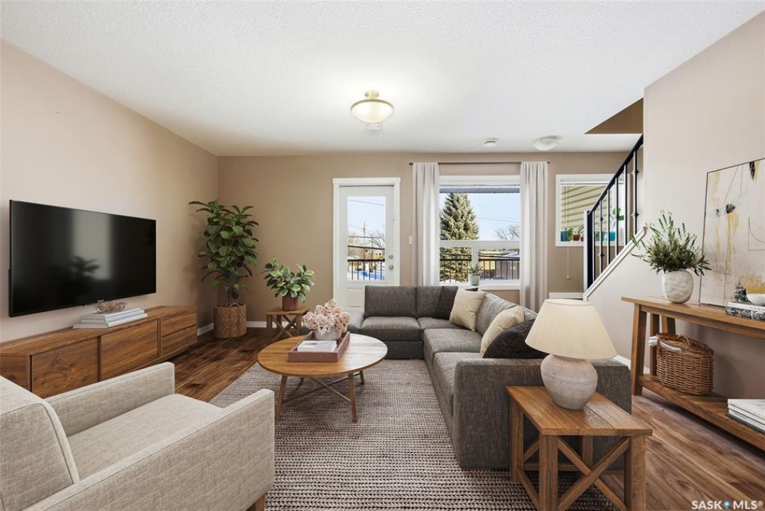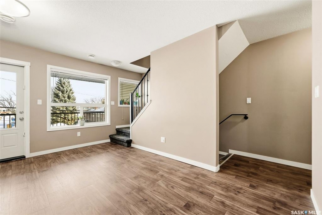 Welcome to #110-1210 Empress Street! This well-appointed 2-bedroom, 3-bathroom townhouse-style condo located in the heart of a quiet, established Rosemont neighbourhood. Built in 2013, this home offers a functional multi-level layout with thoughtful finishes throughout. The main floor features mid-brown hardwood laminate flooring, large windows that fill the space with natural light, a convenient 2-piece bathroom, and a well-designed kitchen with stainless steel appliances, granite countertops, and rich espresso cabinetry. From the kitchen, step out to your private patio—perfect for summer evenings or morning coffee. Upstairs, the primary bedroom includes a spacious walk-in closet and a 4-piece ensuite. The second bedroom offers its own private balcony, while an additional 4-piece bathroom, laundry closet with stackable washer and dryer, and linen storage complete the upper level. This unit comes with two electrified parking stalls directly in front of the door and is part of a well-maintained complex featuring a play structure. Condo fees include: snow removal, lawn care, building maintenance, garbage and recycling, electricity for parking stalls, and reserve fund contributions. Pets are permitted with restrictions on size and number. Ideally located just two blocks from No Frills and Shoppers Drug Mart, half a block from Martin Collegiate, and within walking distance of Luther High School, Rosemont and Walker Elementary schools. Enjoy nearby access to A.E. Wilson Park and scenic walking and biking paths, with quick connections to Lewvan Drive, Harbour Landing, downtown Regina, and Rochdale Boulevard. A fantastic opportunity to enjoy low-maintenance living in a family-friendly, well-connected community.