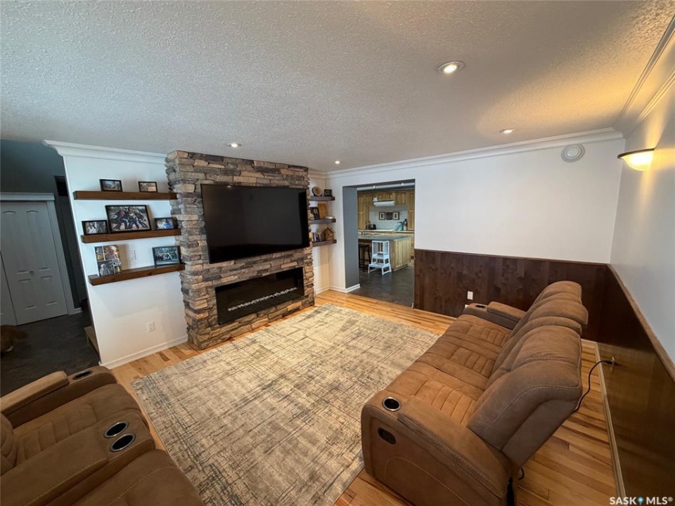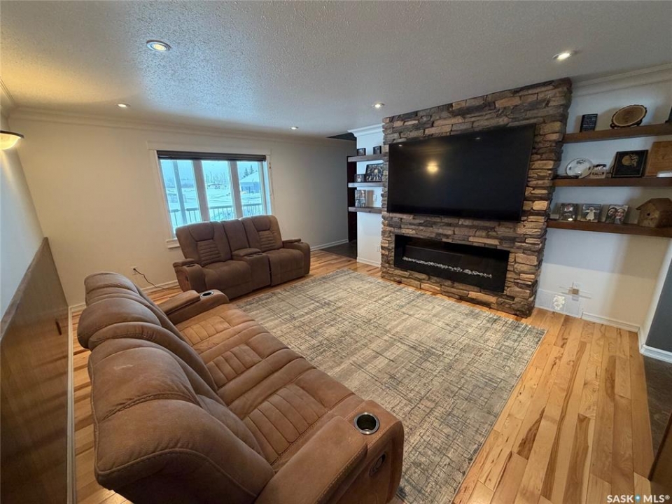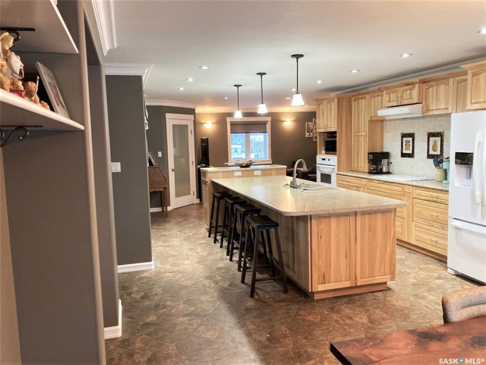 Welcome to 501 Silver Place in the welcoming community of Hudson Bay, SK. Built in 2013, this expansive home offers over 4,000 sq ft of living space with solid 2x8 construction, and blueprints are available upon request. The grand front entrance opens to a striking calico-hickory staircase that sets the tone for the rest of the home. With five bedrooms—four on the upper level, one on the main floor, and another in the lower level—there's room for large families or guests, and the upper-level laundry adds everyday convenience. The home features four bathrooms, including a beautiful ensuite with a walk-in shower, along with three family rooms that provide plenty of space for gathering, relaxing, or entertaining. The kitchen is a standout with its calico-hickory cabinetry, over 12-foot island, and seamless flow into the dining and living areas. A covered semi wrap-around deck and a bright four-season sunroom on the south side extend your living space year-round, offering a cozy spot for morning coffee, extra seating, or practical storage. Completing the property is a detached two-car garage with 10-foot walls. This home truly offers space, comfort, and thoughtful design throughout. Contact us today to book your viewing.
