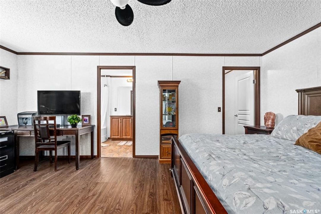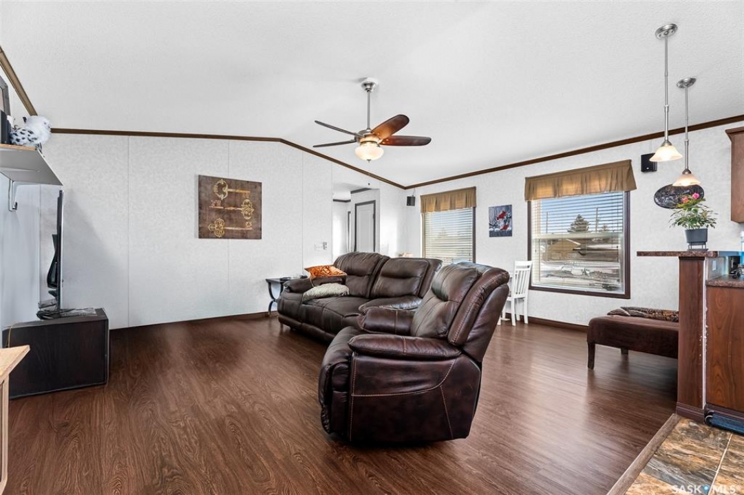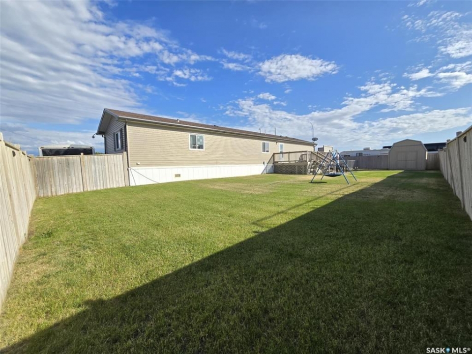 Looking for modern and easy living in the bustling town of Chamberlain? This 2012 modular home boasts 3 beds / 2 baths and more than 1,500 sq.ft.. This home is situated on a huge corner lot which is 3 separate lots (78' x 130') giving you lots of space for both parking and a large backyard! Coming inside you are greeted by a nice size foyer with a coat closet. You then enter the spacious living space - complete with vaulted ceilings! The open concept living, dining and kitchen are sure to be the heart of the home! The kitchen boasts lots of cabinets / counter space, a walk-in pantry, an island and a stainless steel appliance package. Off the kitchen we find a mudroom complete with laundry setup and access to your backyard. At one end of the home we find a massive primary suite with a walk-in closet and a huge 4 piece ensuite boasting a huge corner soaker tub! This primary suite is hard to compare! At the other end of the home we have 2 more good sized bedrooms along with a 4 piece bathroom. The backyard is fully fenced, features a deck and patio - the perfect place for pets and kids to hang out! The bustling town of Chamberlain is located right along Highway #11 between Saskatoon and Regina - located about 30 minutes from Moose Jaw and 50 minutes from Regina. Reach out today to book a showing!