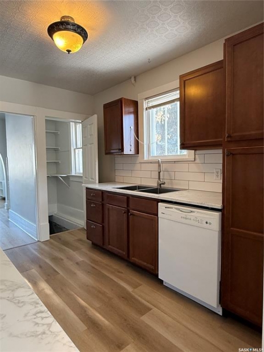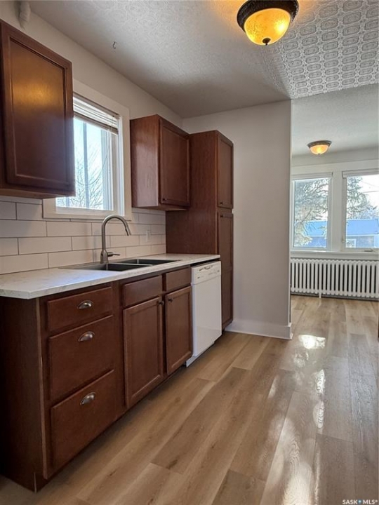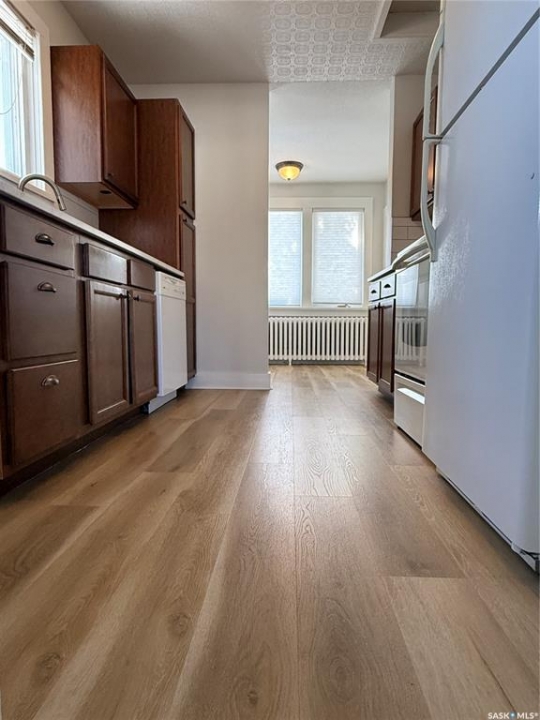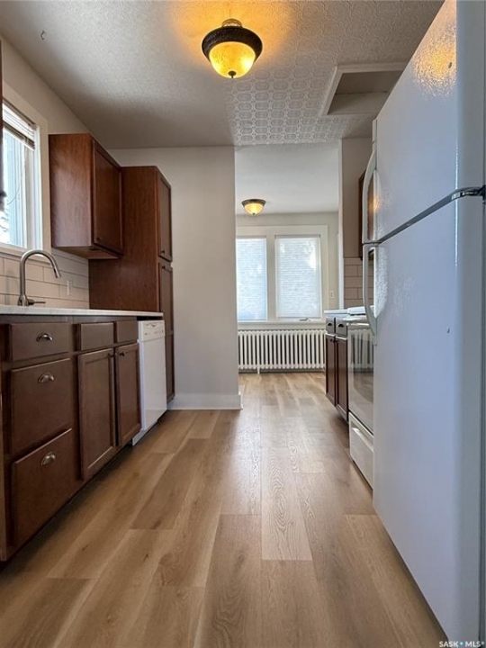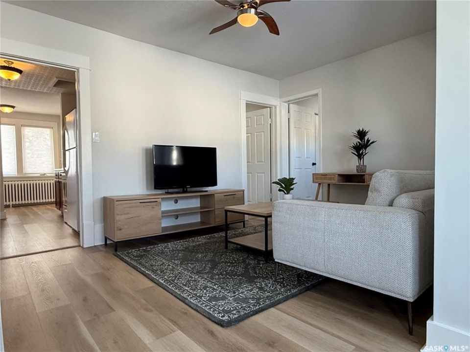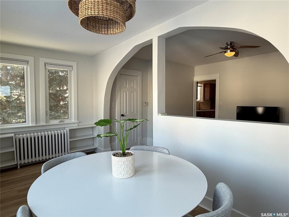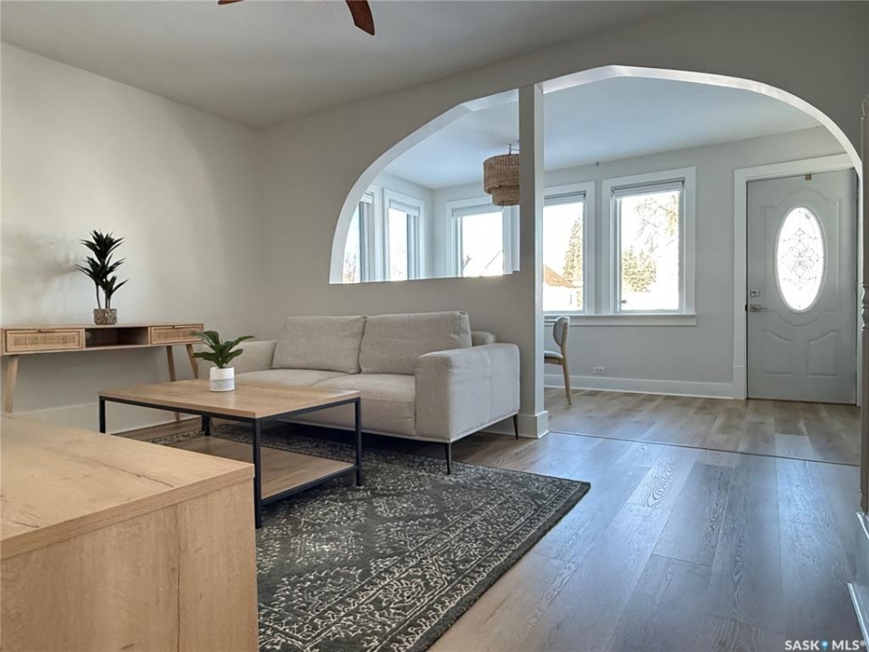 If you've got someone in your life looking for their first home—or maybe thinking it's time to downsize into something a little easier to manage—this charming bungalow is one you'll want them to see. Built in 1926 and thoughtfully updated, this 2-bedroom home blends character with modern touches and is truly move-in ready. You're welcomed in through a spacious entry that makes day-to-day life just a little easier, whether it's boots in winter or groceries coming through the door. The kitchen has been nicely refreshed with updated countertops, sink and faucet, plus a clean tile backsplash that gives the space a modern feel. Vinyl plank flooring runs through the main floor, tying the living room and dining area together, and updated blinds, along with a coat of neutral paint, keep everything feeling bright and inviting. The bathroom renovation is another big plus, featuring a refinished tub with tile surround, updated vanity, new lighting, and updated flooring—clean, modern, and ready to enjoy. At 798 sq ft, this home makes great use of space, offering two comfortable bedrooms and a cozy main living area without extra upkeep. Hot water heat provides steady comfort, most windows have been upgraded to PVC (with just two originals remaining), and the home is serviced by a 100-amp panel. Downstairs, the basement offers excellent storage space, while outside, the corner lot gives you a bit of extra breathing room along with a single detached 10 x 24 garage. And being close to parks means it's easy to get outside and enjoy the neighbourhood. Appliances and the window air conditioning unit are included, and the existing furnishings, as shown, can be negotiated if a buyer is looking for an easy, move-in-ready setup. All in all, it's the kind of home that just feels comfortable the minute you walk in—an easy place to picture starting out or settling into your next chapter.