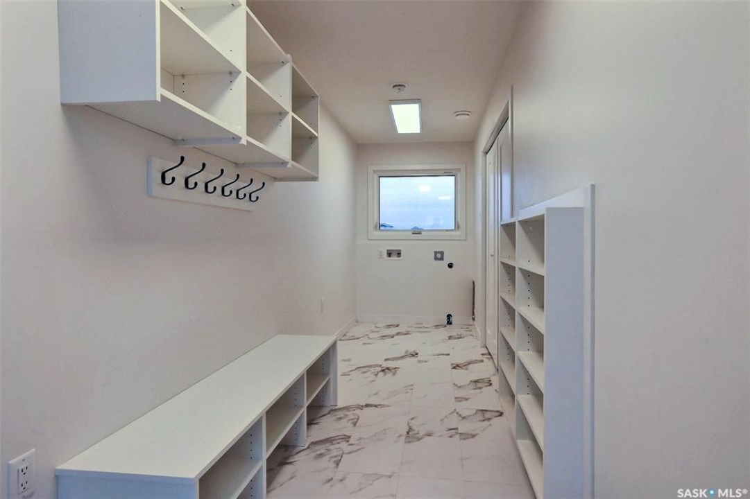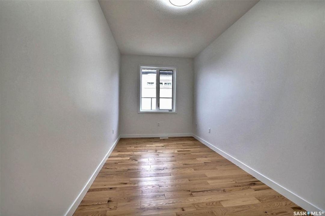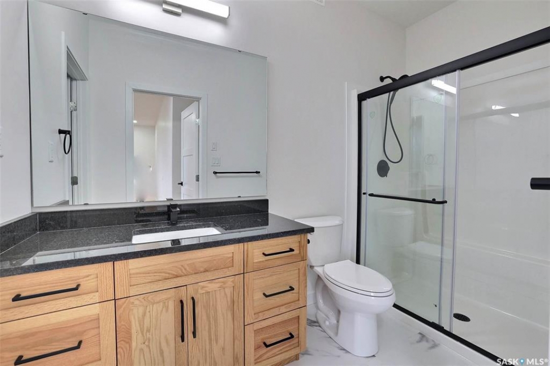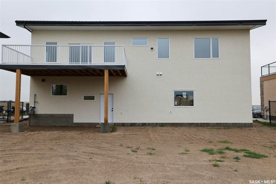 Custom built contemporary home on fantastic 15,000+ sq ft lot both fronting and backing open greenspace. Unique design speaks to a modern esthetic with circular driveway that would accommodate RV parking and many extra vehicles. Main floor houses a massive 30x40 garage/shop that is insulated/heated and wired 220 with a handy 1/2 bath with shop sink, hot and cold water and main floor drain. Perfect for the hobbyist or car enthusiast with two overheard doors and access to the rear yard. Huge entrance doubles as a mudroom with bench seating, closet, storage and laundry room. Up the custom oak hardwood staircase to extremely spacious open loft like layout with beautiful view of large rear yard and greenspace beyond. Gorgeous oak hardwood floors throughout the main living area with fireplace feature wall and an abundance of windows and sliding doors to upper deck. Oversized kitchen is open to living area with large sit up island with loads of cabinet and stone counter space, tiled backsplash and pantry with barn door. Large primary suite with walk-in closet and modern 3pc ensuite including oversized shower. 2 additional bedrooms and main bath. Huge lot has massive potential, allowing for additional structures, pool, garden/seating areas, or whatever you imagine for your outdoor living. Ideally located with the golf course/prairie right out your front door and expansive greenspace behind. Emerald Park is quiet living yet offering up all modern amenities of the city. Shopping, schools, medical and restaurants. Quick poss available, Call today!