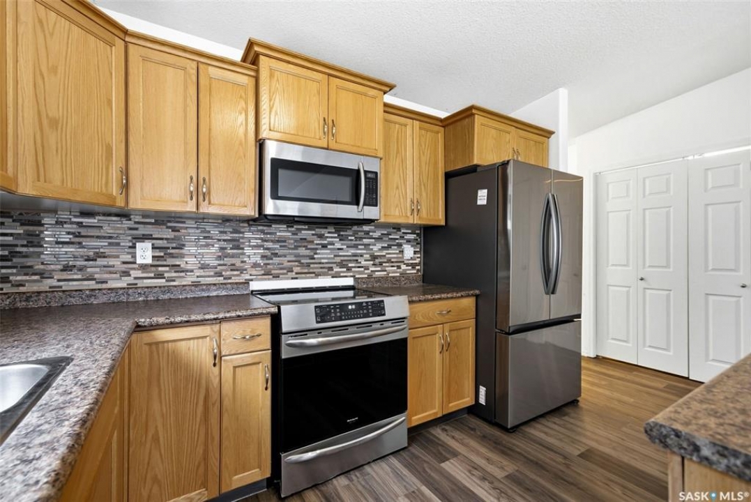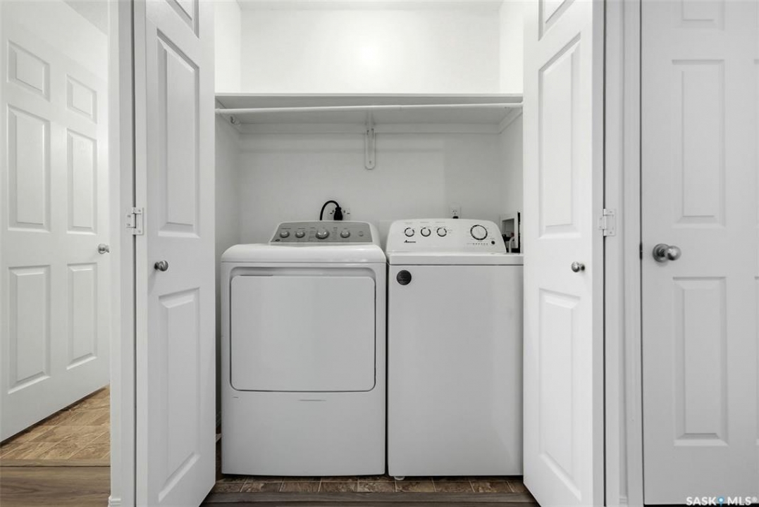 Welcome to this well-maintained 1,029 sq. ft. townhouse condo offering 4 bedrooms and 2 bathrooms, located in the highly desirable Windsor Park neighbourhood. Known for its quiet streets, mature green spaces, and excellent east-end amenities, Windsor Park remains one of Regina's most sought-after areas for families, professionals, and downsizers. This home offers more space than expected with a fully finished basement that significantly expands the living area. The main floor features durable vinyl plank flooring throughout the kitchen, dining, and living spaces. The kitchen includes ample cabinetry, a central island, tiled backsplash, and included appliances, flowing into the dining area and bright living room with large windows and access to a private deck. The primary bedroom features a private ensuite bathroom, while a second bedroom, additional full bathroom, and convenient main-floor laundry complete the upper level. Downstairs, the finished basement provides a spacious recreation room, two additional bedrooms, and another bathroom—ideal for a growing family, guests, home office space, or multi-purpose use. Additional highlights include central air conditioning, an attached single garage, plus an additional surface parking stall. Condo fees provide low-maintenance living and include common area maintenance, exterior building maintenance, lawn care, snow removal, garbage, sewer, common insurance, and reserve fund contributions. Ideally located close to parks, walking paths, schools, shopping, restaurants, and public transit, this 4-bedroom home in Windsor Park offers exceptional value and flexibility in a prime east-end location.