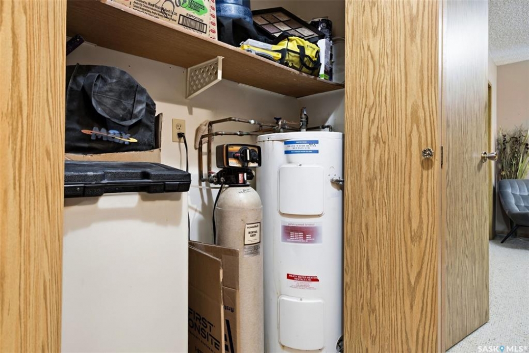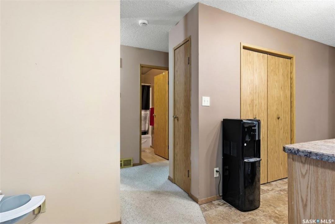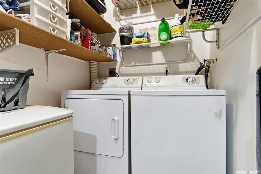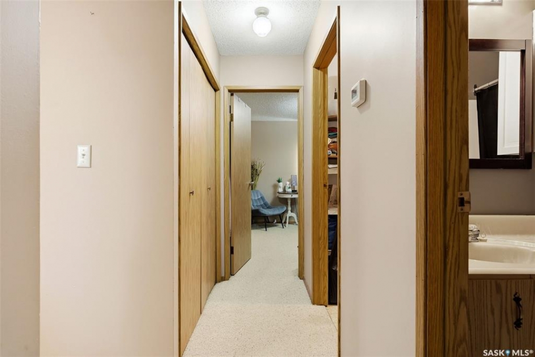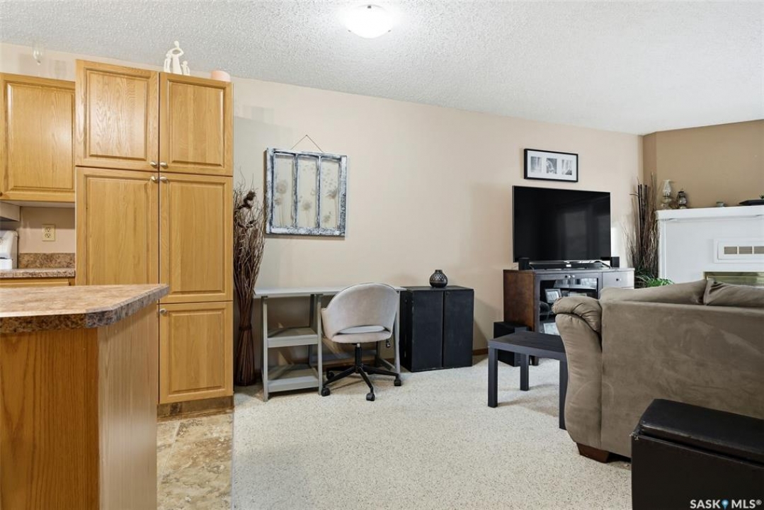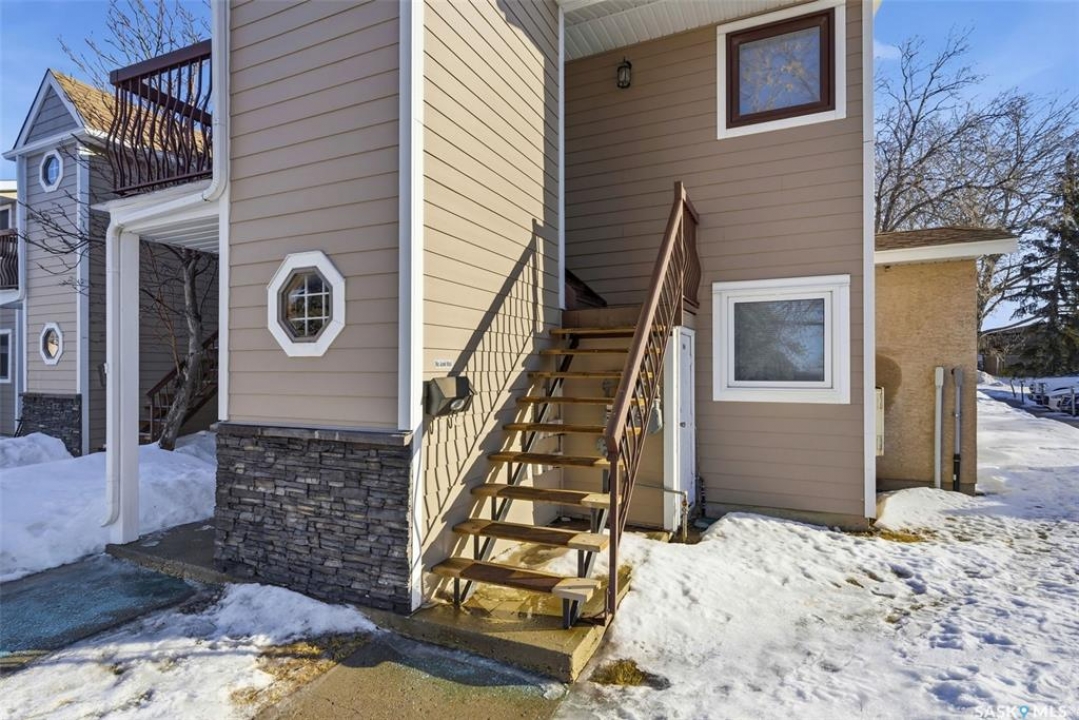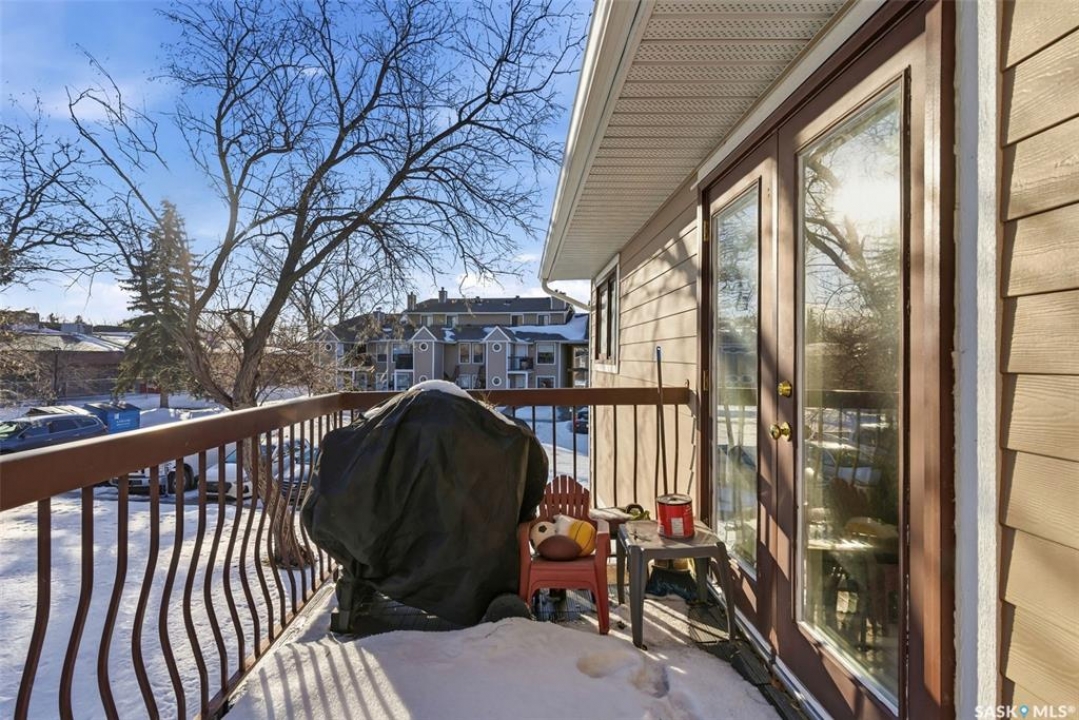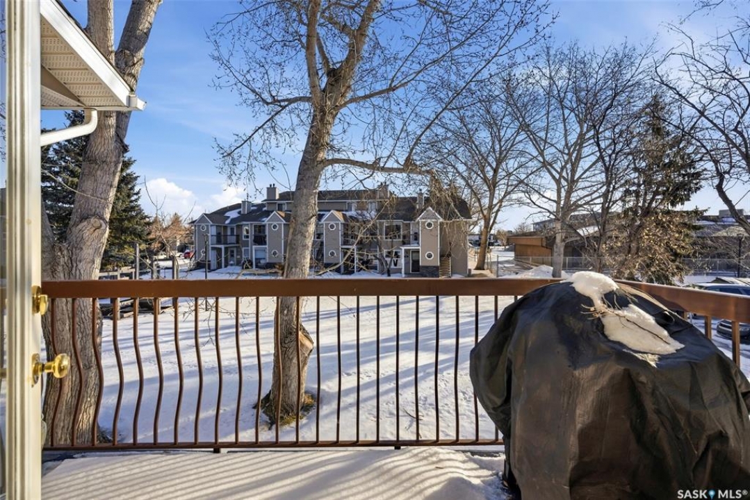 Welcome to 114 Cedar Meadow Drive! This bright and inviting second-floor condo has both a front entry and a private rear balcony. This well-designed unit benefits from extra natural light and offers a comfortable, functional layout throughout. Upon entry, you are welcomed into a spacious living area featuring a cozy fireplace (currently not in use), providing an ideal setting for relaxing or entertaining. The adjoining kitchen showcases a functional island, a double sink overlooking the front of the complex, and an abundance of cabinetry, including a pantry-style cupboard with convenient rollouts. Appliances are included with over-the-range microwave, stove, and fridge. The kitchen is finished with durable linoleum flooring. Storage is plentiful with a coat closet at the front entrance, a hallway linen closet, and an additional closet also housing the water heater and softener. The primary bedroom is generously sized and can comfortably accommodate a king-size bed, featuring his-and-hers closets for ample storage. Both bedrooms and the living room are finished with carpet for added comfort. This condo also includes its own dedicated laundry room with washer and dryer, plus extra storage space. A four-piece bathroom serves the unit, and the second bedroom offers adequate space for guests, a home office, or additional living needs. Condo fees include furnace and air conditioning maintenance, adding extra value and peace of mind. The unit measures approximately 870 square feet, and quick possession is available! Families will appreciate the conveniently located play area situated just behind the building. The parking stall is ideally positioned right out front for easy access. Additionally, there is a separate furnace room on the front deck that also provides a bit of extra storage. A practical, well-located condo offering comfort, convenience, and move-in readiness!