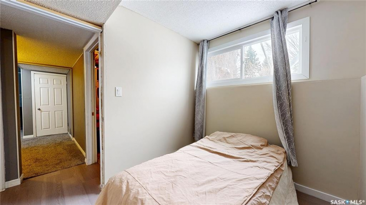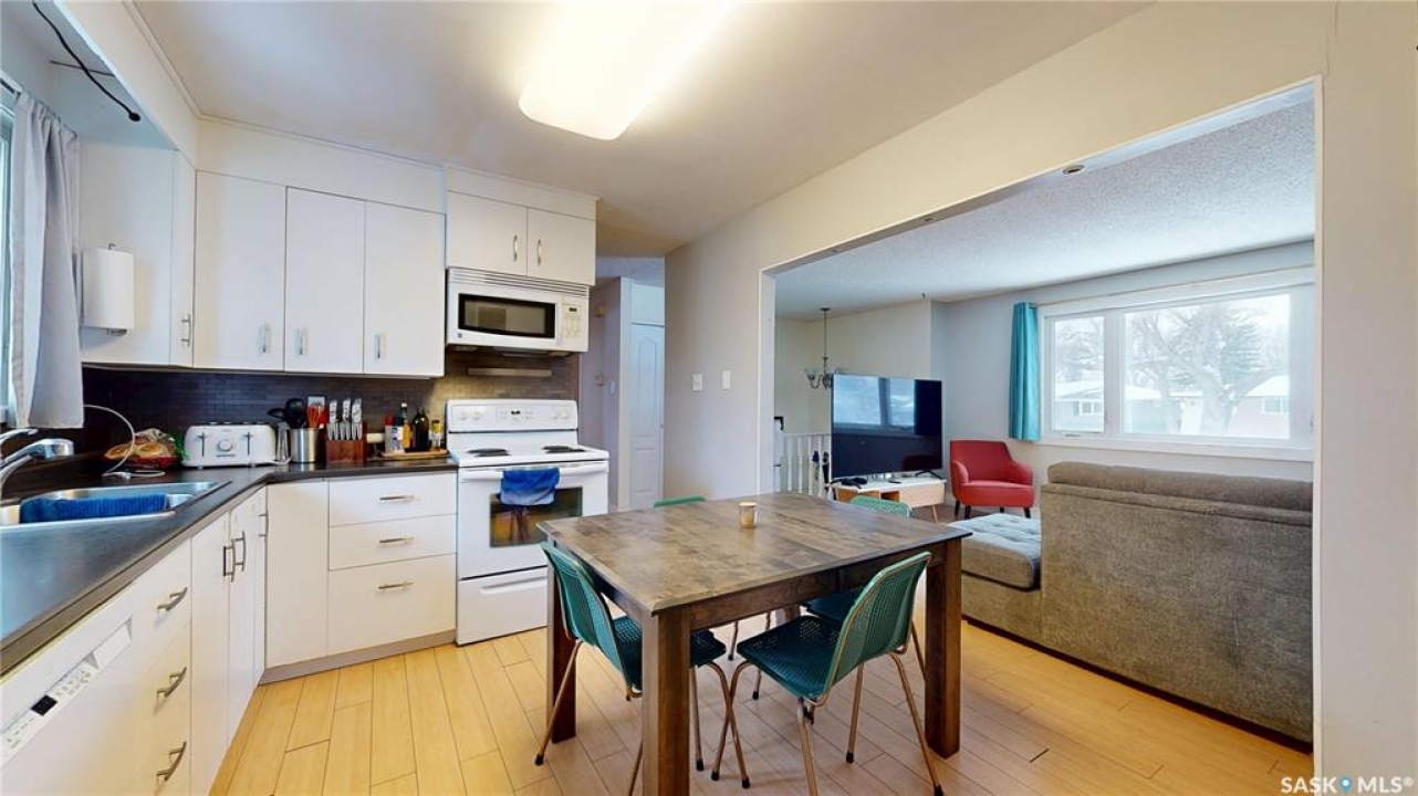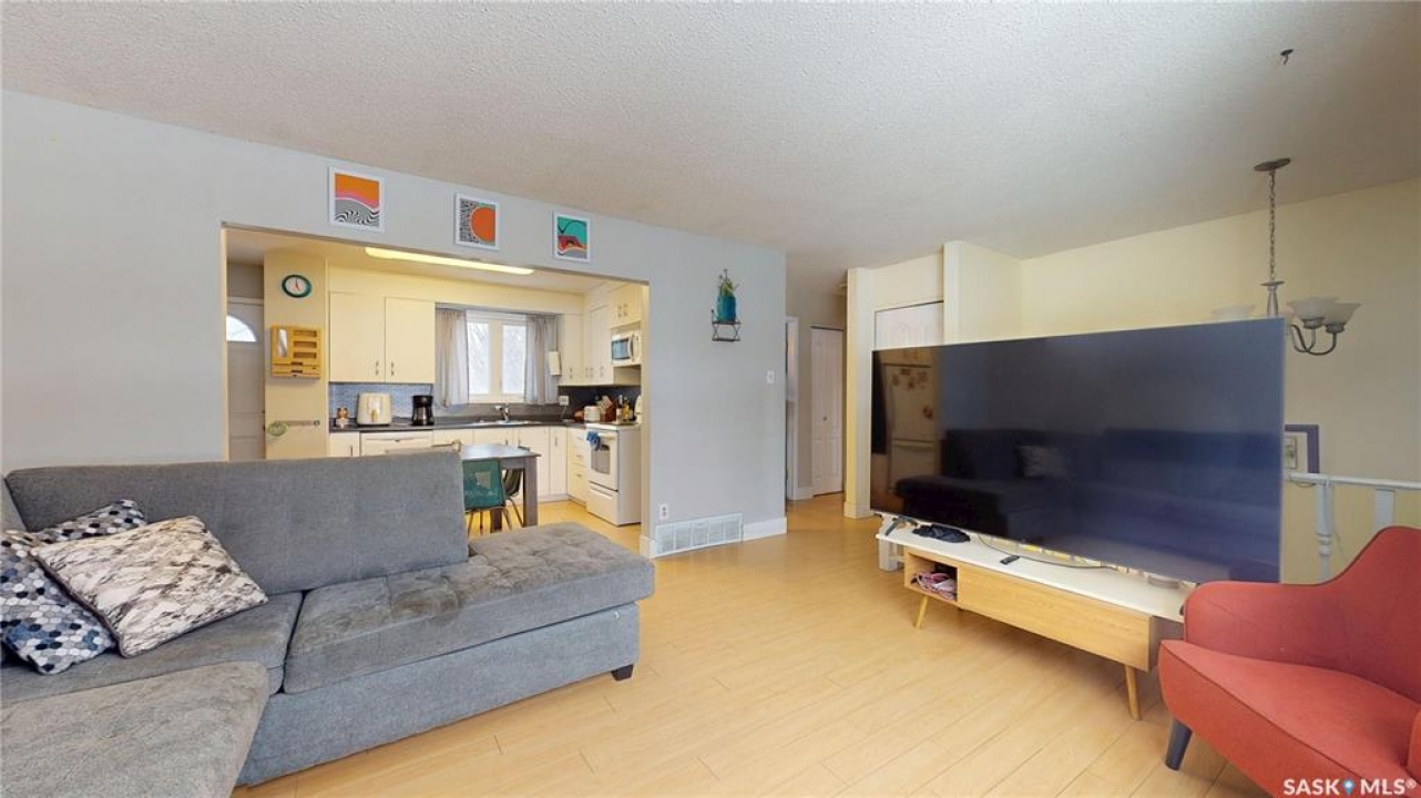 Welcome to this well-maintained bi-level home in Glencairn, offering a functional layout and great value for first-time buyers, families, or investors. The main floor features a bright living room, an eat-in kitchen with ample cabinet space, two bedrooms, and a full 4-piece bathroom. Durable laminate flooring runs through much of the main level. Downstairs, the fully developed basement adds valuable living space with a spacious recreation room, additional bedroom, den, storage area, and laundry located in the utility room. The home is heated by a natural gas forced-air furnace and includes central air conditioning for year-round comfort. Outside, you'll find a fully fenced yard with deck, lawn front and back, mature trees, and a single detached garage with concrete drive providing a total of three off-street parking spaces. Conveniently located close to schools, parks, shopping, and east Regina amenities, this home is move-in ready with room to add your own touches.