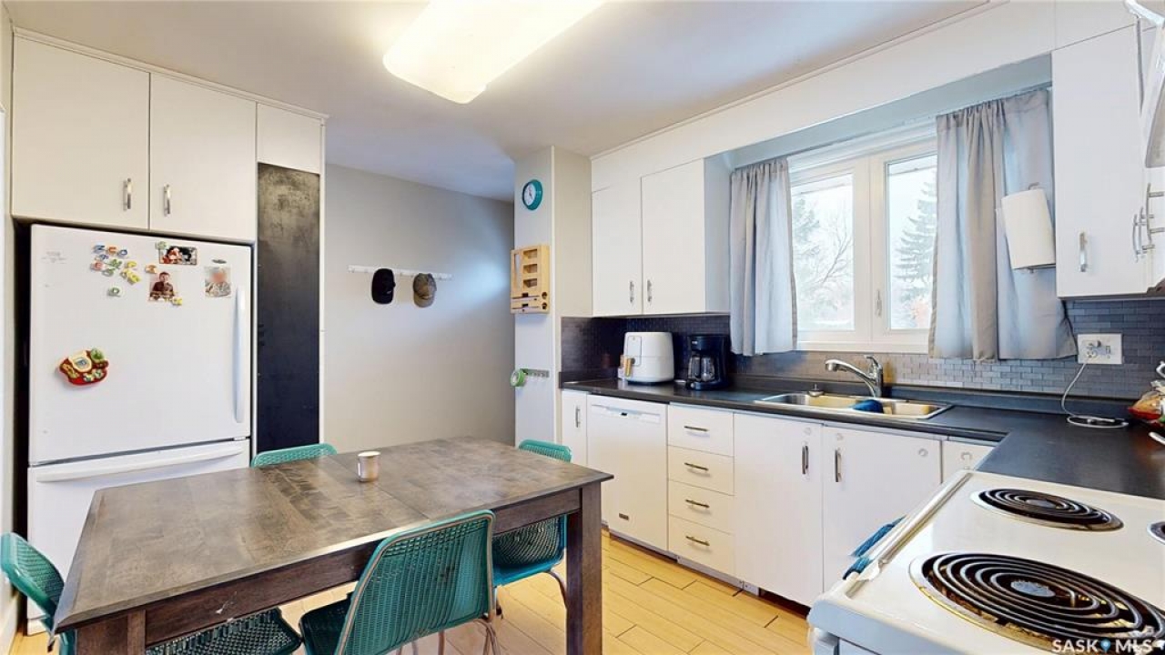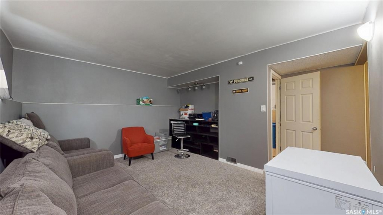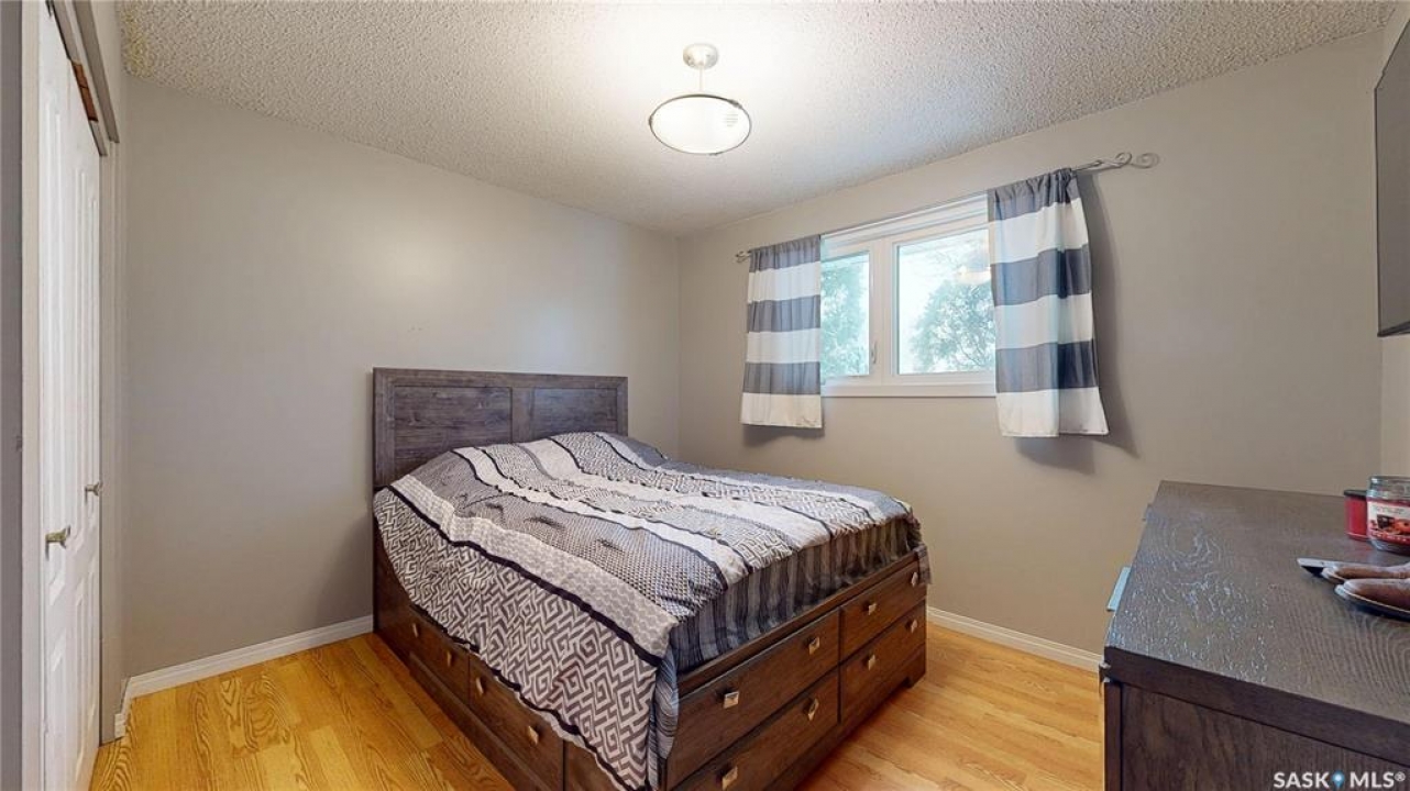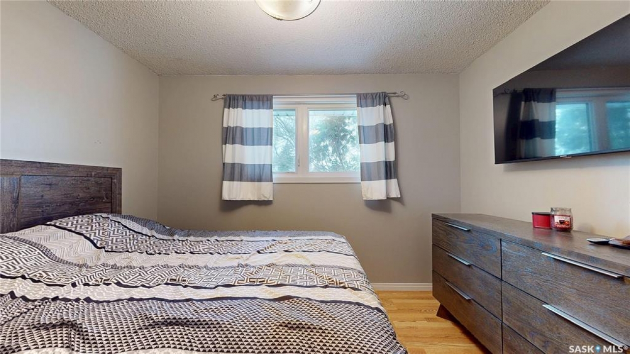 Welcome to this well-maintained bi-level home in Glencairn, offering a functional layout and great value for first-time buyers, families, or investors. The main floor features a bright living room, an eat-in kitchen with ample cabinet space, two bedrooms, and a full 4-piece bathroom. Durable laminate flooring runs through much of the main level. Downstairs, the fully developed basement adds valuable living space with a spacious recreation room, additional bedroom, den, storage area, and laundry located in the utility room. The home is heated by a natural gas forced-air furnace and includes central air conditioning for year-round comfort. Outside, you'll find a fully fenced yard with deck, lawn front and back, mature trees, and a single detached garage with concrete drive providing a total of three off-street parking spaces. Conveniently located close to schools, parks, shopping, and east Regina amenities, this home is move-in ready with room to add your own touches.