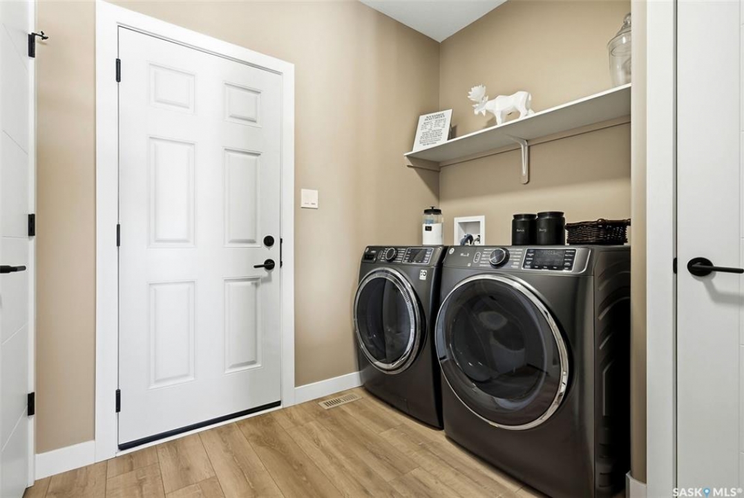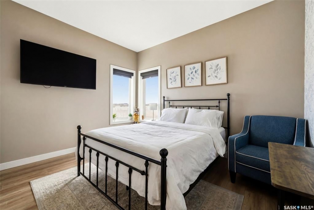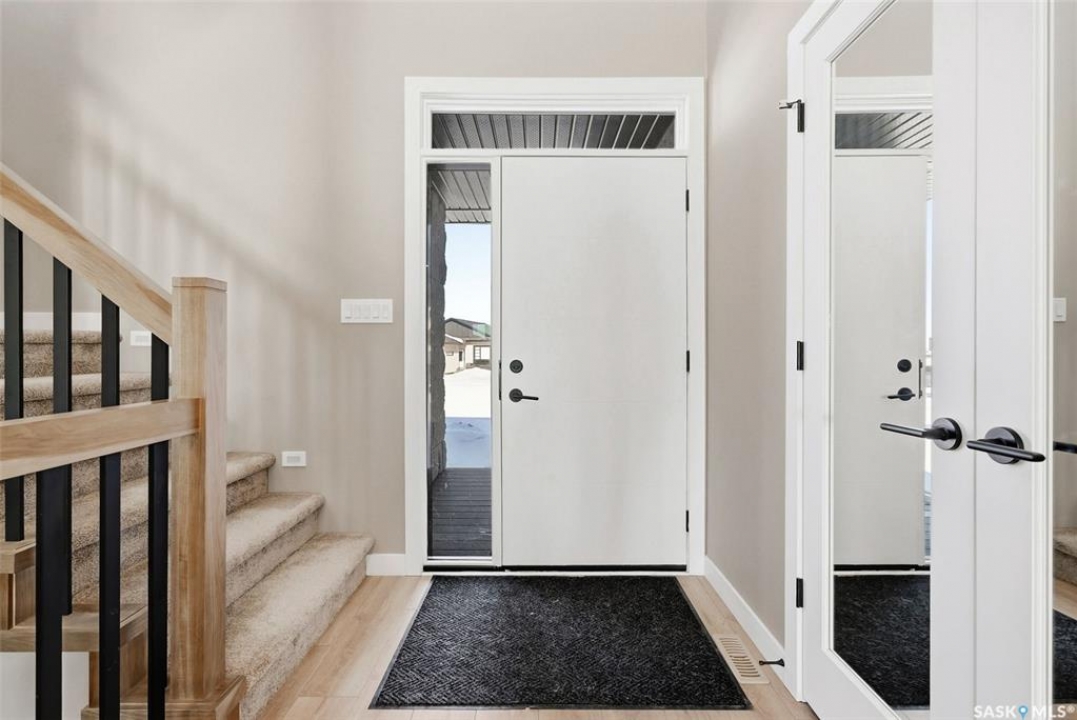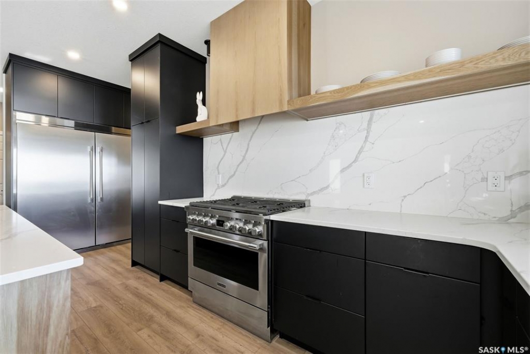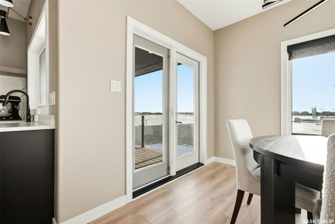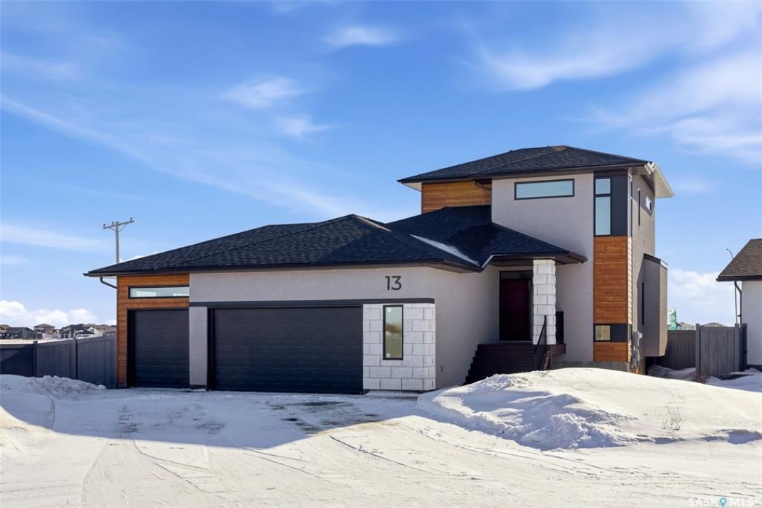 Welcome to 13 Plains Green, a stunning 2025 custom-built Scandinavian modern home located in the sought-after community of Pilot Butte. This thoughtfully designed bunga-loft style two-storey blends modern architecture with warm, functional living. The home features a unique and highly desirable layout with a private primary suite upstairs, creating a peaceful retreat complete with a spacious bedroom and spa-inspired ensuite. On the main floor, you'll find two additional bedrooms, ideal for family, guests, or a home office; perfect for those seeking main-level living without sacrificing space. Designed with intention and quality throughout, the home features 9' ceilings on all three levels, enhancing the sense of space and light. Clean lines, expansive windows, and a neutral Scandinavian palette fill the open-concept main living area, making it ideal for both everyday living and entertaining. The chef-inspired kitchen is equipped with a 6-burner gas range and a double-wide, side-by-side refrigerator and freezer, combining style with serious functionality. The home is solar power ready and includes a natural gas BBQ hookup, offering future-forward efficiency and convenience. Step outside to a covered back deck, perfect for year-round enjoyment, all within a fully fenced yard—ideal for kids, pets, or private outdoor living. The north side of the lot offers additional space, well-suited for a large shed or other desired use, adding flexibility and future potential. An extra-wide concrete walkway leads to the front door, enhancing curb appeal and creating a welcoming first impression. A triple attached garage provides ample space for vehicles, storage, and recreation. Located on a quiet street in a growing community just minutes from Regina, Pilot Butte offers small-town charm with city convenience. Modern. Functional. Timeless. 13 Plains Green is a rare opportunity to own a truly distinctive new build in one of Saskatchewan's most desirable bedroom communities.