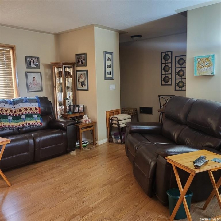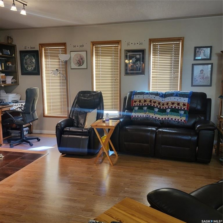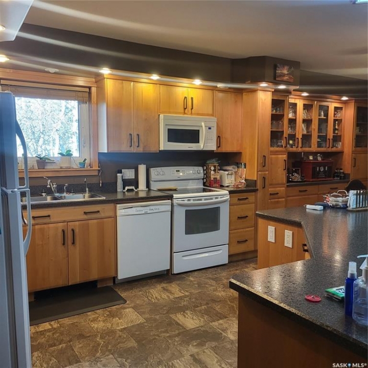 RM of Cana #214. Located only 7 miles east of Melville along Hwy #15 sits this beautiful quarter of land with an immaculate 11 acre yard site. The sellers are the original owners and built the house and developed the yard site. The house hade double 2" x 4" walls, newer triple pane PVC windows, stucco exterior, custom built kitchen cabinets, wood fireplace and composite decking on both decks. there are 3 bedrooms on the main floor plus another bedroom in the basement. the master bedroom also has a 2 pc ensuite. The laundry room is conveniently setup at the back entrance. The basement is fully developed with a huge family room, wet bar and another bathroom. The property is hooked up to the Yorkville water pipeline for an excellent water source. there is also a large dugout with a well beside it and has a pressure system in the house and can be used to water the garden and lawn area. The 28' x 32' garage has matching stucco finish with the house and has power and cement floor. There are numerous garden sheds, some with power, for extra storage. The fire pit area has brick walk way, with a TV stand and is well sheltered with trees and shrubs.