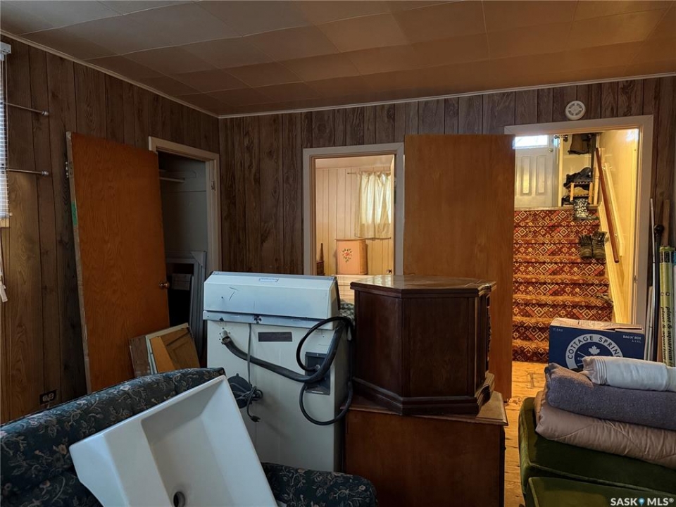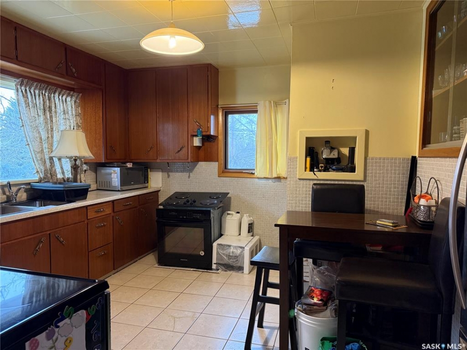 Welcome to this well-located home in a quiet and desirable South Hill neighbourhood. Situated on a large corner lot with mature landscaping, this property offers space, privacy, and excellent proximity to family-friendly amenities. A playground is located right beside the home, a convenience store and the Cornerstone School is just a couple of blocks away. The main floor features a decent size living room with large picture window, two bedrooms, a full bathroom, a spacious eat in kitchen with a built-in cabinet and lots of cupboards, and an abundance of original woodwork that adds character and charm throughout the whole main floor. An attached porch/sunroom overlooks the fully fenced backyard, providing a comfortable space to relax and enjoy the outdoors. The basement offers a wide stairwell for easy furniture access and includes two dens, a family room, and plumbing in place for a future bathroom. The basement does require some renovating, presenting a great opportunity for buyers to add value and customize the space to their needs. Outside, the property includes a single detached garage with heater -sold “as is” -off-street parking, a patio area, and a brick firepit—ideal for outdoor entertaining. Most furniture, appliances, and household items are included in the sale with no warranties or representations. Property is being sold “as is.”