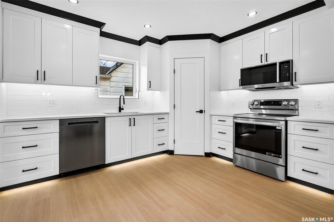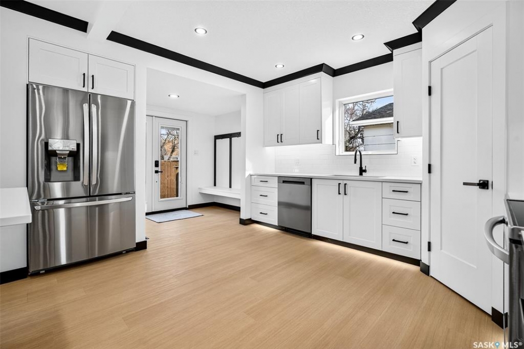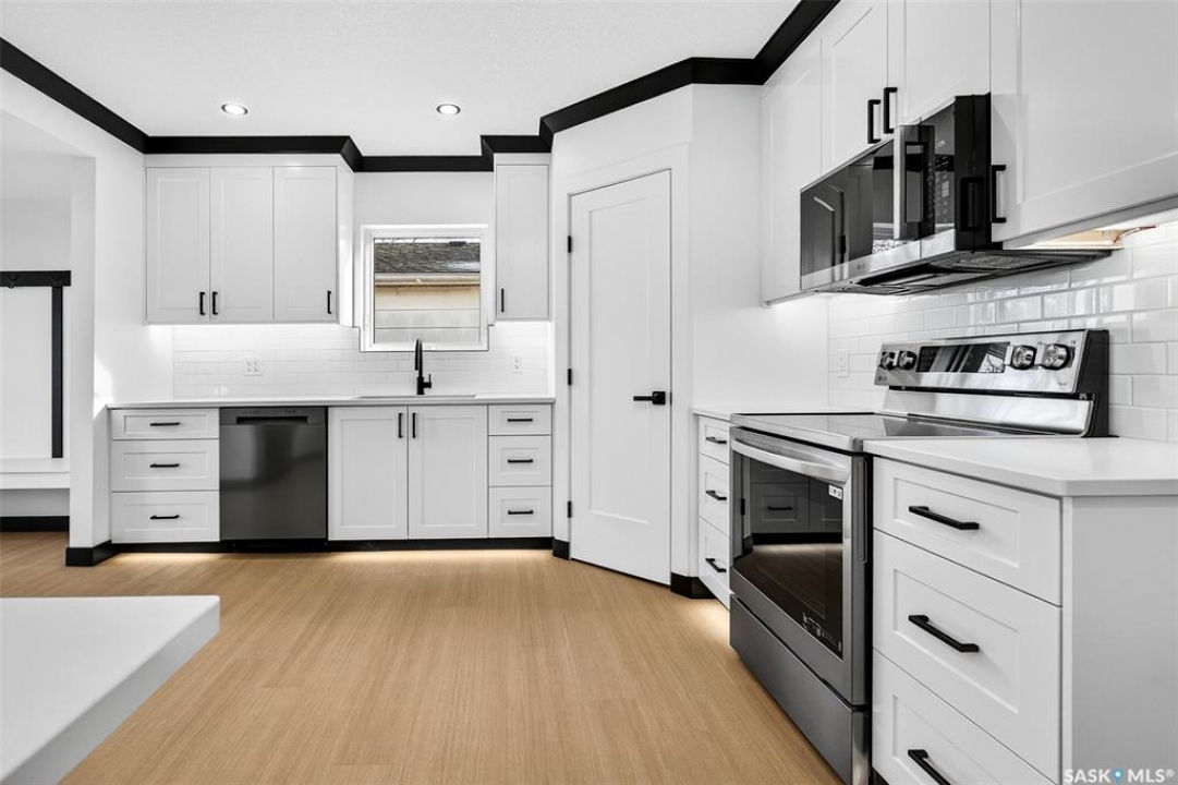 Must be seen to truly appreciate!! If you've been looking for a new home that's is completely redone this property could definitely be for you! As you enter the home through the large foyer with built-in bench and cubbies for your storage, it leads you into the oversized and naturally bright living room with electric fireplace and new vinyl plank flooring. This space is large enough for a living room area as well as a dining space at the back if the large eat-up island doesn't suffice. A step up into the huge kitchen is where you will find the island with seating for 8 and quartz countertops. New stainless steel appliances included with plenty of cabinetry and corner pantry. Just off the kitchen is a good sized mudroom that hosts the laundry area and access to your back deck and yard. Just off the other side of the kitchen is your full main bathroom and the Primary bedroom. This room can easily accommodate a king bed and furniture. Through the his and hers closet, with custom millwork leads you into your full ensuite bathroom with in floor heat. Upstairs you will find 2 more bedrooms with built in custom mill work as well as extra storage in the cubby spaces. In between these two rooms there is a convenient 2pc bathroom. The lower level has a sunken family room with a wet bar perfect for the teenagers in the home or a great space for company. A large bedroom and 3pc bathroom with walk-in shower are a great addition. As an added bonus there are laundry hookups across from the bathroom and under the stairs. Completing the lower level is a storage space and large utility room. Enjoy the fully fenced yard as well as a Dbl detached oversize garage with 9ft ceilings, 8ft tall garage doors that will accommodate a large truck. Also has a workshop room already set up, but could be converted back if needed the extra parking. Come and check it out today!