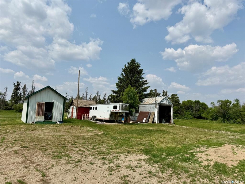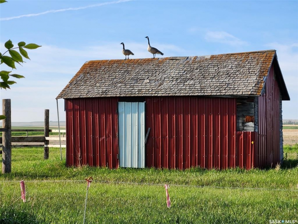 Don't miss out on this unique property – 10 Acres Just North of McGee. Discover peaceful country living just 2 miles north of McGee with this versatile and well-maintained 10-acre property. Price reduced due to health reasons. Featuring a cozy 1.5 storey home with 1,380 sqft of living space, this acreage offers 3 bedrooms, 1 bathroom, and numerous updates since 2021 that blend rustic charm with modern comfort. The heart of the property is the established homestead surrounded by mature trees and a 4-wire perimeter fence. Outbuildings include a 20'8” x 32'7” heated shop/garage, a character barn, a functional greenhouse, a chicken coop, and several additional storage and utility buildings — perfect for hobby farming or small-scale agricultural business. A gardener's dream, the land includes a massive garden, approximately 30 apple trees, and a variety of fruit and vegetable plantings. The greenhouse is already growing and has supported successful flower and basket sales in past seasons. The 2025 crop yielded 28 round bales of alfalfa and brome; alfalfa is currently reseeded for ongoing productivity. The home is heated with propane, and water is hauled in from a nearby location — a simple drive away. Inside, the home is welcoming and functional, featuring a unique layout with wood accents and built-in shelving. Several updates throughout the house and outbuildings enhance the usability and value of this property. Located just 20 km west of Rosetown, this acreage offers privacy, self-sufficiency, and income potential — ideal for those seeking a rural lifestyle with space to grow. Call today to arrange your private viewing.