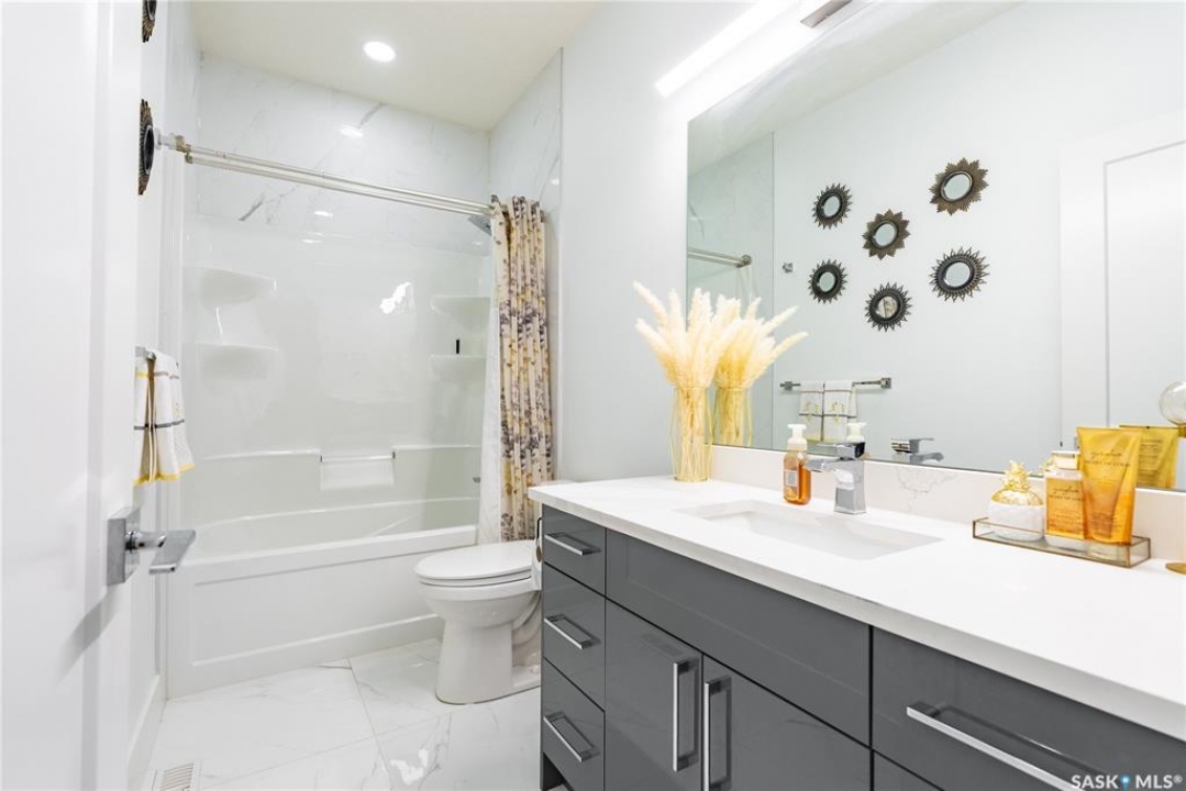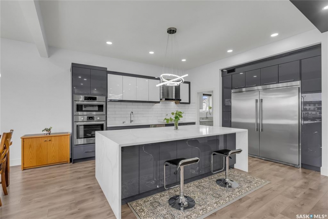 This one-of-a-kind 2,619 sq ft 2 storey home beams w/ modern elegance & the upmost quality. Walking into your foyer w/ oversized tile floors, chandelier, & elegant staircase leading you to the 2nd level. Main floor living space, w/ 10 ft ceilings, wide plank laminate flooring, upgraded trim/baseboards, tile feature wall, cove ceiling, recessed lighting, gas fireplace w/ stone accent, built-in sound system & motorized blinds. Leading to your dinette & kitchen w/ high-end appliances including dishwasher, glass top stove, built-in microwave & oven, Frigidaire fridge/freezer combo, custom vented hoodfan, soft-close cabinets, Calcutta quartz island w/ waterfall edge, custom backsplash/lighting pack. Equipped w/ a 2nd prep kitchen w/ quartz counter, backsplash, gas range w/ powerful exhaust fan, garburator, & walk-in pantry w/ custom shelving. Bedroom, 4pc bath w/ heated floors complete this floor. 2nd level primary bedroom, motorized blinds, ceiling fan, built-in speakers,walk-in closet w/ custom floor to ceiling mirror, ensuite w/ Calcutta quartz double vanity, jet soaker tub, tempered glass shower w/ tile surround, rainfall shower w/ steam option & heated tile flooring. 2 additional good sized bedrooms, 4-pc bath & walk-in laundry room w/ S.S sink & tile floors, additional bonus room w/ French doors & built in speakers, complete the 2nd floor. Basement equipped w/ full legal suite w/ separate entrance, laminate flooring, 2 bedrooms, separate laundry, SS appliances, 4pc bath w/ tile floors, quartz countertops, separate furnace/HRV unit. Additional bedroom in basement w/ 4pc ensuite that is in the owners side, but is being presently rented to tenant along with basement suite. Coming to your park backing yard, w/ upgraded metal fencing, oversized composite deck w/ glass aluminum railing, glass privacy screen, & BBQ gas line. Double attached heated garage w/ high ceilings, upgraded triple car driveway, security cameras, 2ft concrete apron around the home. B'ment rent $1700