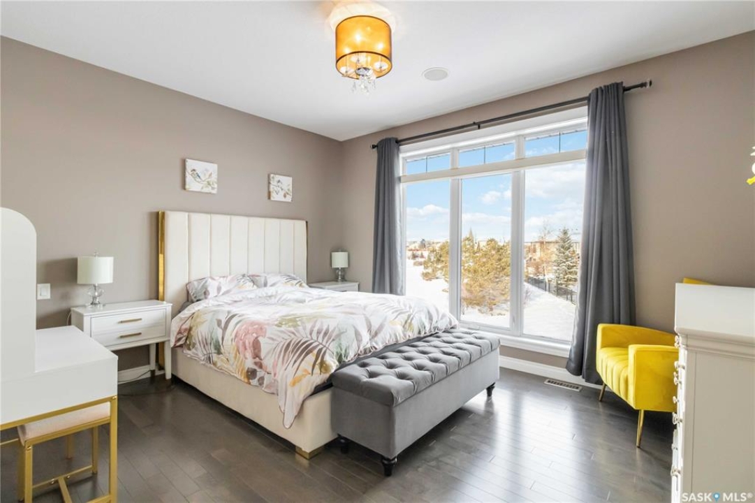 This custom 1,617 sq. ft. walkout bungalow in Willowgrove, perfectly positioned on a quiet terrace and backing the park. Bright, open main floor with den off the foyer, large living and dining spaces, and a gas fireplace with custom cabinetry overlooking green space. Kitchen offers ceiling height cabinets, granite countertops, a large island, walk in pantry, and built-in oven. Primary suite features a soaker tub, tiled shower, and walk in closet second bedroom and full bath complete the main level. Hardwood flooring throughout all main living areas and bedrooms no carpet. The walkout basement is spacious and filled with natural light, featuring a 3 sided gas fireplace, custom wet bar with sink and dishwasher rough in, two additional bedrooms, and a full bathroom. High quality laminate installed on the stairs and throughout the lower level. Additional upgrades include 9' ceilings on both levels, built in sound system in most rooms, granite throughout, central air, and central vac. Low maintenance front landscaping, upper deck and lower patio for enjoying park views and sunsets. Close to schools, walking paths, and shopping an ideal blend of location, luxury, and functionality.