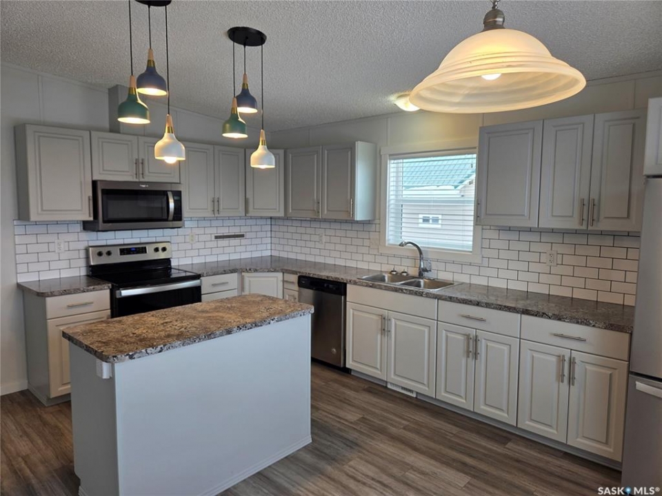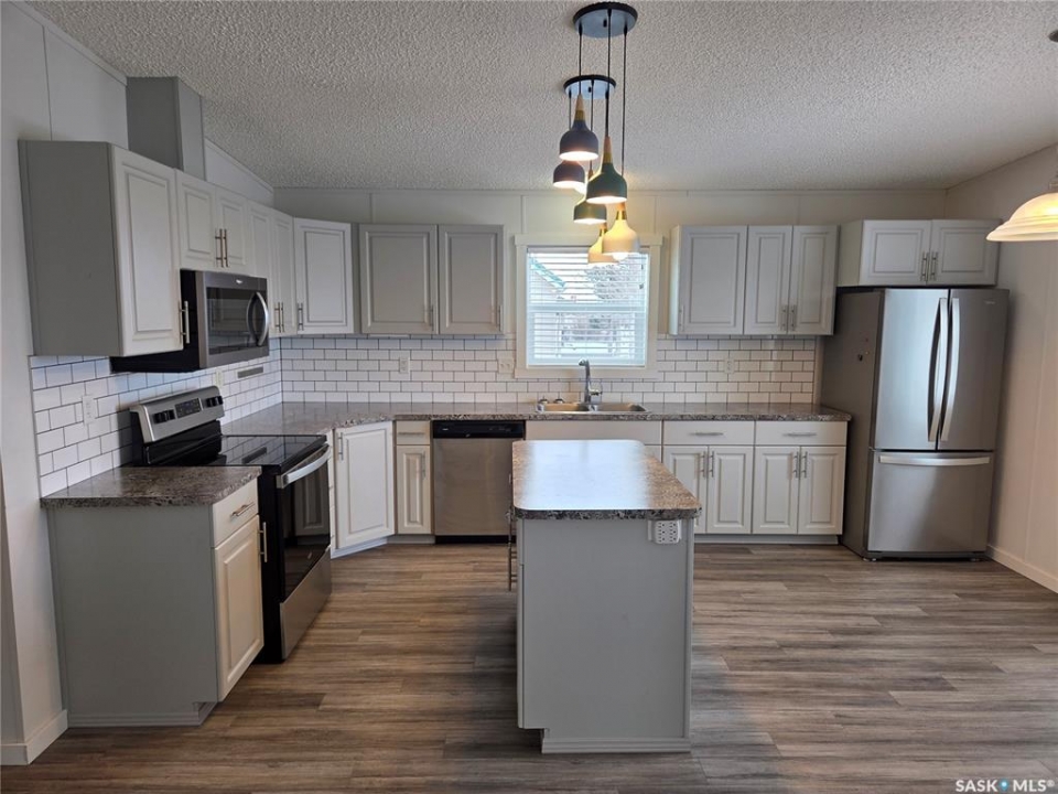 Welcome to 413 Railway Street in the welcoming town of Kipling. Built in 2020, this modern and well-maintained home offers 1,095 sq. ft. of comfortable living space and sits on a generous 50' x 125' lot. The spacious backyard provides plenty of room to add a garage, create outdoor entertaining space, or simply enjoy the open green space. Inside, you'll find a bright, contemporary interior featuring three well-sized bedrooms and a 4-piece bathroom. The cozy living room flows seamlessly into the kitchen and dining area, creating a functional and inviting layout ideal for everyday living. The kitchen is designed with both style and practicality in mind, offering a large island, ample cupboard and drawer storage, generous counter space, and a tile backsplash that complements the home's clean white theme. All appliances are included, making this home move-in ready. Completing the layout is a convenient laundry room located just down the hall off the kitchen, adding to the home's efficient design. With modern finishes, thoughtful layout, and room to grow, this property is an excellent opportunity for first-time buyers, downsizers, or investors alike.