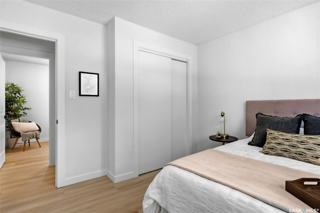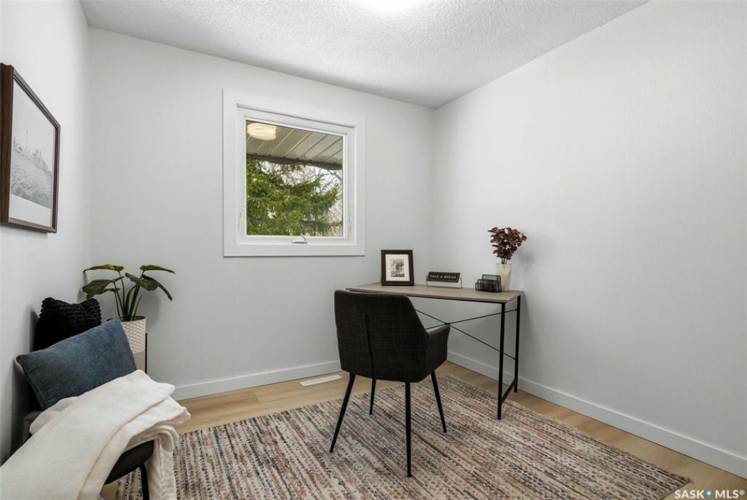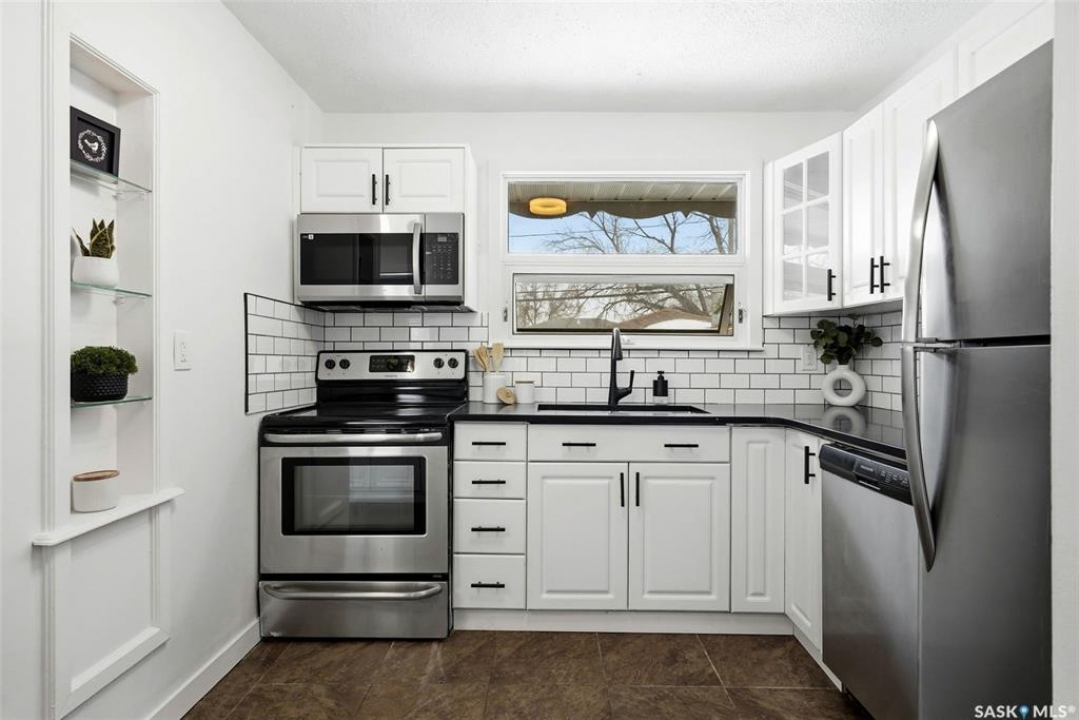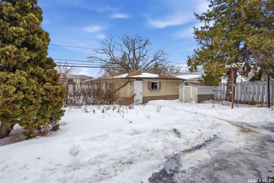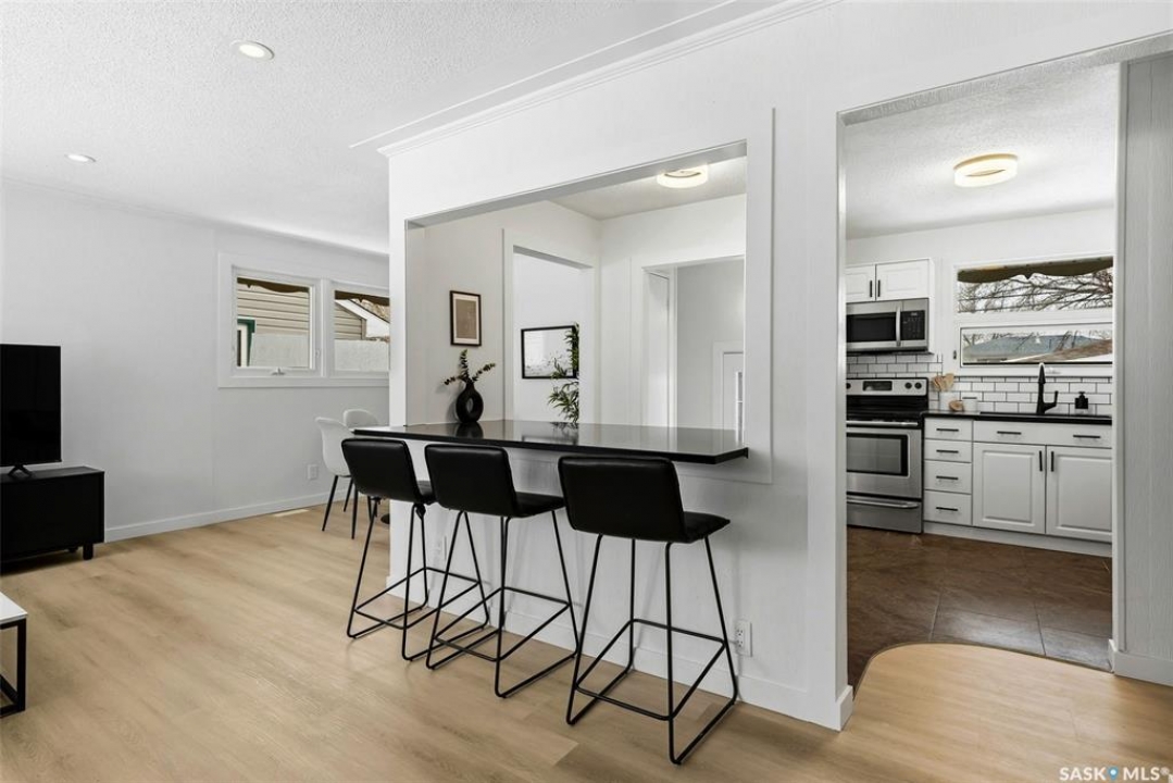 Welcome to this beautifully fully renovated bungalow located in the established and family-friendly Rosemont neighbourhood of Regina, ideally fronting onto green space and a park area for an open, private feel with no direct neighbours in front. Offering 960 sq. ft. on the main level, this move-in-ready home features a bright, functional layout with three well-sized bedrooms, a refreshed 4-piece bathroom, and durable vinyl plank flooring flowing throughout the main living areas and bedrooms. The updated kitchen is finished with tile flooring, modern cabinetry, stylish backsplash, and stainless steel appliances, and opens seamlessly to the dining and living spaces, making it perfect for everyday living and entertaining. The fully developed basement adds exceptional additional living space, including a spacious recreation room, an additional bedroom, and a 3-piece bathroom—ideal for guests, a home office, or growing families. Outside, enjoy a fully fenced yard with deck and patio areas, perfect for summer entertaining, along with a detached double garage providing convenient off-street parking and storage. With its extensive renovations, park-facing location, and close proximity to schools, parks, and amenities, this home is a fantastic opportunity in a mature, sought-after neighbourhood.