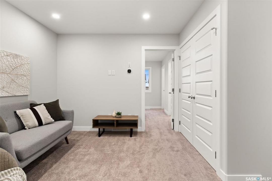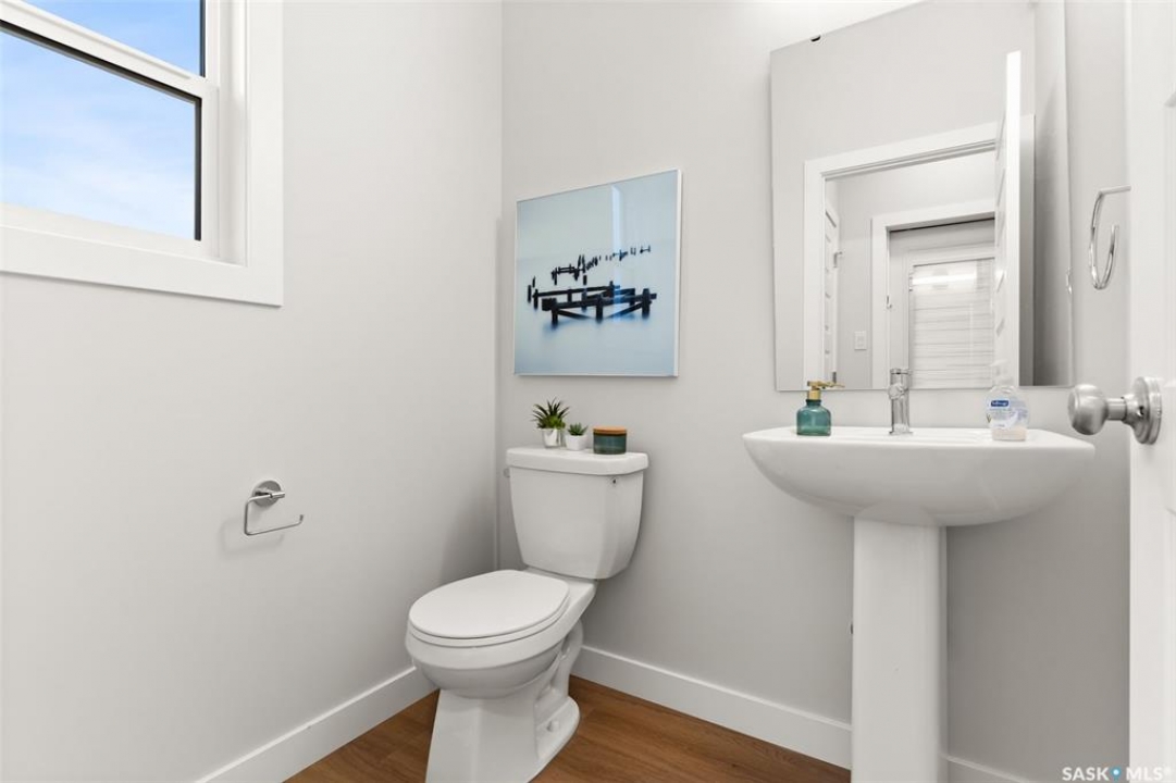 Welcome to “The Ashwood” by premier builder Ehrenburg Homes, located in the desirable Eastbrook community. This thoughtfully designed two-storey home offers 1,404 sq. ft. of above-grade living space and showcases quality craftsmanship with modern finishes throughout. The main floor features an open-concept layout ideal for entertaining and everyday living, finished with vinyl plank flooring. A welcoming living room greets you with a stylish electric fireplace as a focal point. The contemporary kitchen is designed for functionality and flow, featuring a central island with eating bar, ample cabinetry, and a seamless connection to the dining area—perfect for family gatherings. A convenient 2-piece bathroom completes the main level. Upstairs, the primary bedroom includes a walk-in closet and a private 4-piece ensuite. Two additional well-sized bedrooms are complemented by a full 4-piece bathroom, while a comfortable bonus room provides flexible space for a family lounge, playroom, or home office. The second-floor laundry adds everyday convenience for busy households. The basement is unfinished, offering excellent potential for future development such as a recreation room, gym, or additional bedroom. The home is built with wood-frame construction, a forced-air natural gas furnace, and a gas water heater, ensuring efficiency and comfort. Outside, enjoy a double detached garage, underground sprinkler system, and a manageable lot—perfect for low-maintenance living. The home is currently under construction, with possession to be determined upon completion. Backed by the Saskatchewan New Home Warranty and Ehrenburg Homes' reputation for quality, The Ashwood delivers a perfect blend of style, function, and peace of mind. PST & GST are included in the purchase price.