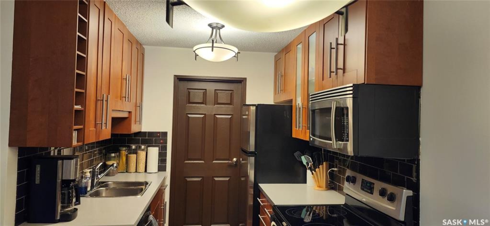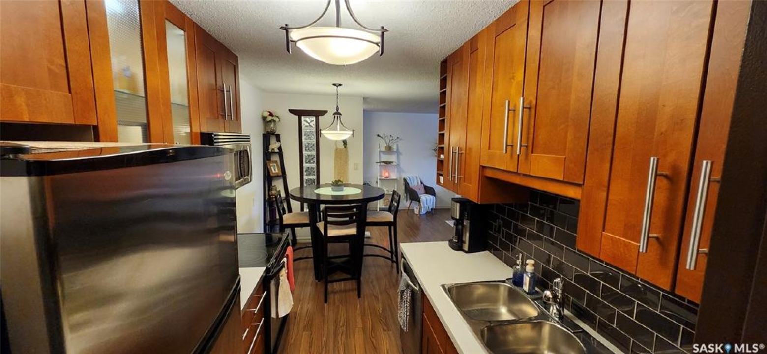 Beautifully updated and immaculately maintained 2 bedroom condo in Shorebird Watch in the Lakeridge neighborhood. Just move in and enjoy this unit --- updated everything: laminate flooring throughout, maple kitchen, countertops, tile backsplash, stainless steel appliances, all newer interior doors and hardware, updated 4-piece bathroom with newer vanity, fixtures, and tub surround. Convenient ensuite laundry in storage pantry off kitchen. Patio doors to deck. Well maintained complex in a great Saskatoon east side location. Don't miss this beauty!